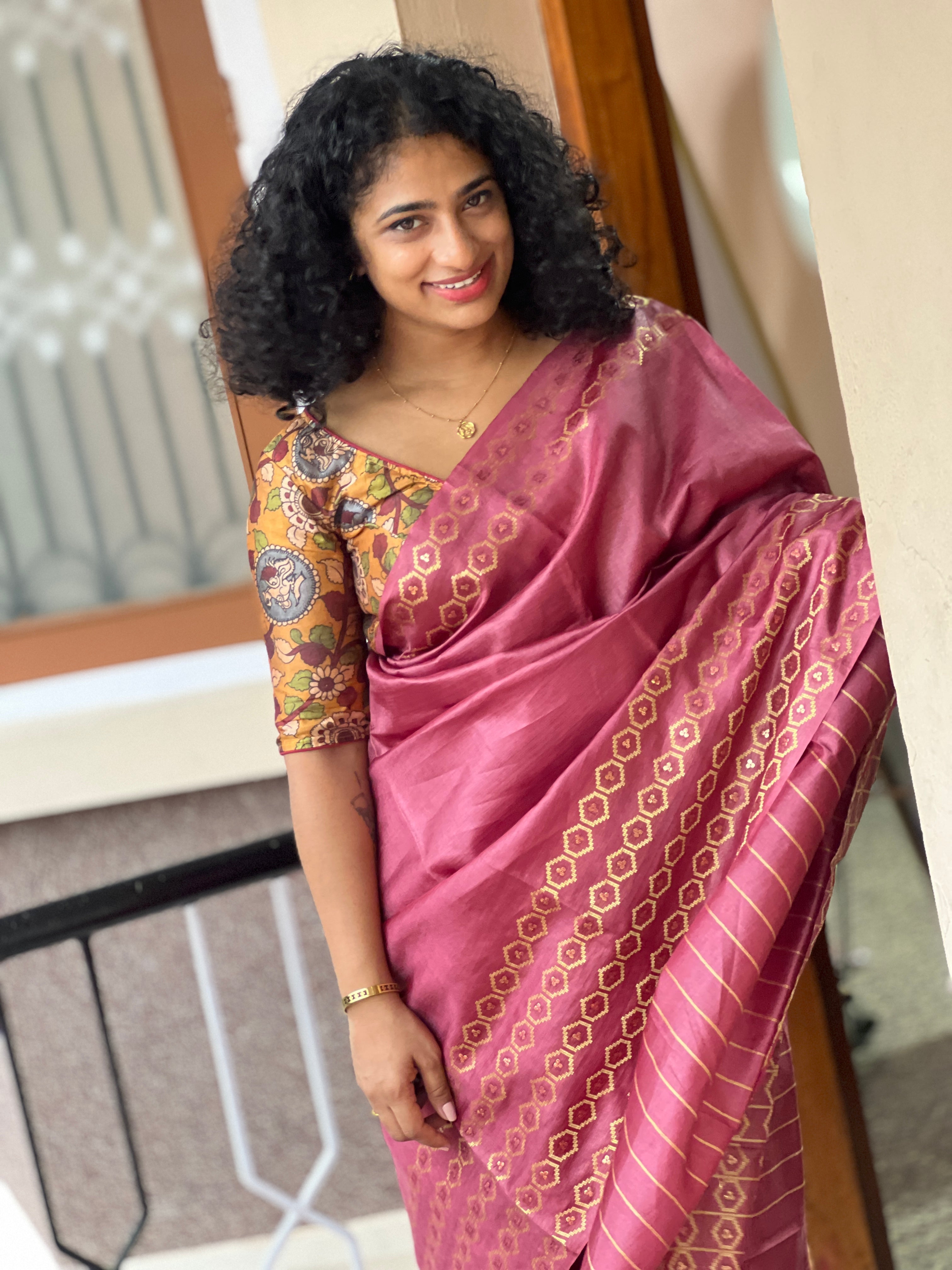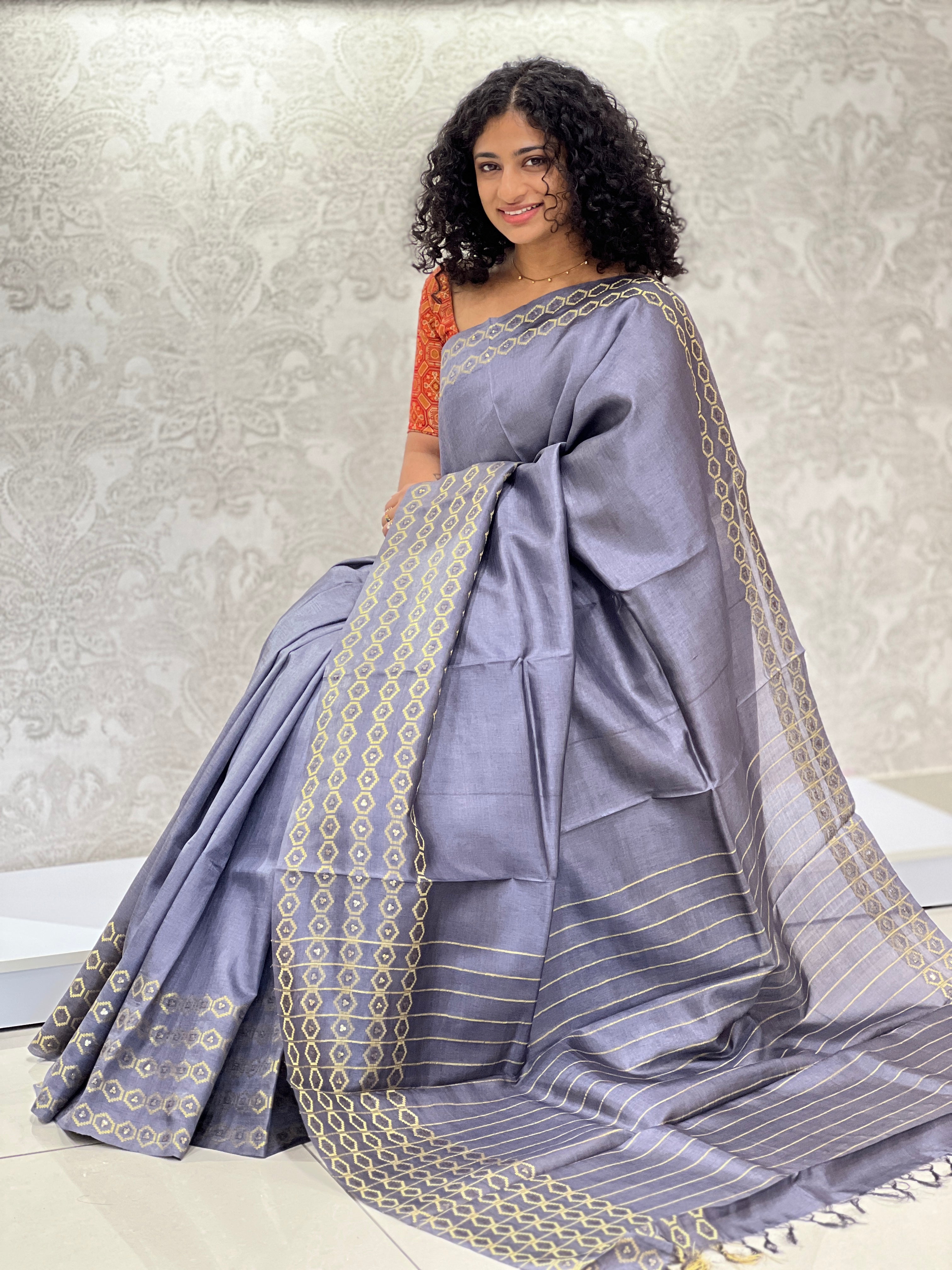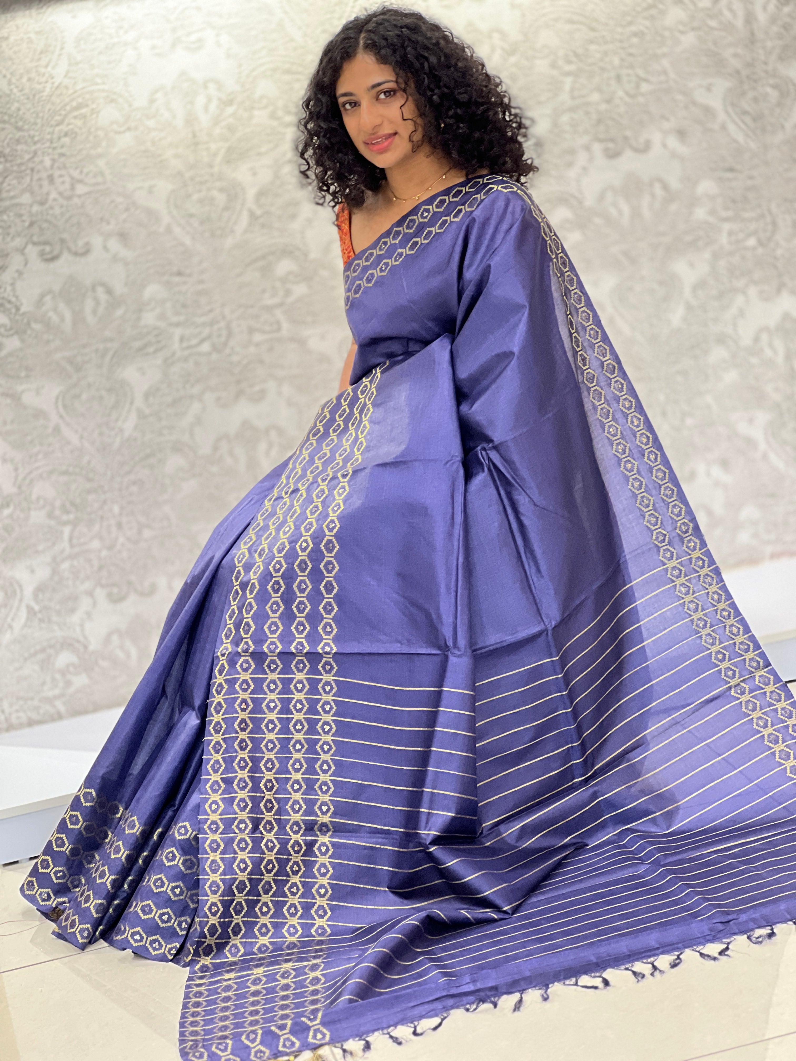 - Style: Honey Comb Patterned Border, Stripe Patterned Pallu