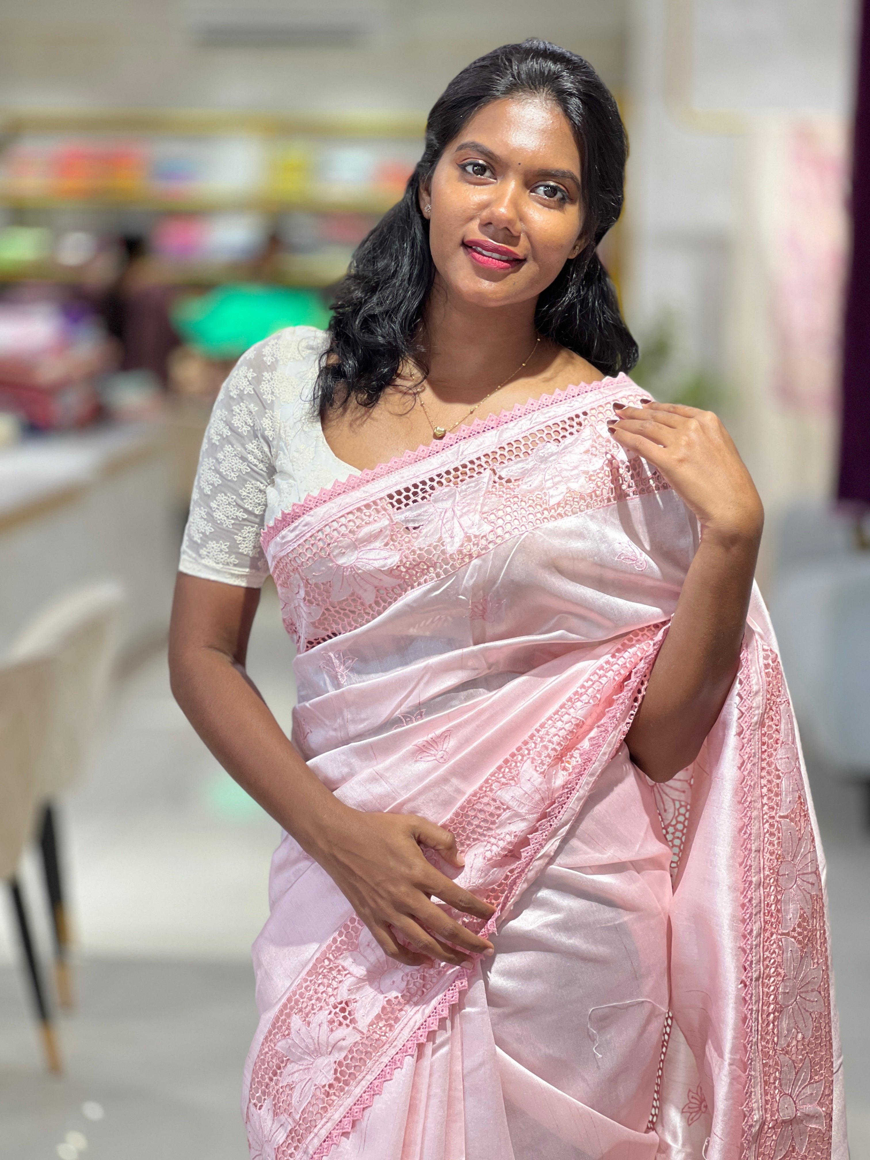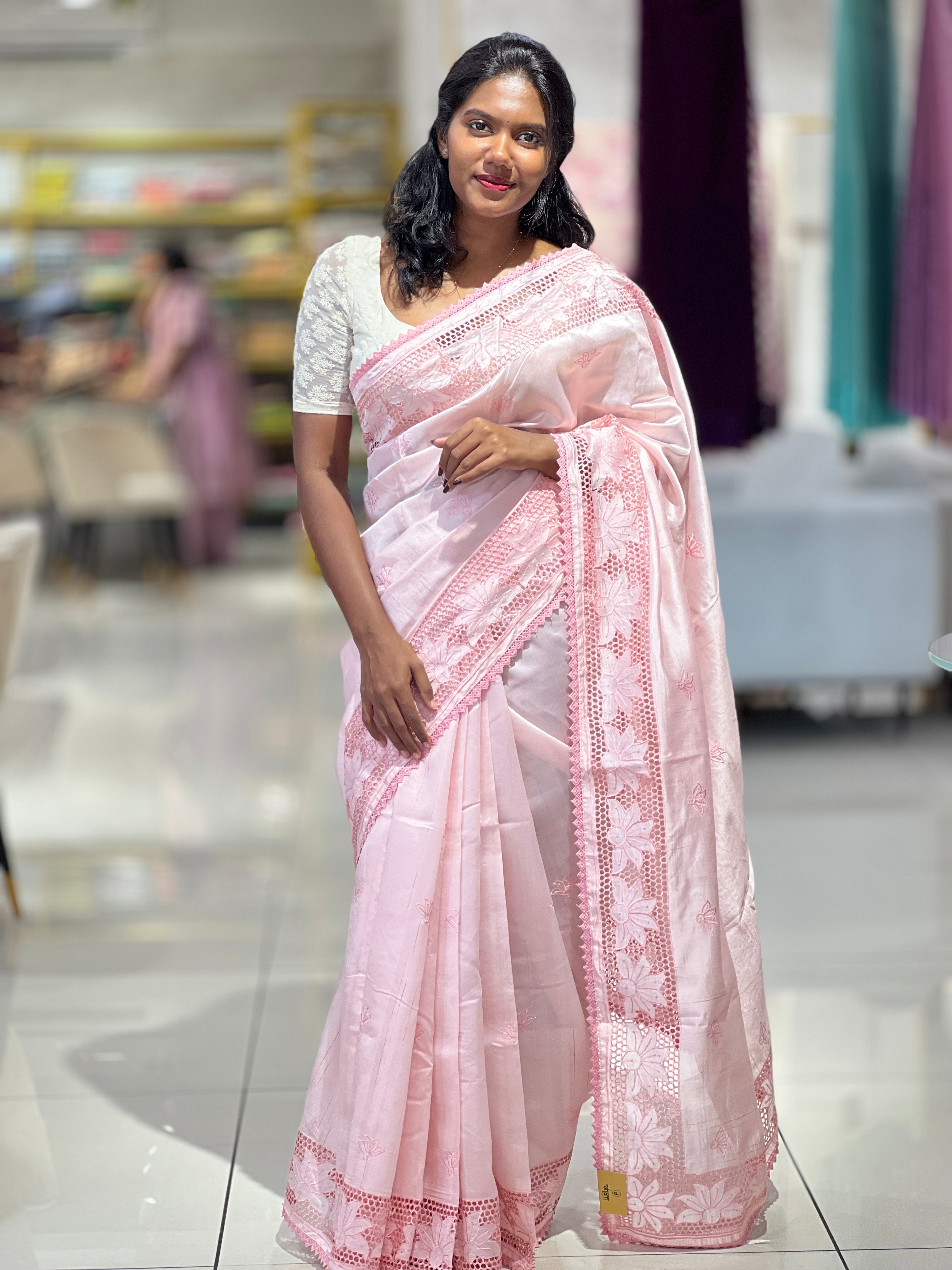 • Style: Honeycomb Detailing with Floral Machine Embroidery On Border, Scattered Floral Pattern, Lace Finished Edges