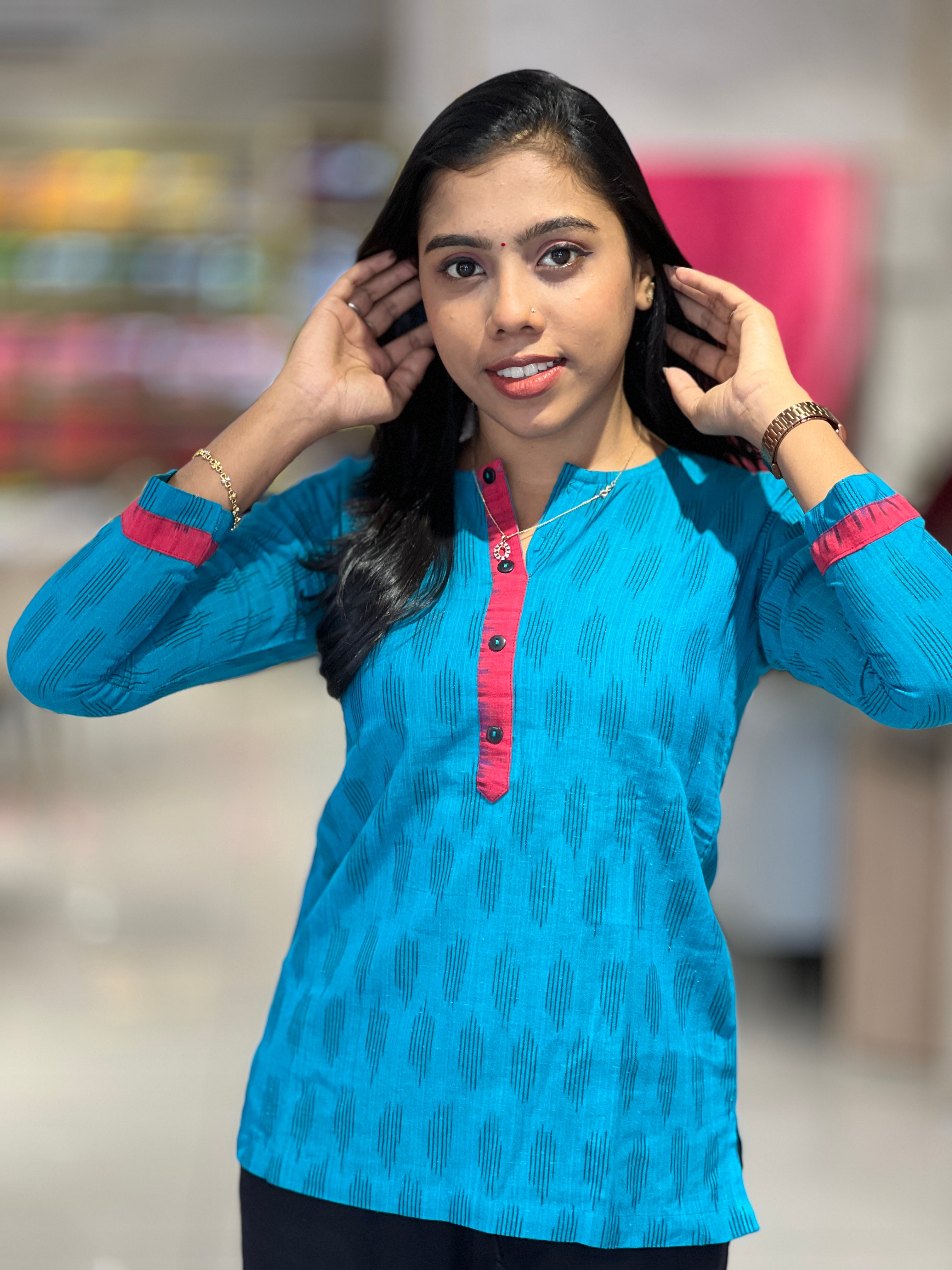 - Style: Ikat Inspired, Scattered Stripes Pattern, Button Detailing