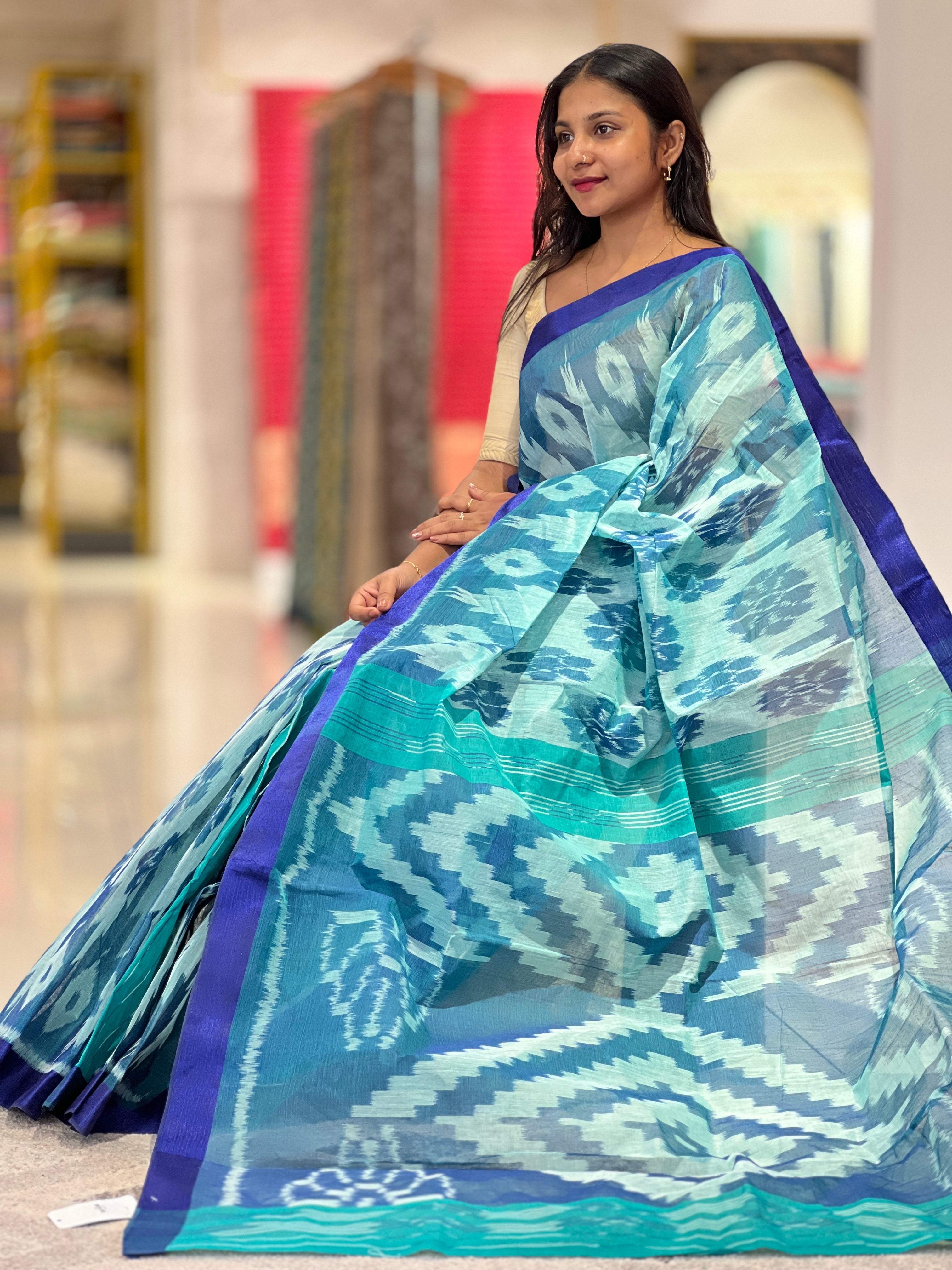 - Style: Ikat Weaving Pattern, Contrast Solid Borders, Geometric Patterned Pallu, Floral Pattern