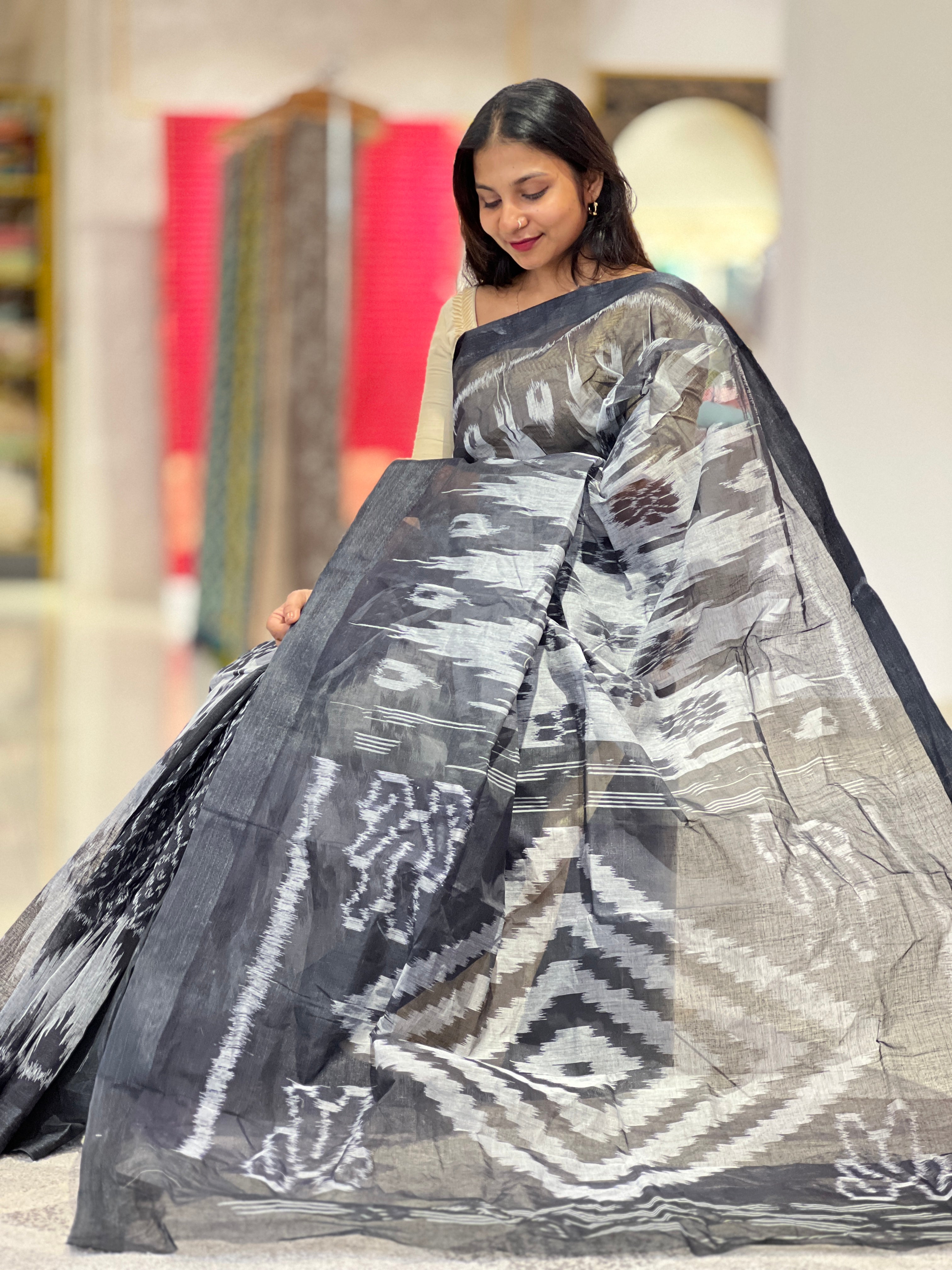 - Style: Ikat Weaving Pattern, Contrast Solid Borders, Geometric Patterned Pallu, Floral Pattern