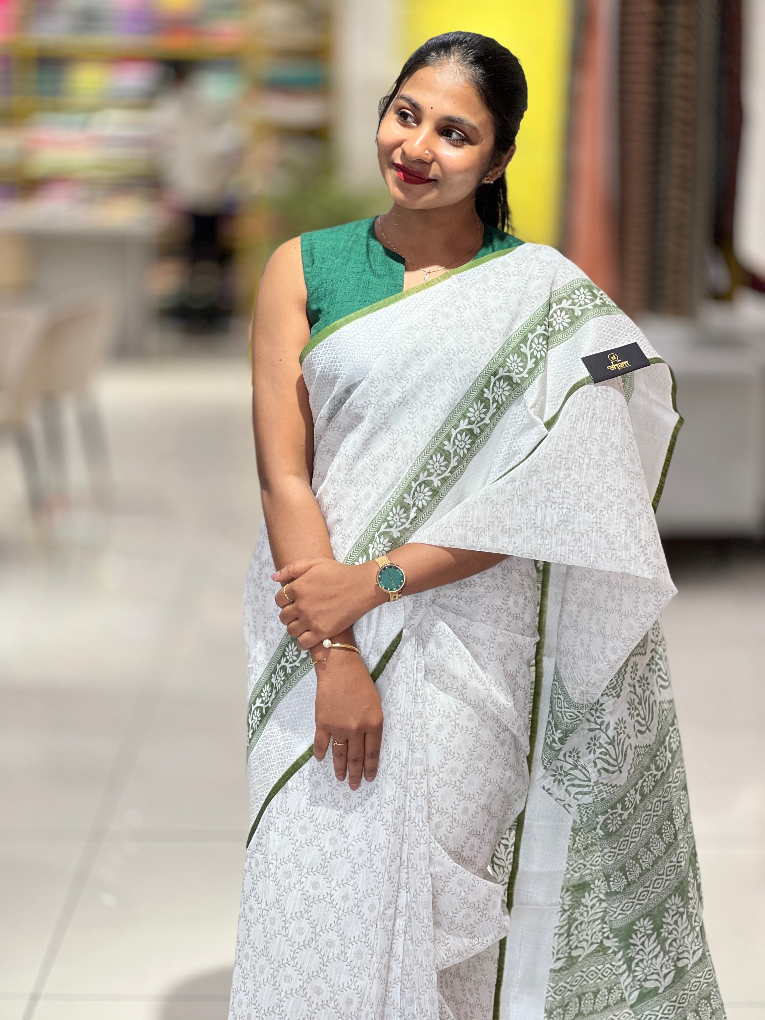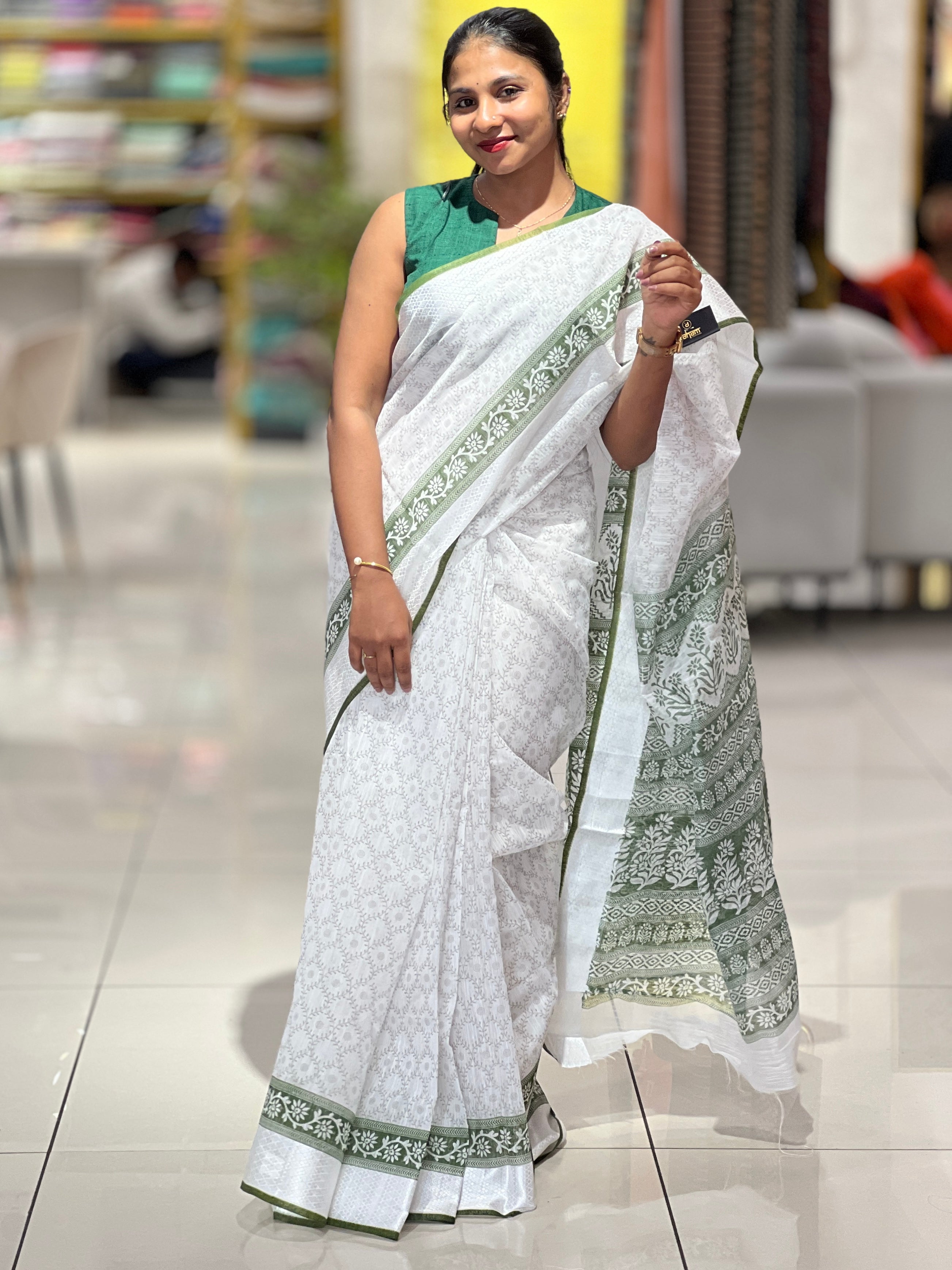 - Style: Screen Printed, Thread Weaving Style Border, Jaal Pattern, Floral Style Pallu Detailing