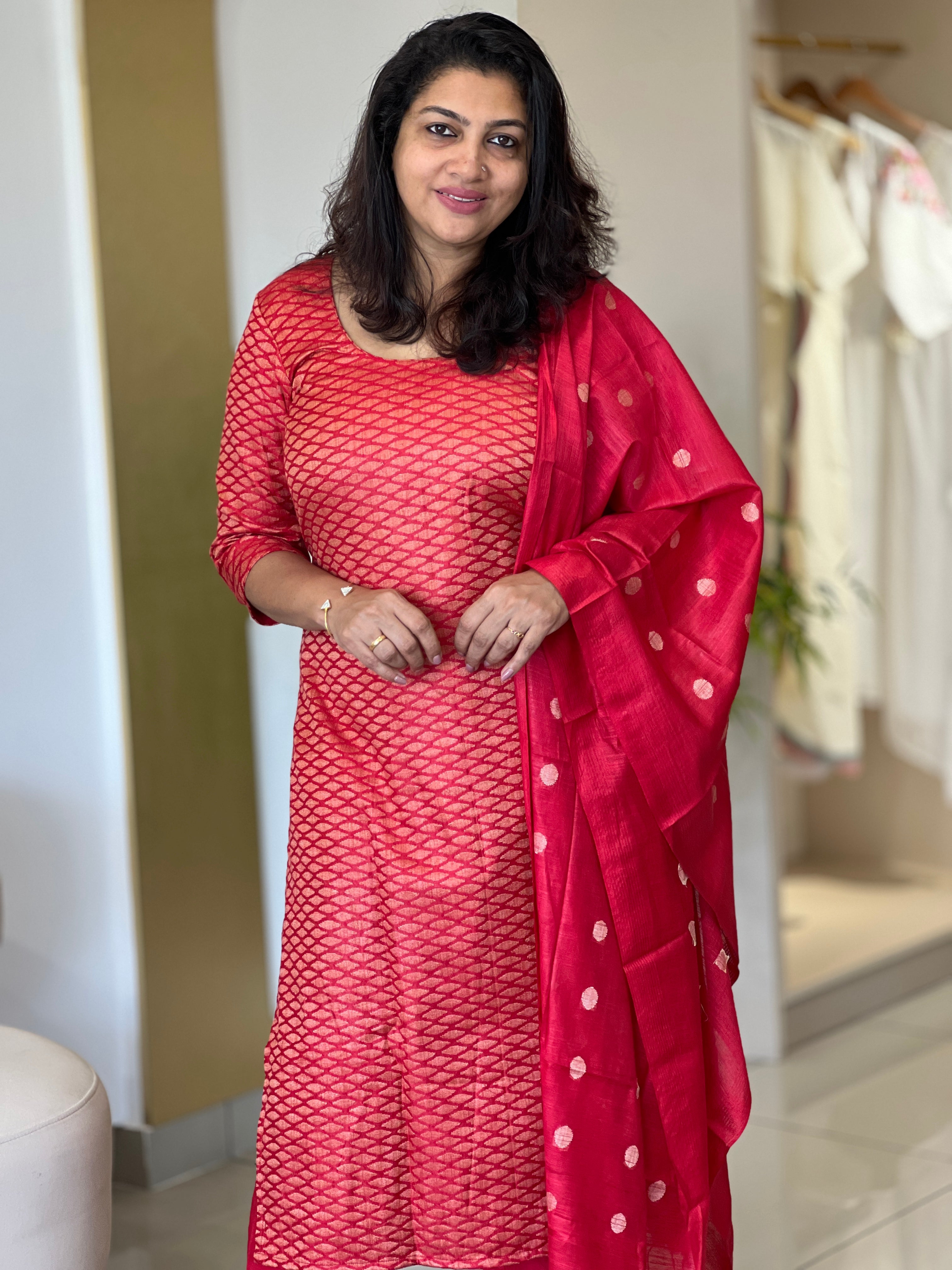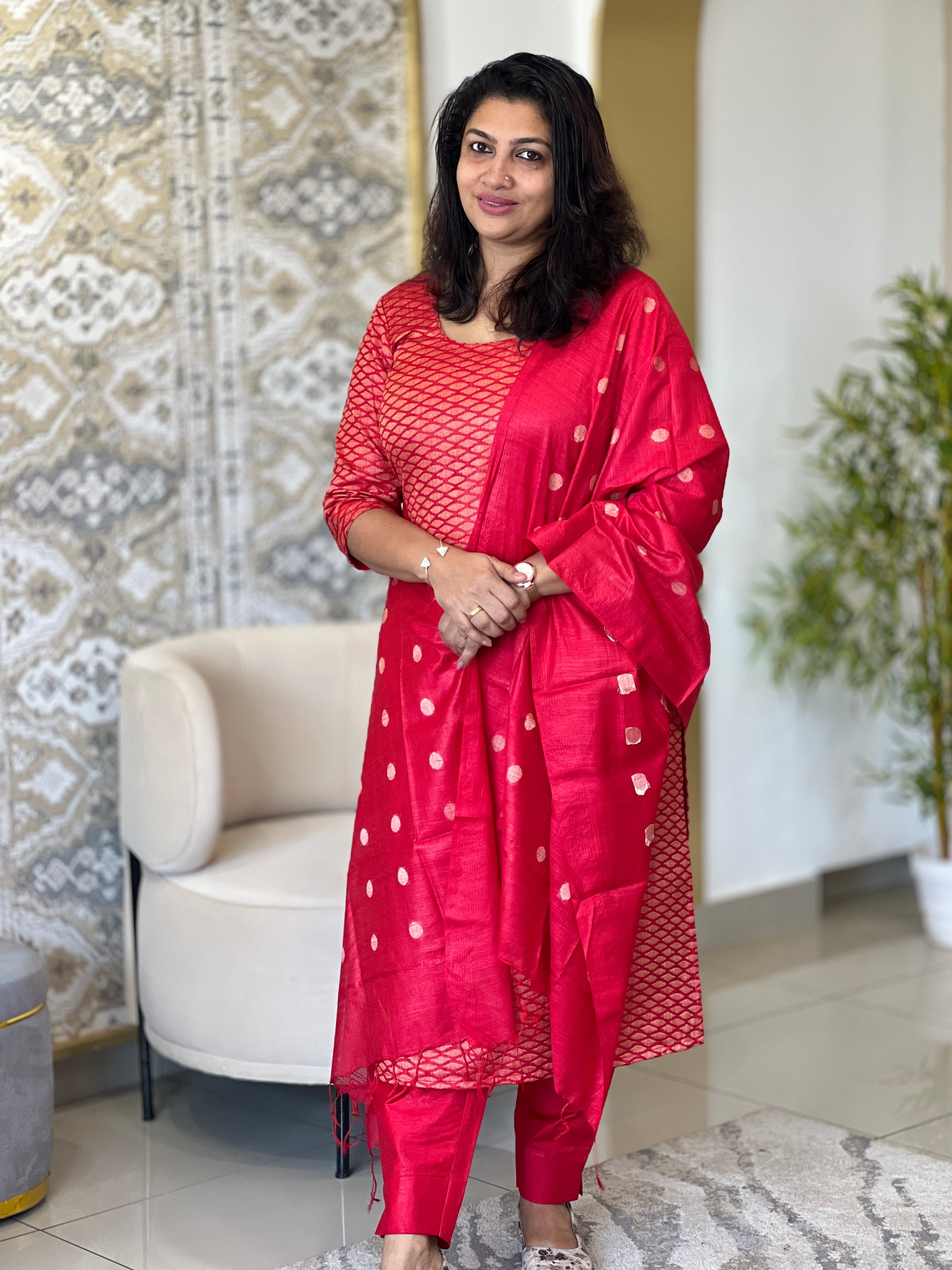 - Style: Jacquard Weaving, Tussar Finish, Fish Scale Pattern