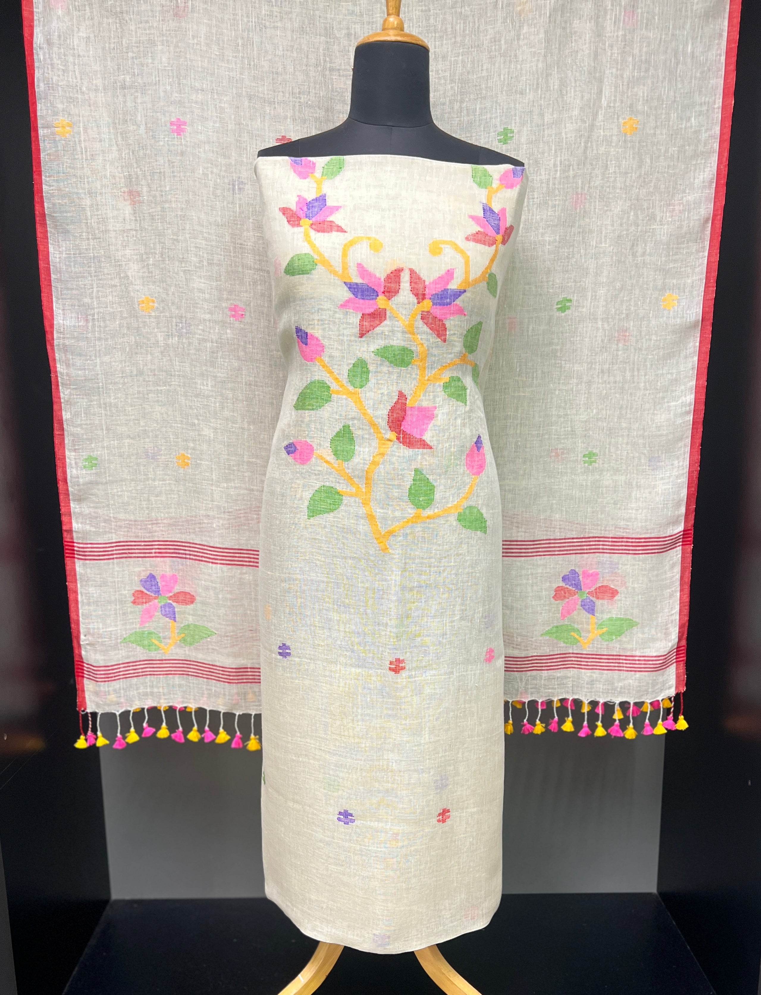 • Jamdani Weaved Pure Linen Salwar Set (Without Bottom) | COC114