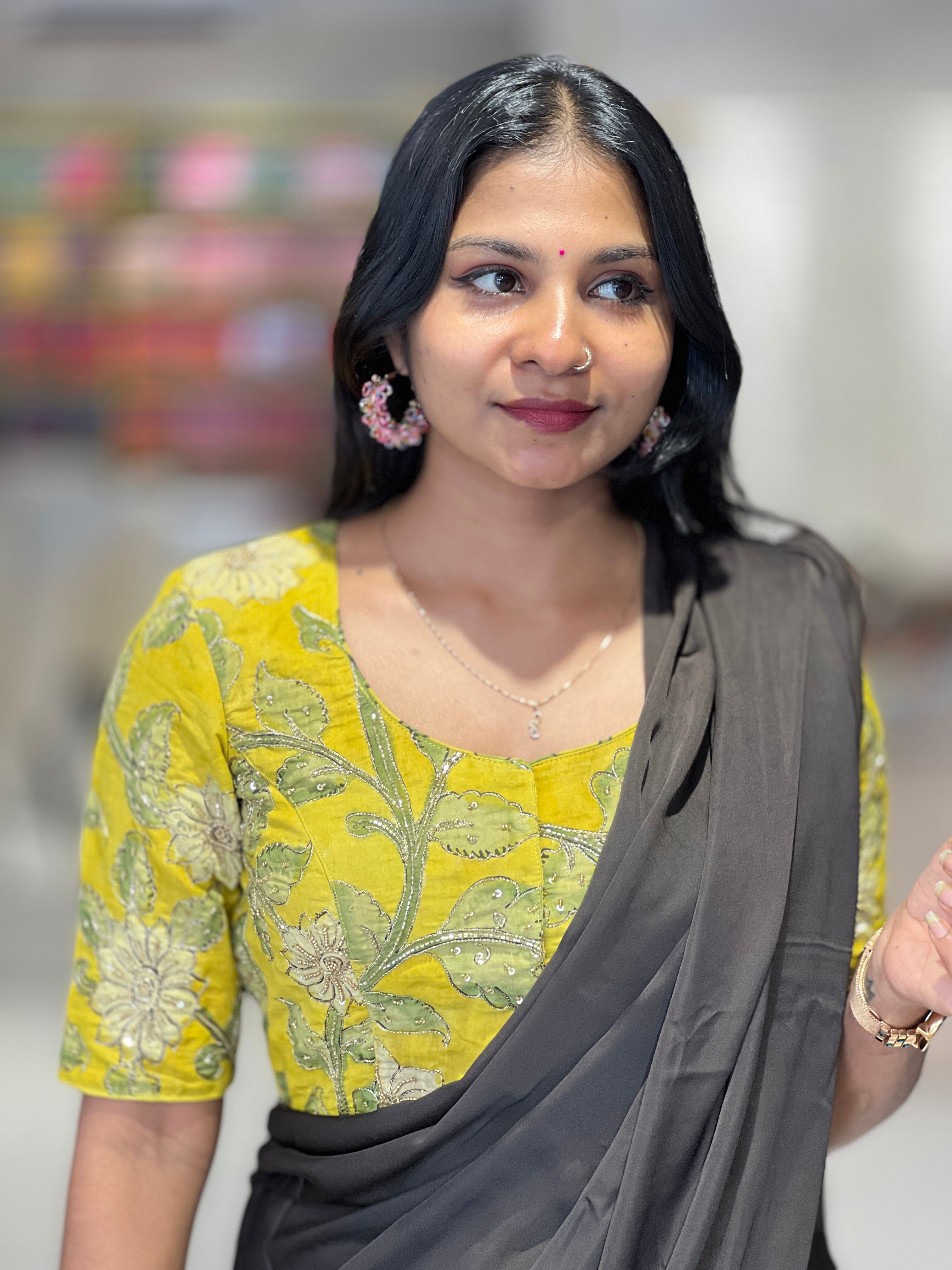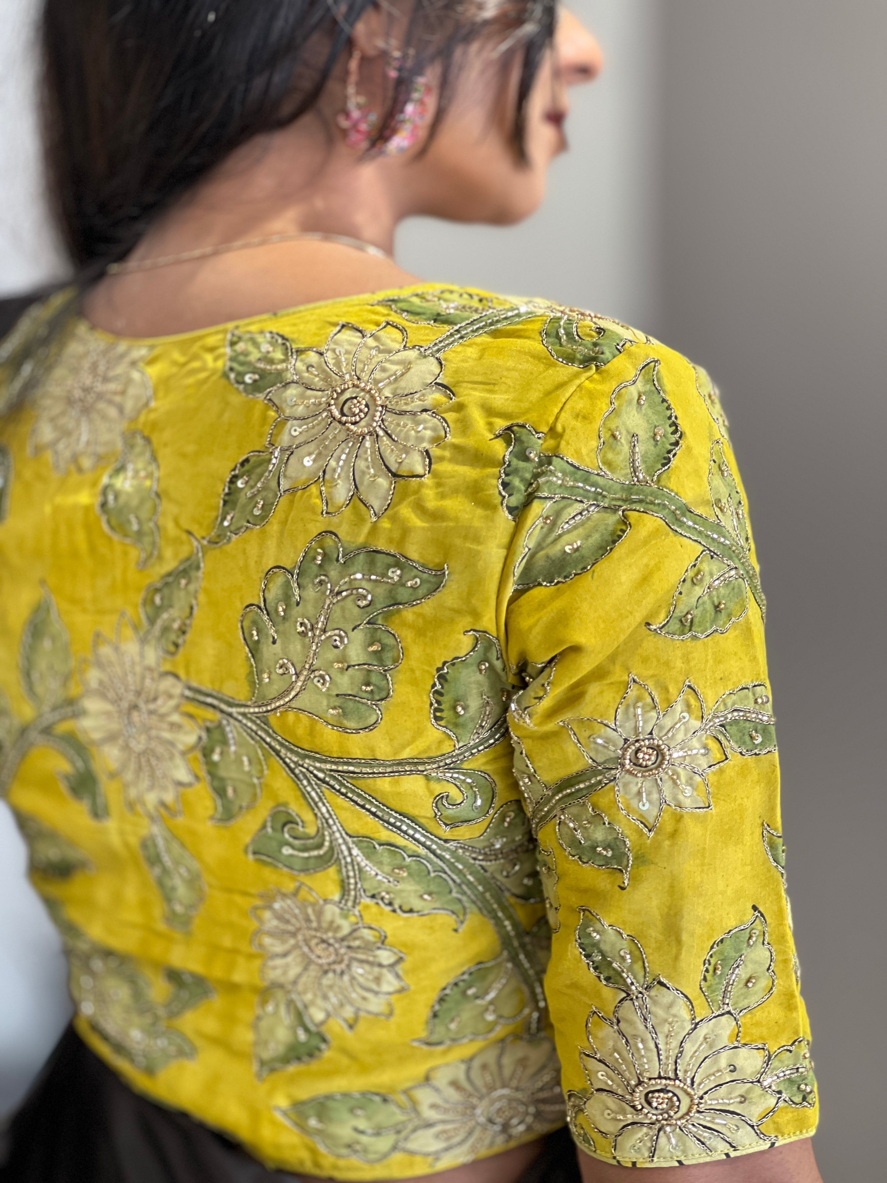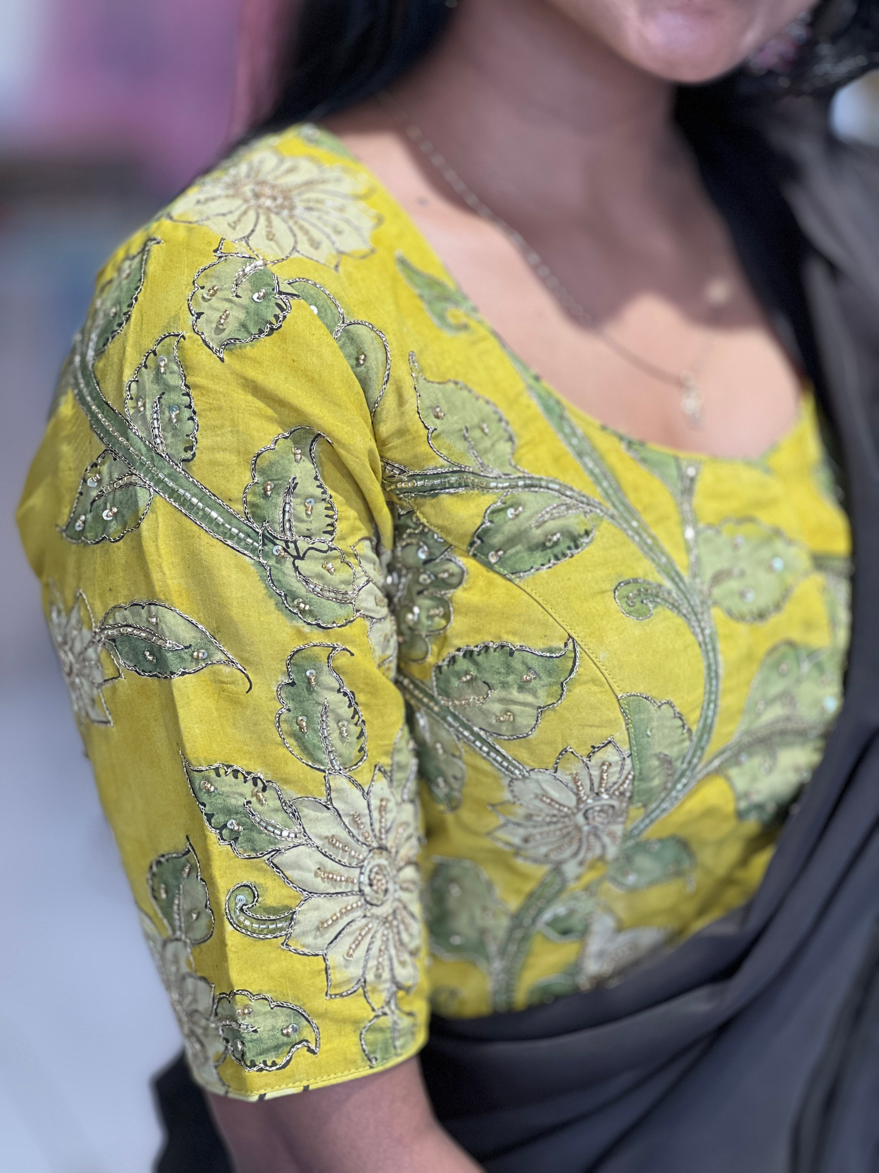 - Style: Floral Pattern, Hand Embroidery & Zari Highlight, Princess Cut, Padded, Cotton Lining, Back High Neck