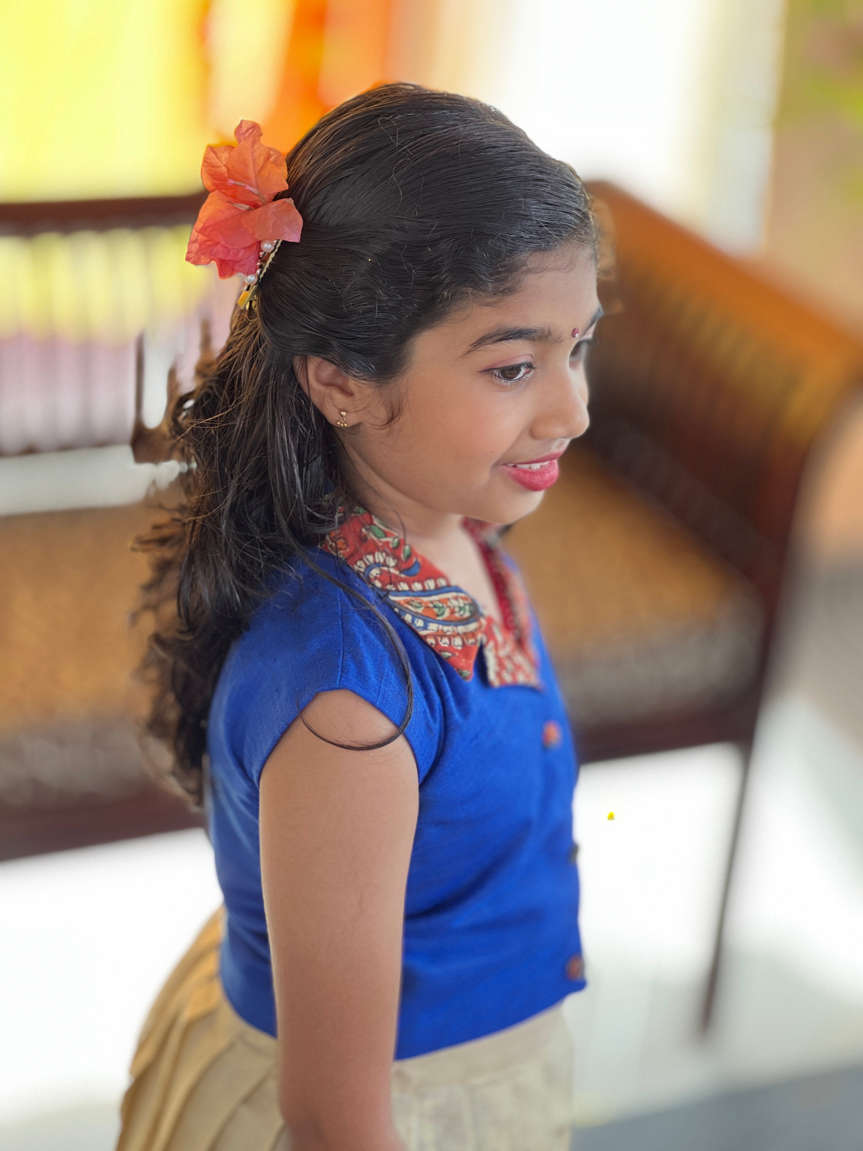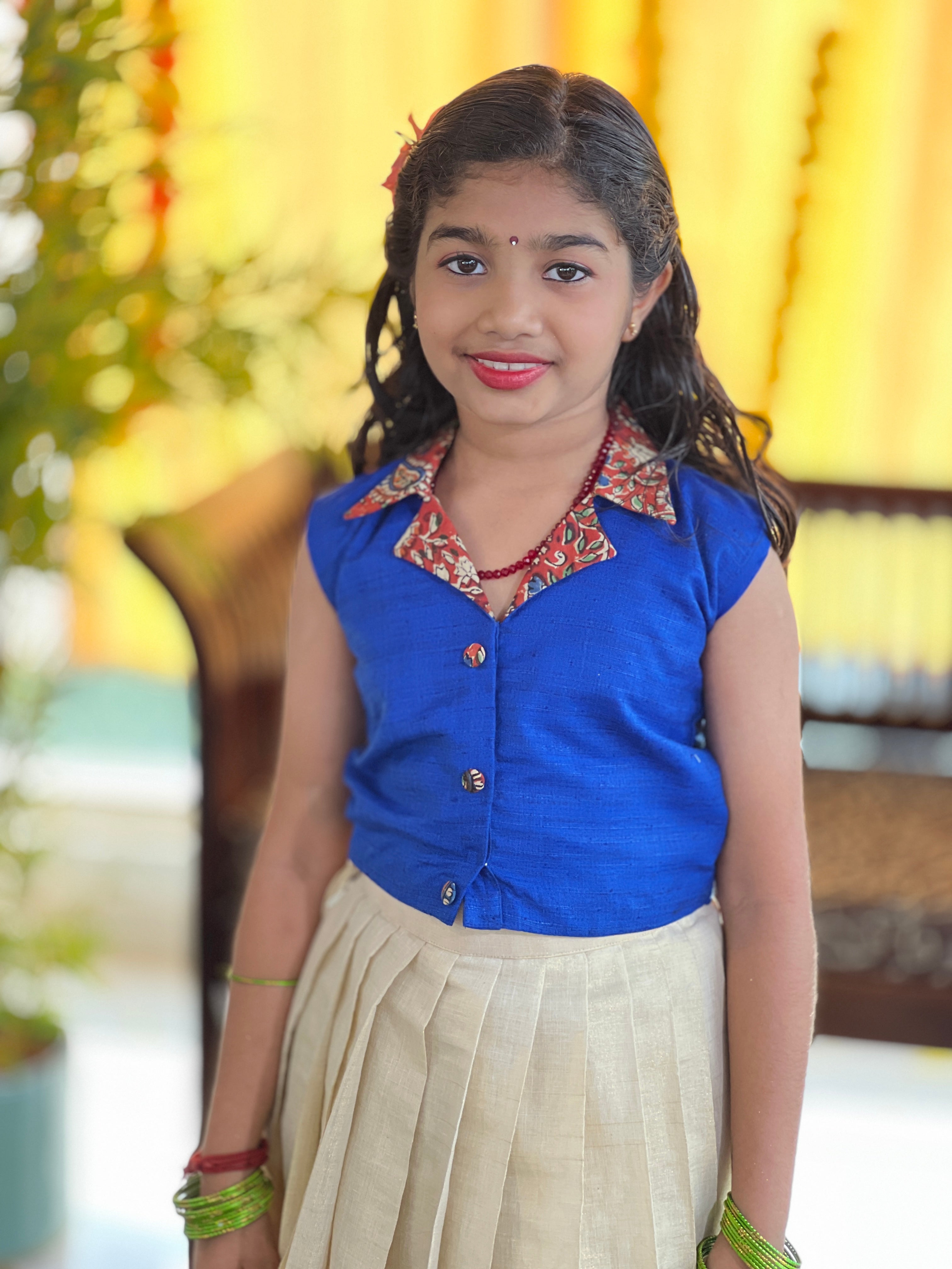 • Style: Kalamkari Printed Collar Neck & Button Detailing