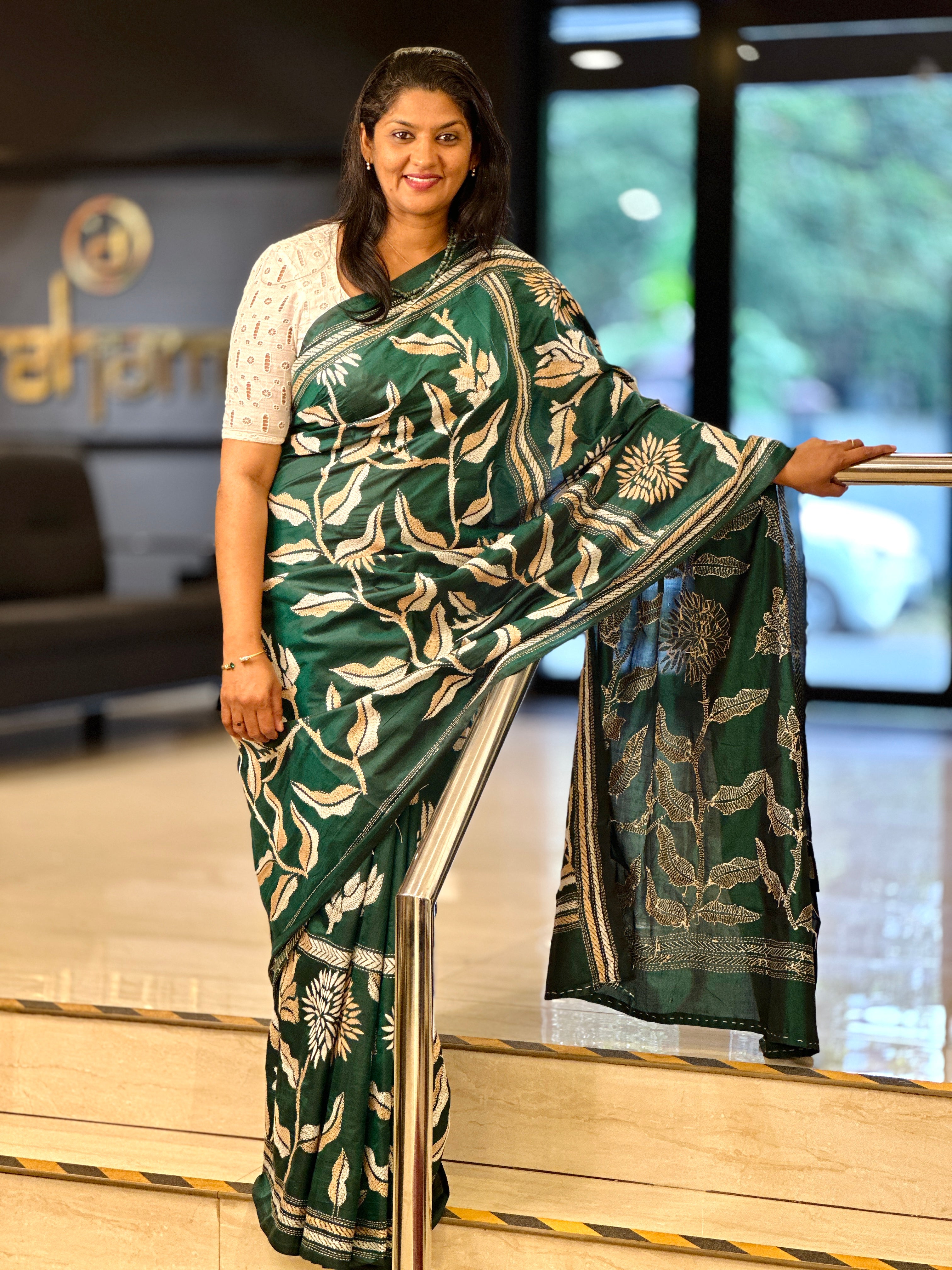 - Style: Hand Kantha Embroidery Detailing, Floral & Leaf Pattern
