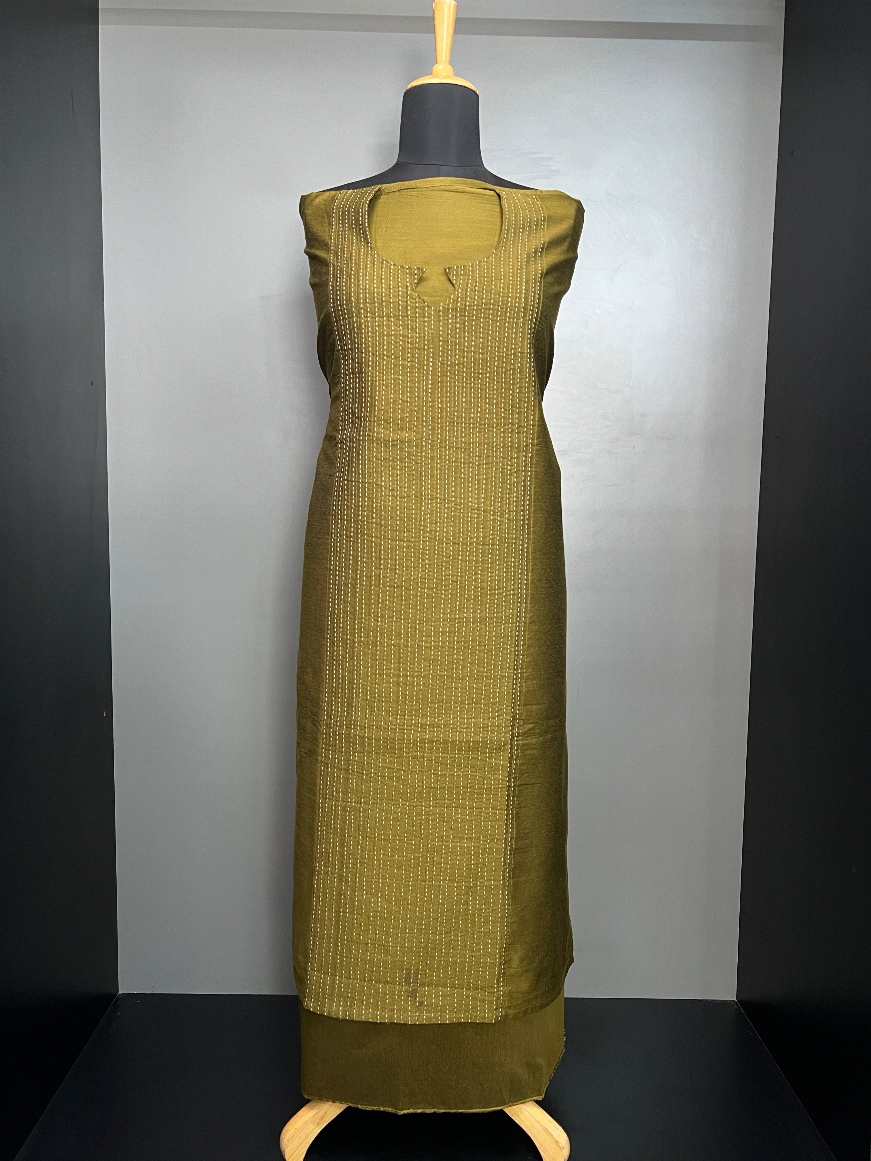 Kantha Embroidery Detailed Semi Stitched Chanderi Salwar Set | HE225