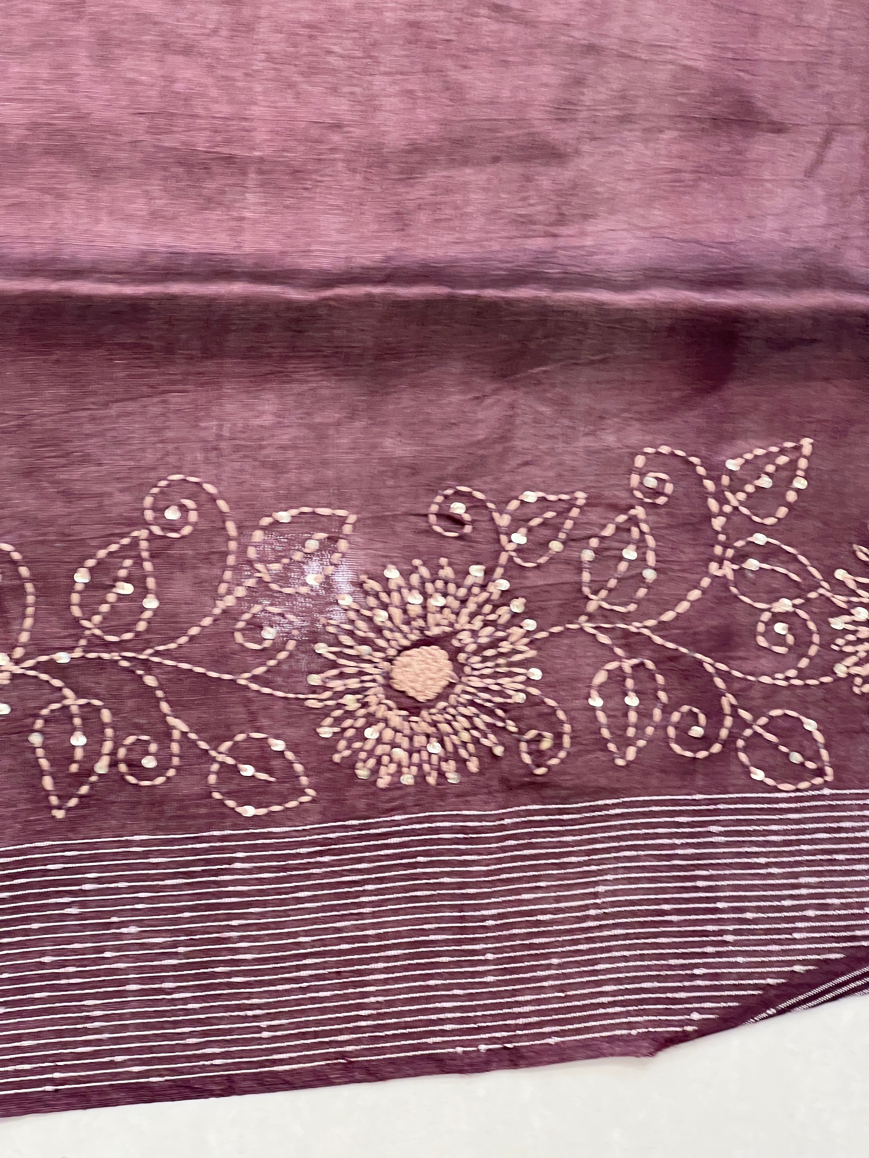 - Style: Kantha Floral Embroidery Detailed Body With Sequence Highlight, Kesiya Weaved Borders & Pallu