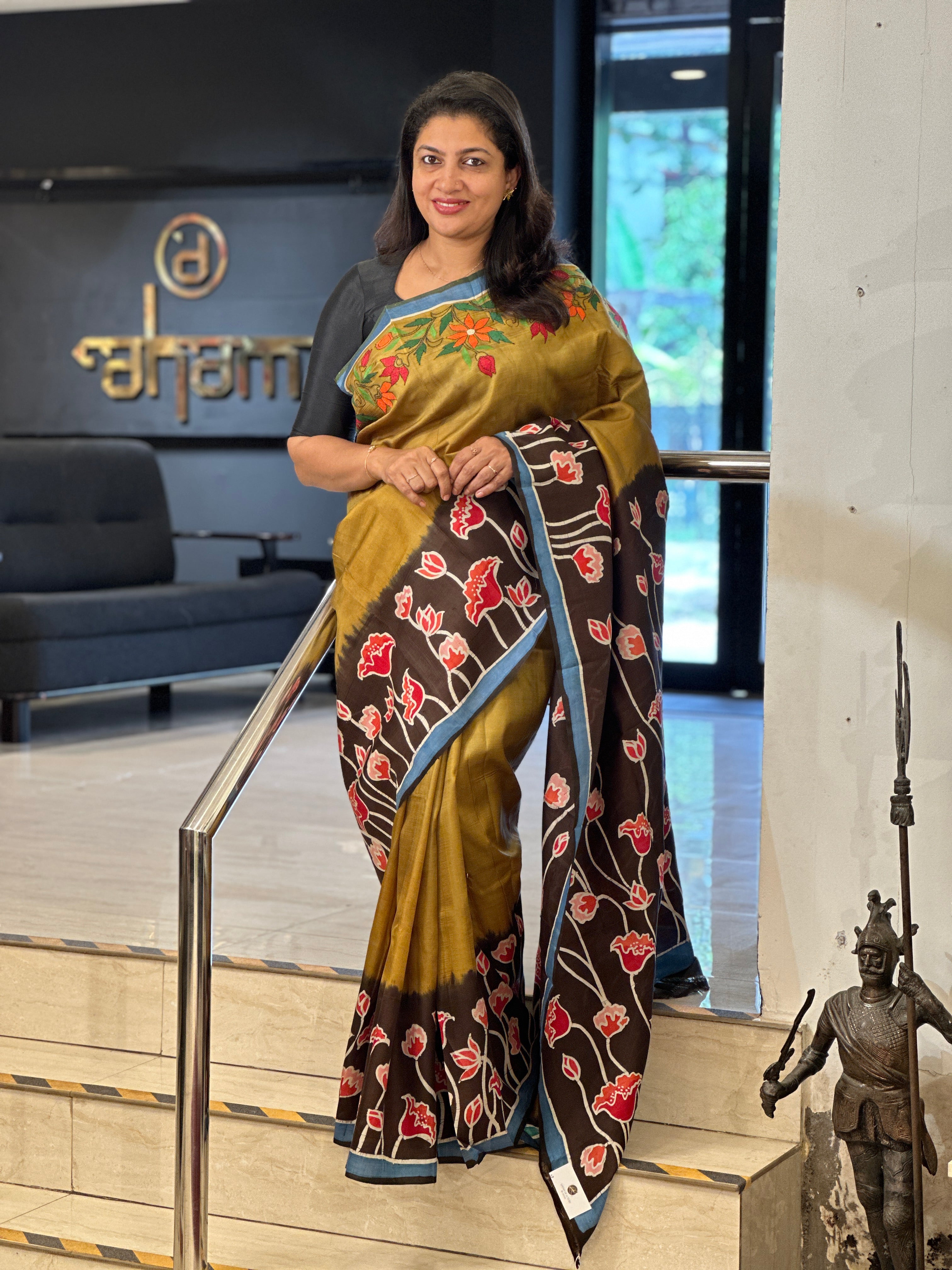 - Style: Kantha Embroidery Detailing, Silk Painted Floral Patterned Lower Borders & Pallu