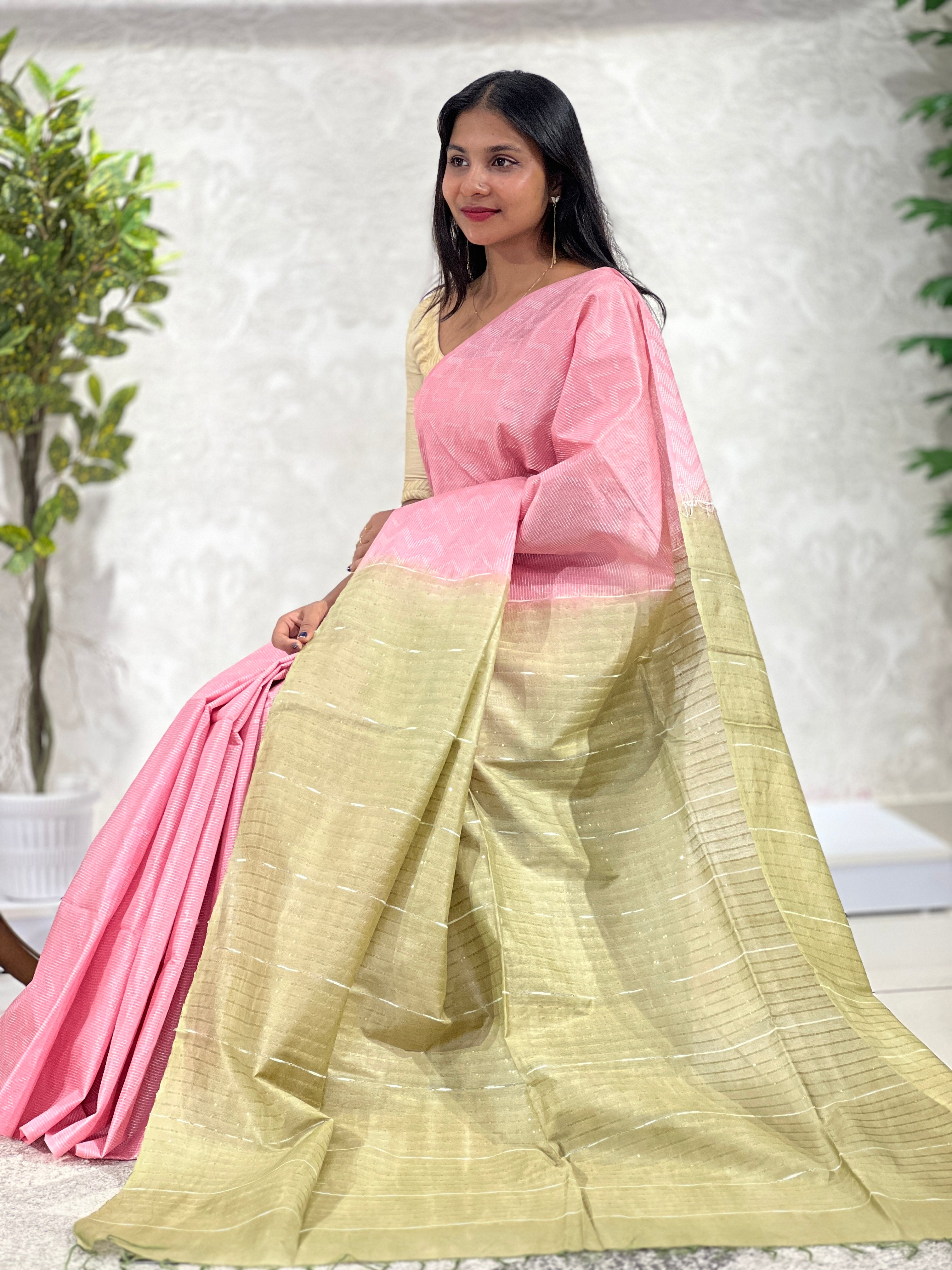 - Style: Kantha Weaved Zig Zag Pattern, Powerloom, Sequence Weaved Contrast Pallu