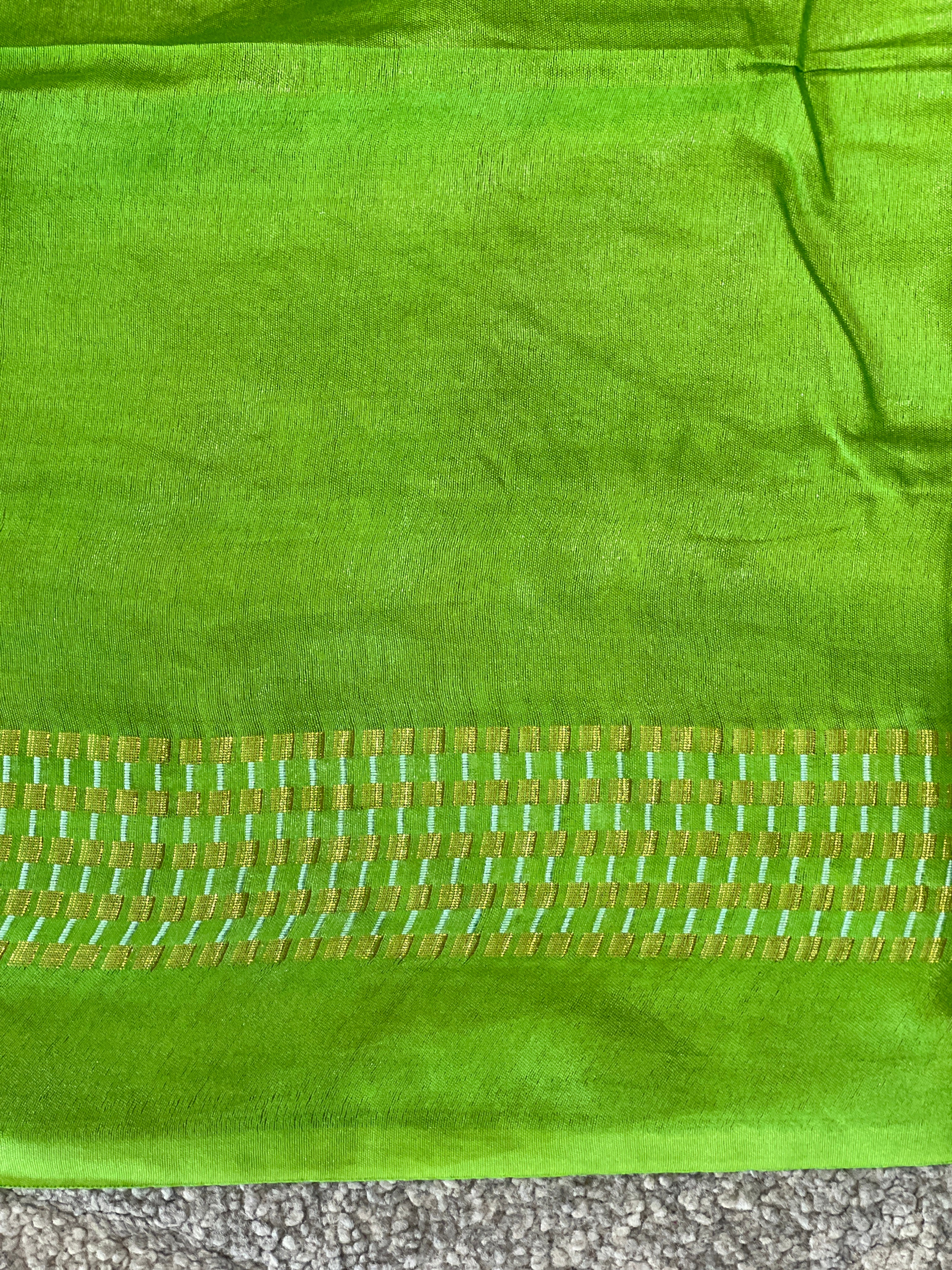 - Style: Kantha Weaved, Geometric Patterned Contrast Pallu, Kesiya & Lurex Yarn Weaved Pallu, Geometric Line Patterned Borders
