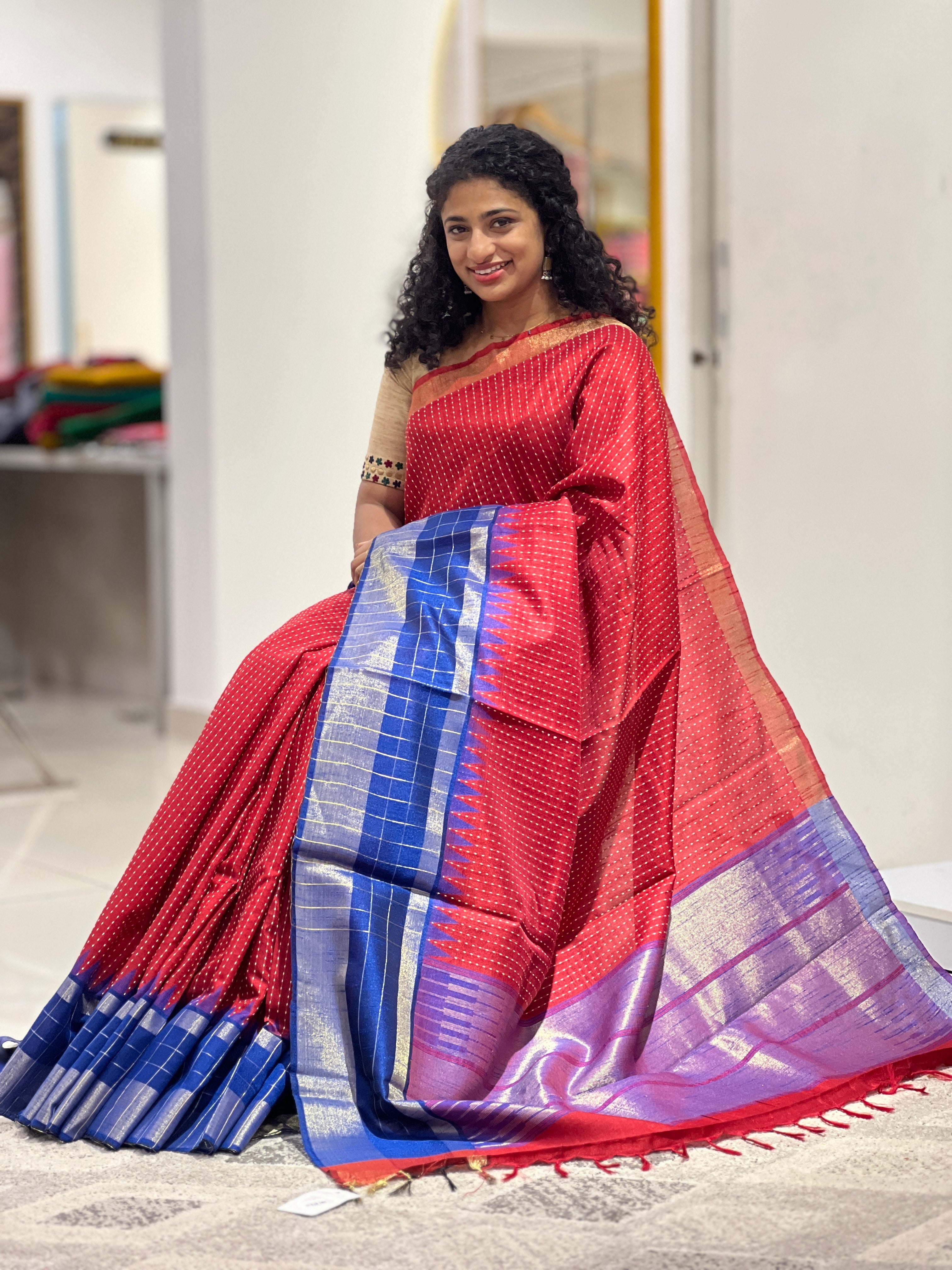 - Style: Kantha Weaved, Temple Border Detailing, Check Patterned Lower Border, Zari Borders