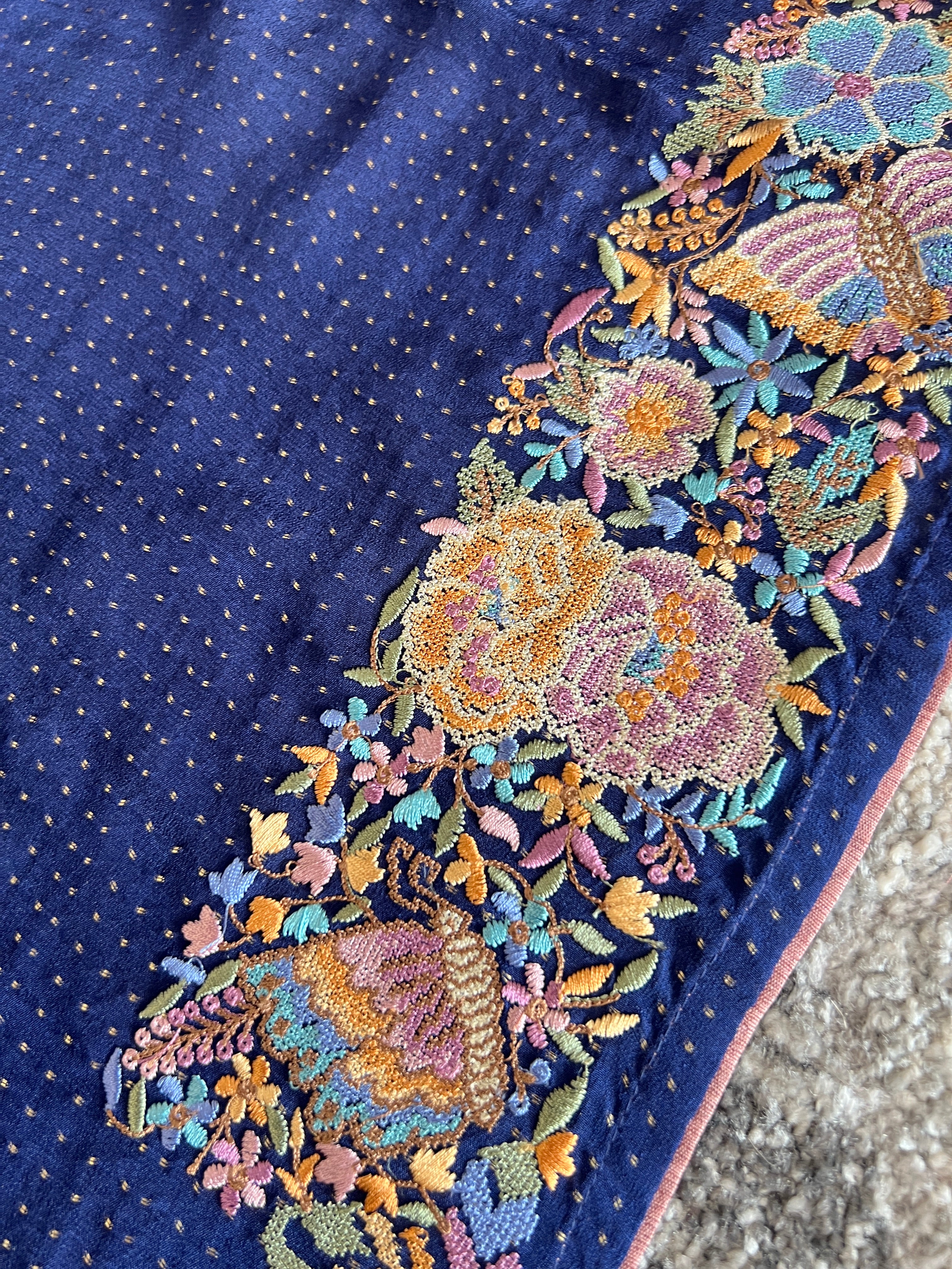 - Style: Zari With Kantha Weaving Pattern, Machine Embroidery Floral Design