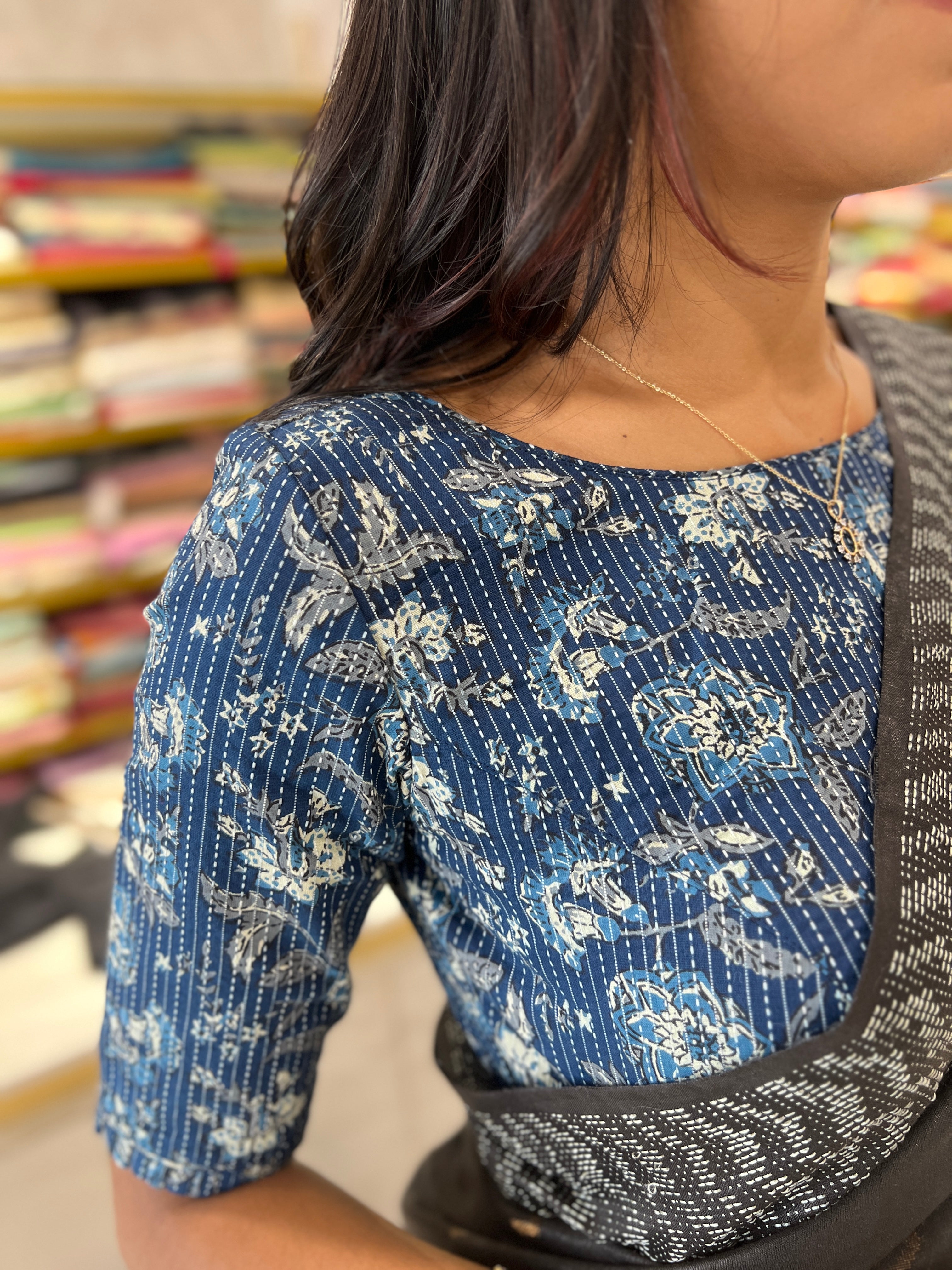 - Style: Screen Print, Kantha Weaved, Eye Hole Detailed Back Portion, Princess Cut, With Pad, Cotton Lining