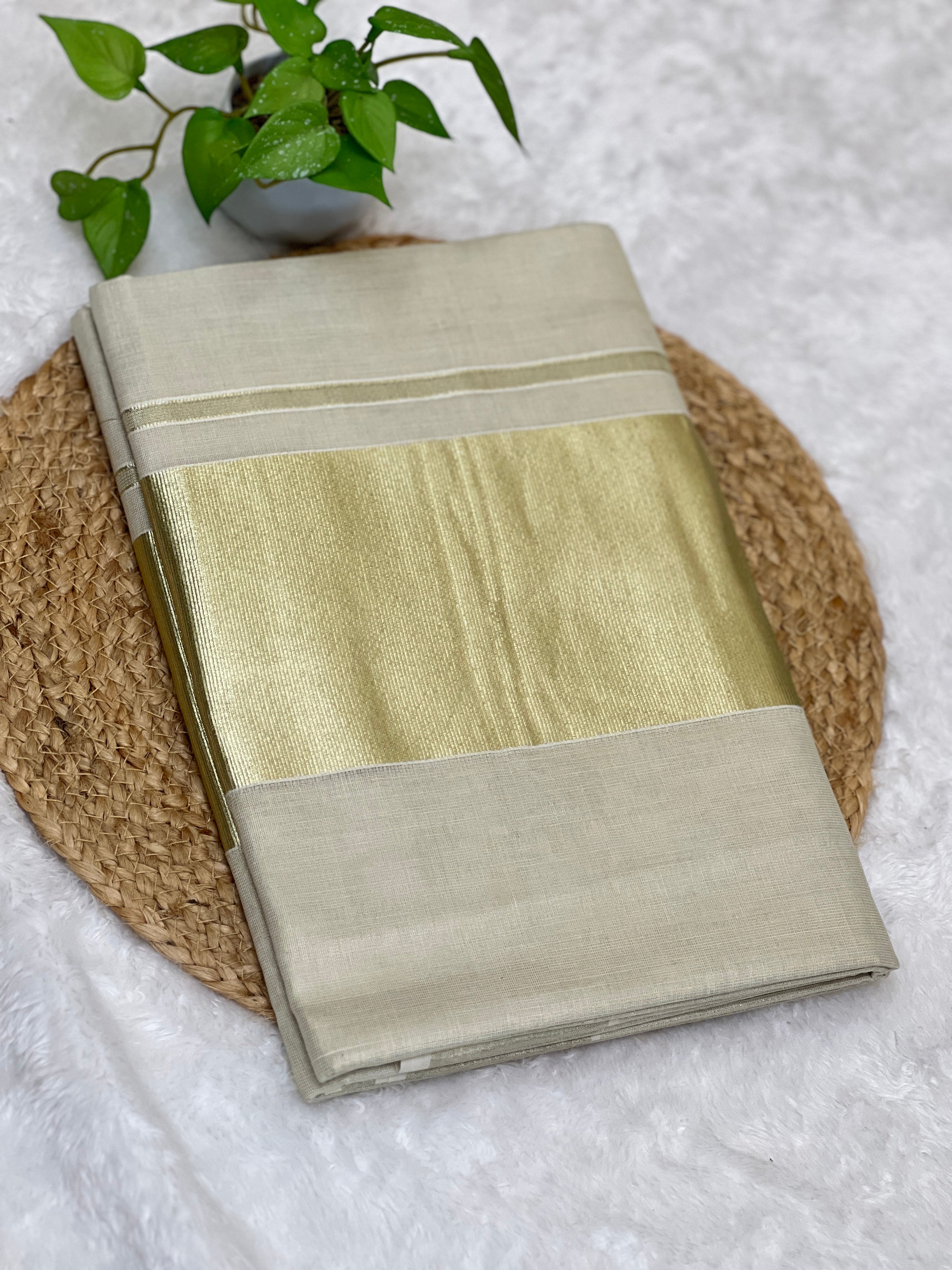 - Style: Light Golden Kasavu Border Detailing