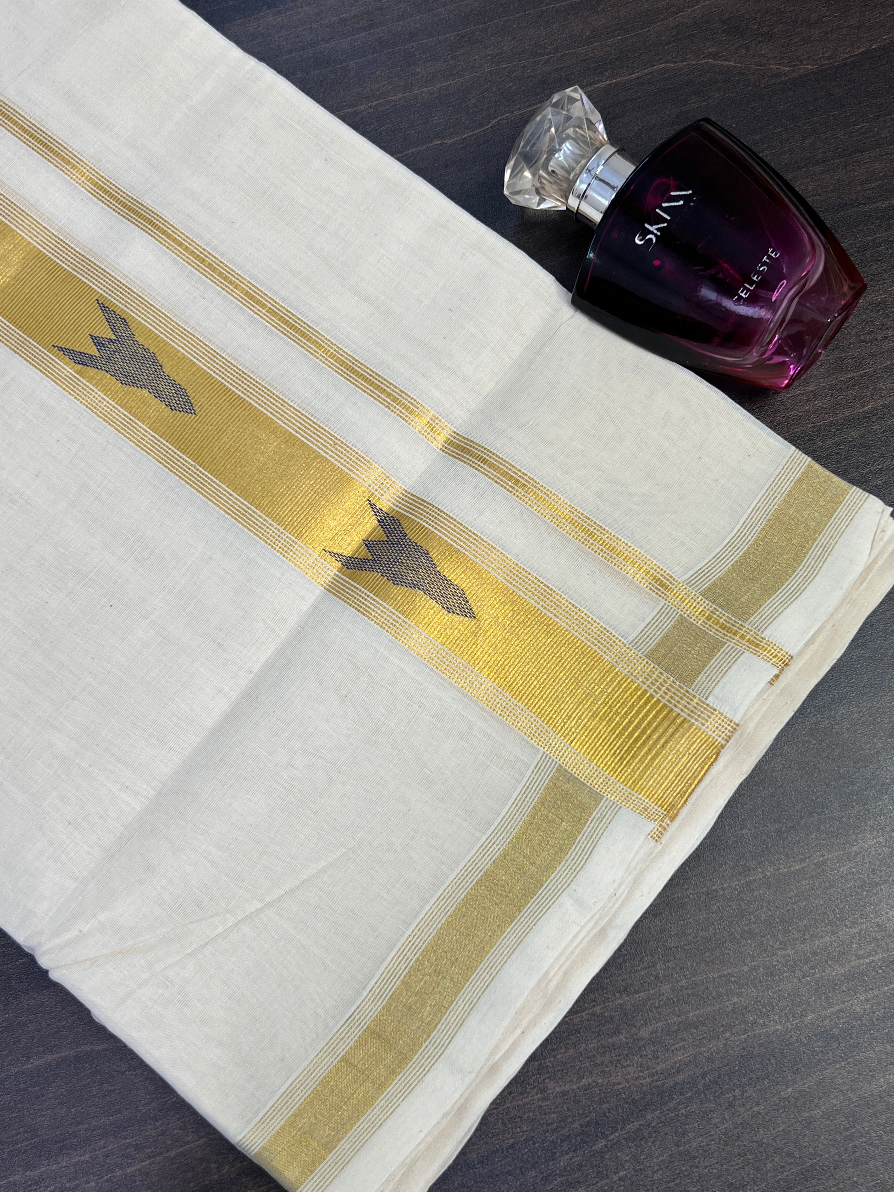 - Style: Handloom, Golden Kasavu With Geometric pattern Detailed Borders
