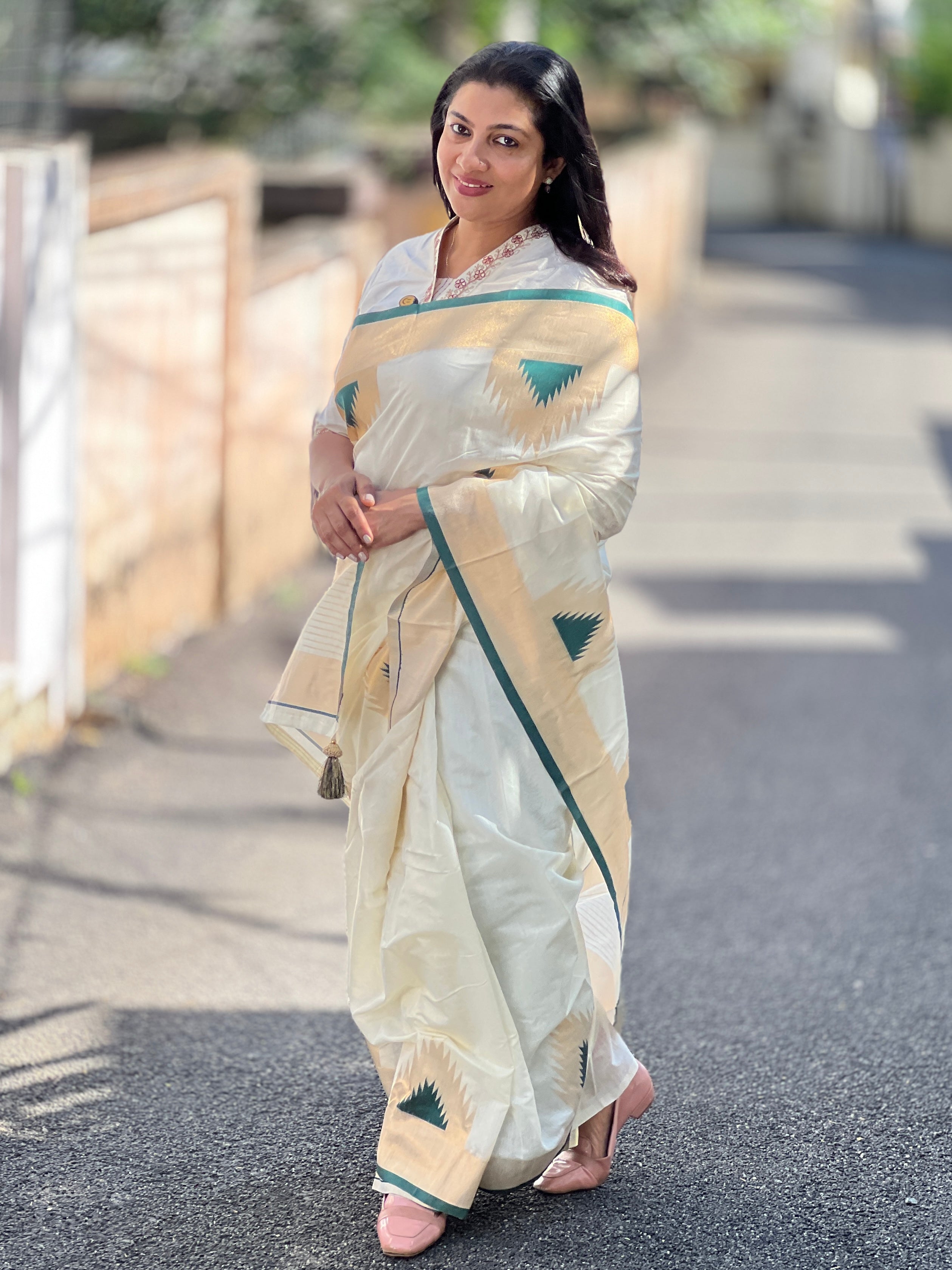 • Style: Temple Border Pattern, Kasavu & Kara Weaved Borders, Zari Weaved Pallu, Tassels Attached