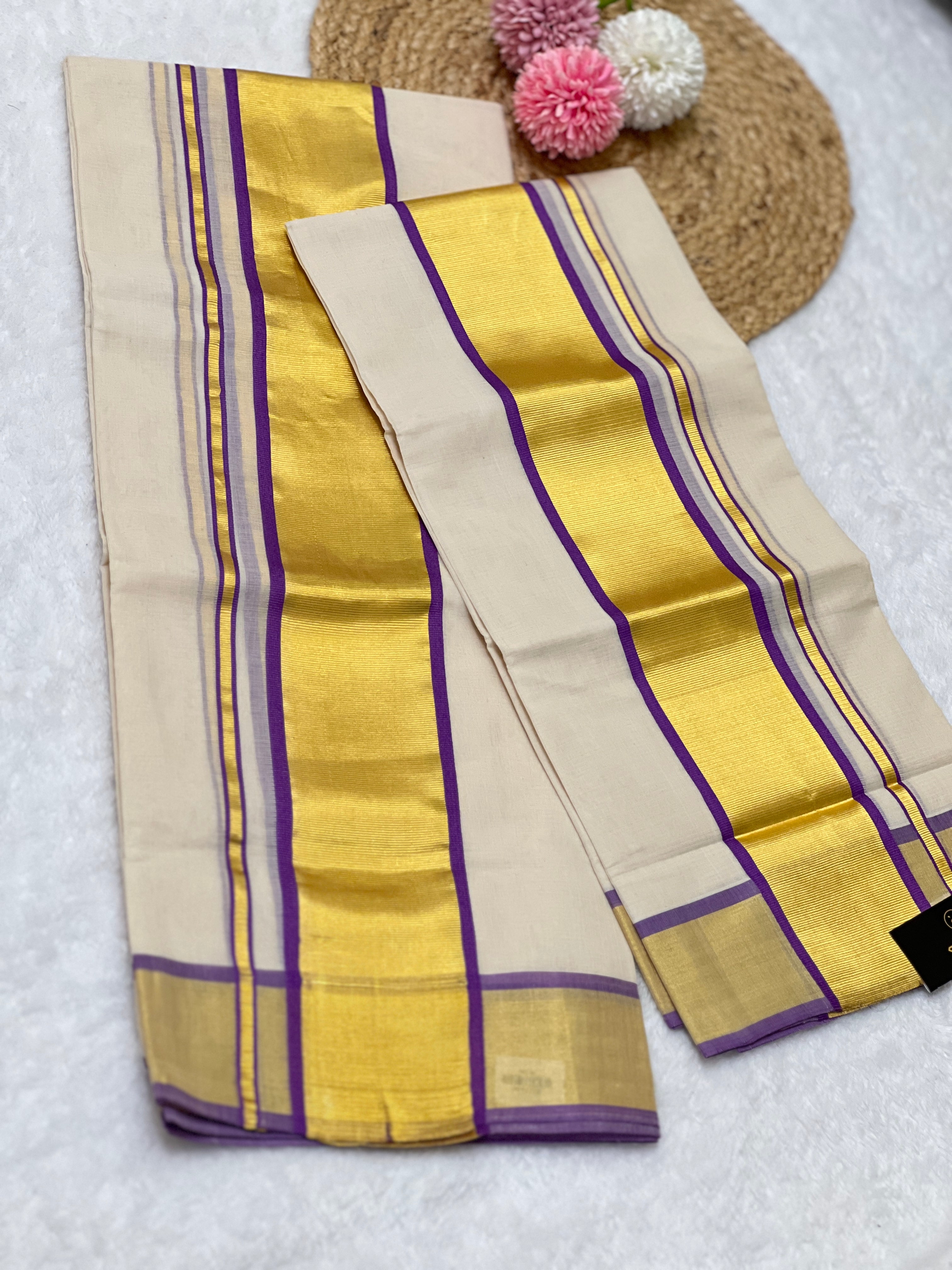 • Kasavu With Kara Detailed Handloom Kerala Cotton Set Mundu | KL339
