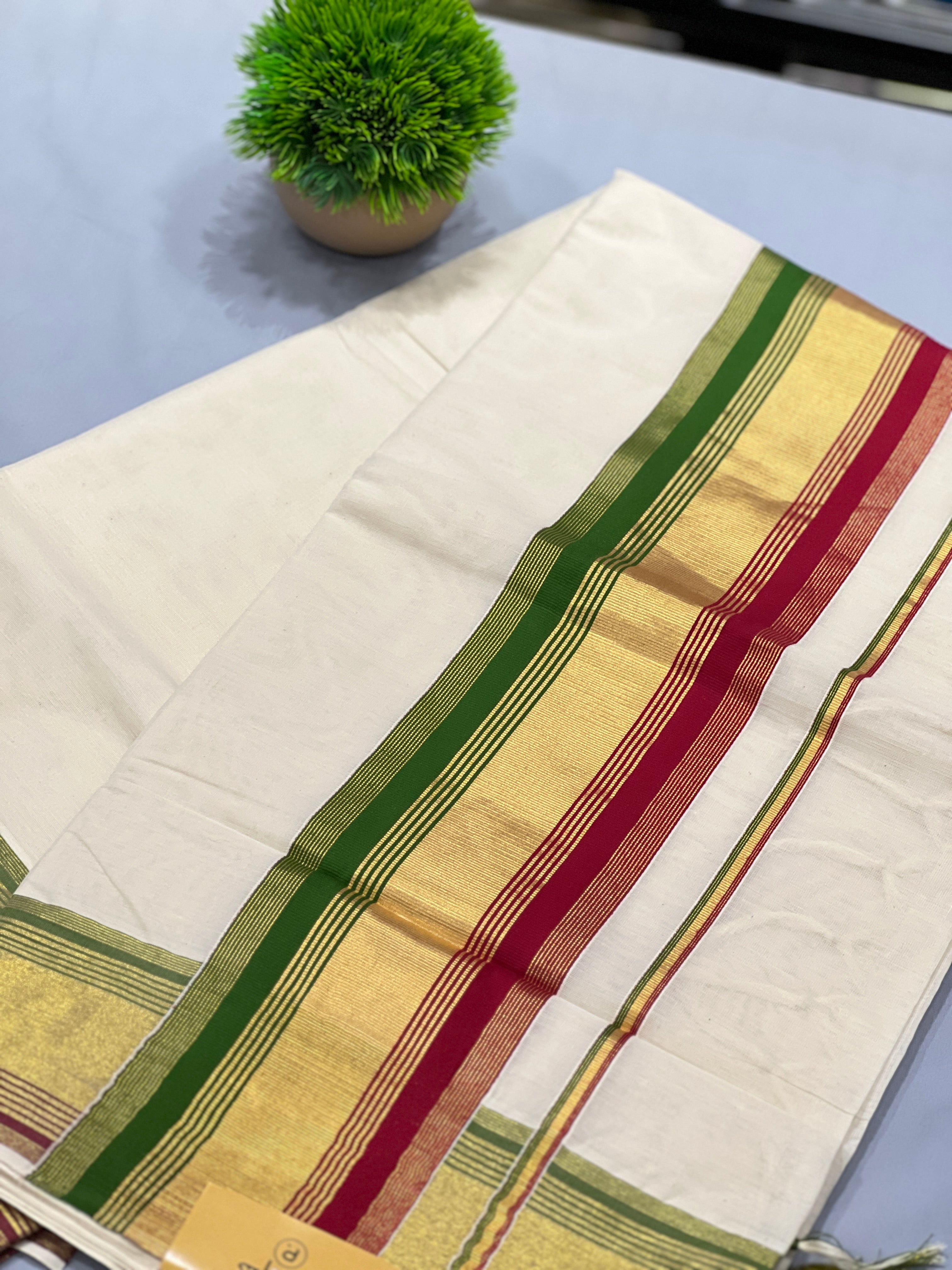 - Style: Kasavu With Kara Detailing, Golden Zari Detailing, tassels Detailing