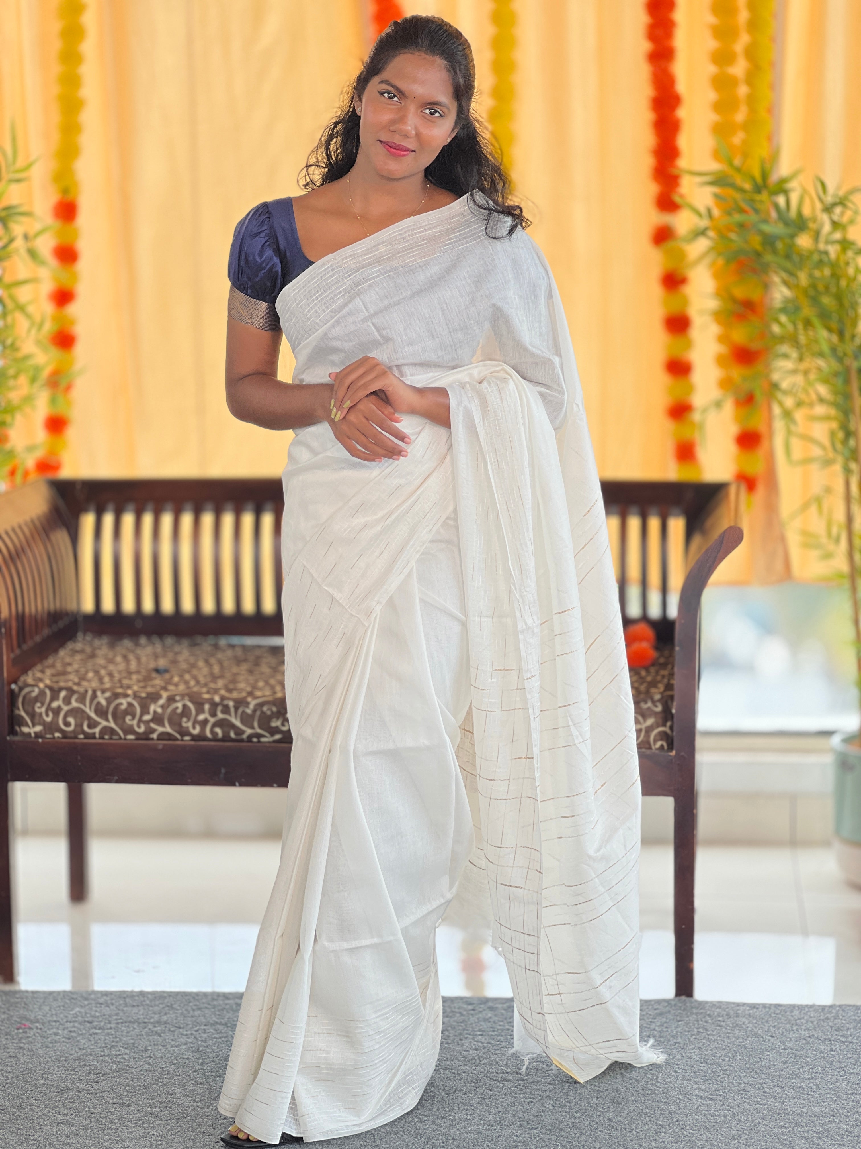 - Style: Thread Weaving Pattern , Kesiya and Lurex Yarn Border Detailing, Kesiya Weaving Patterned Pallu, Self Tassels Attached