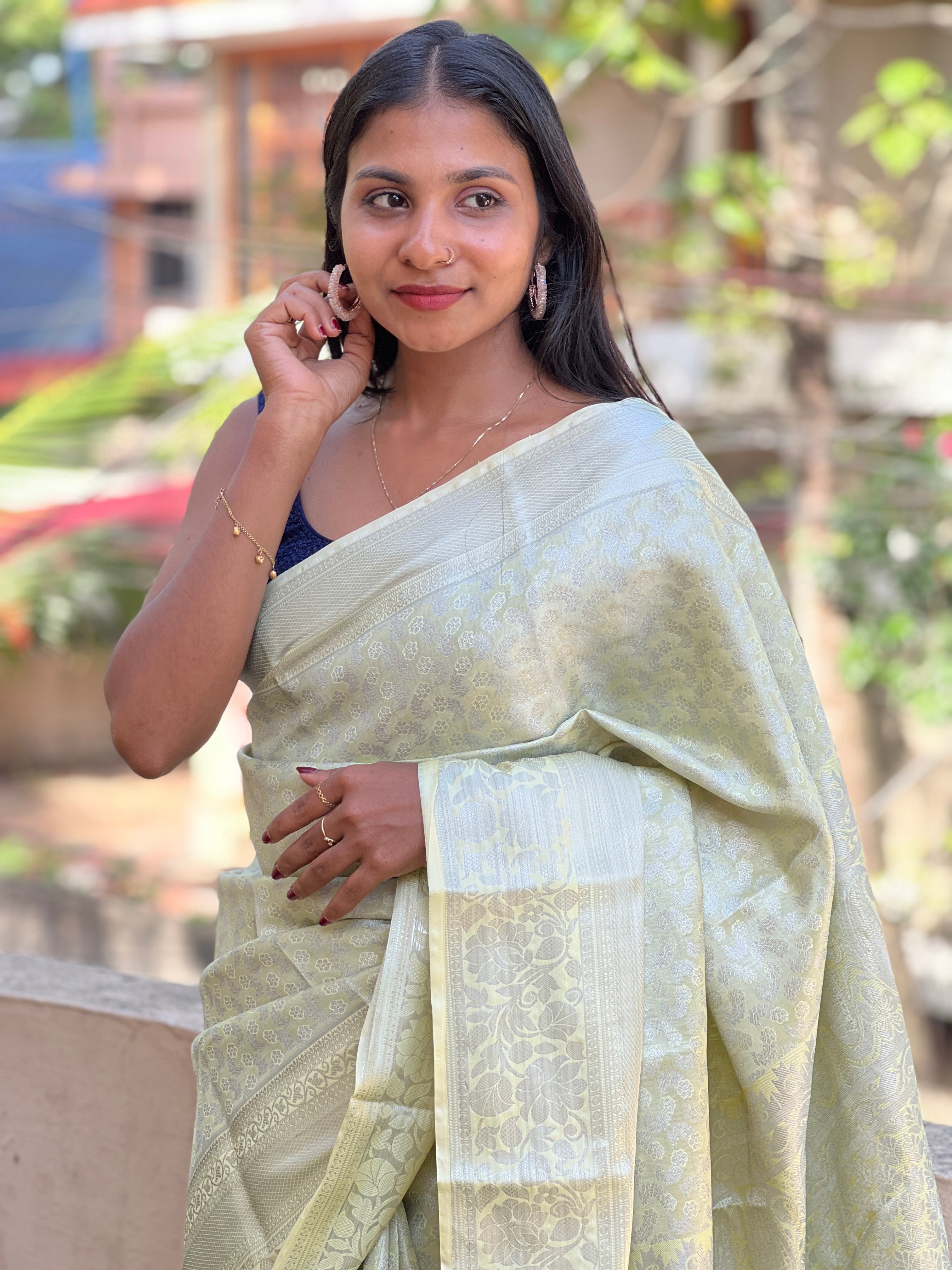 • Silver Zari Weaving Semi Silk Saree | KF154