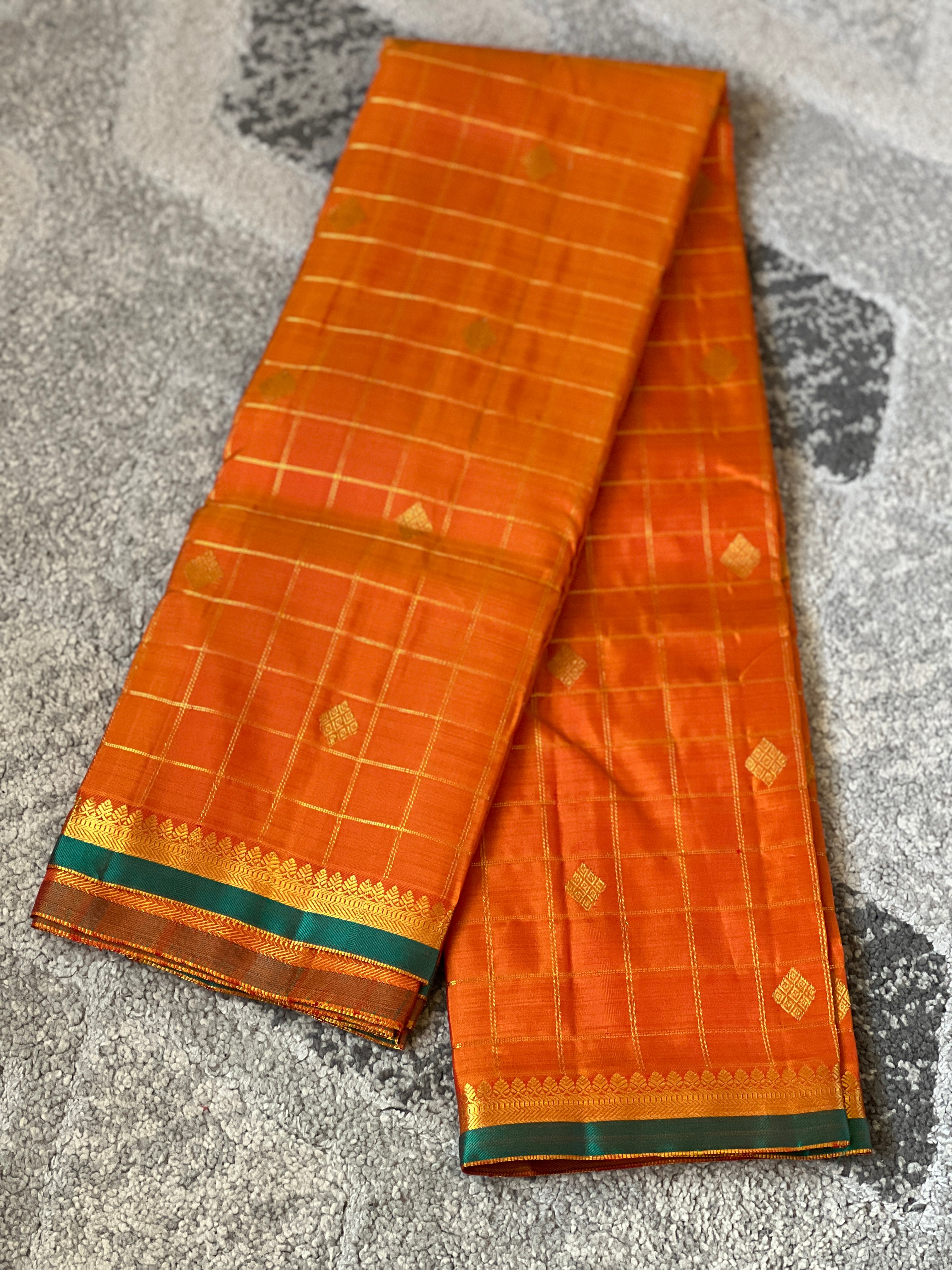 • Style: Zari & Thread Woven, Kolam Design With Diamond Patterned Motifs, Handloom, Diamond Patterned Pallu, Zari Borders