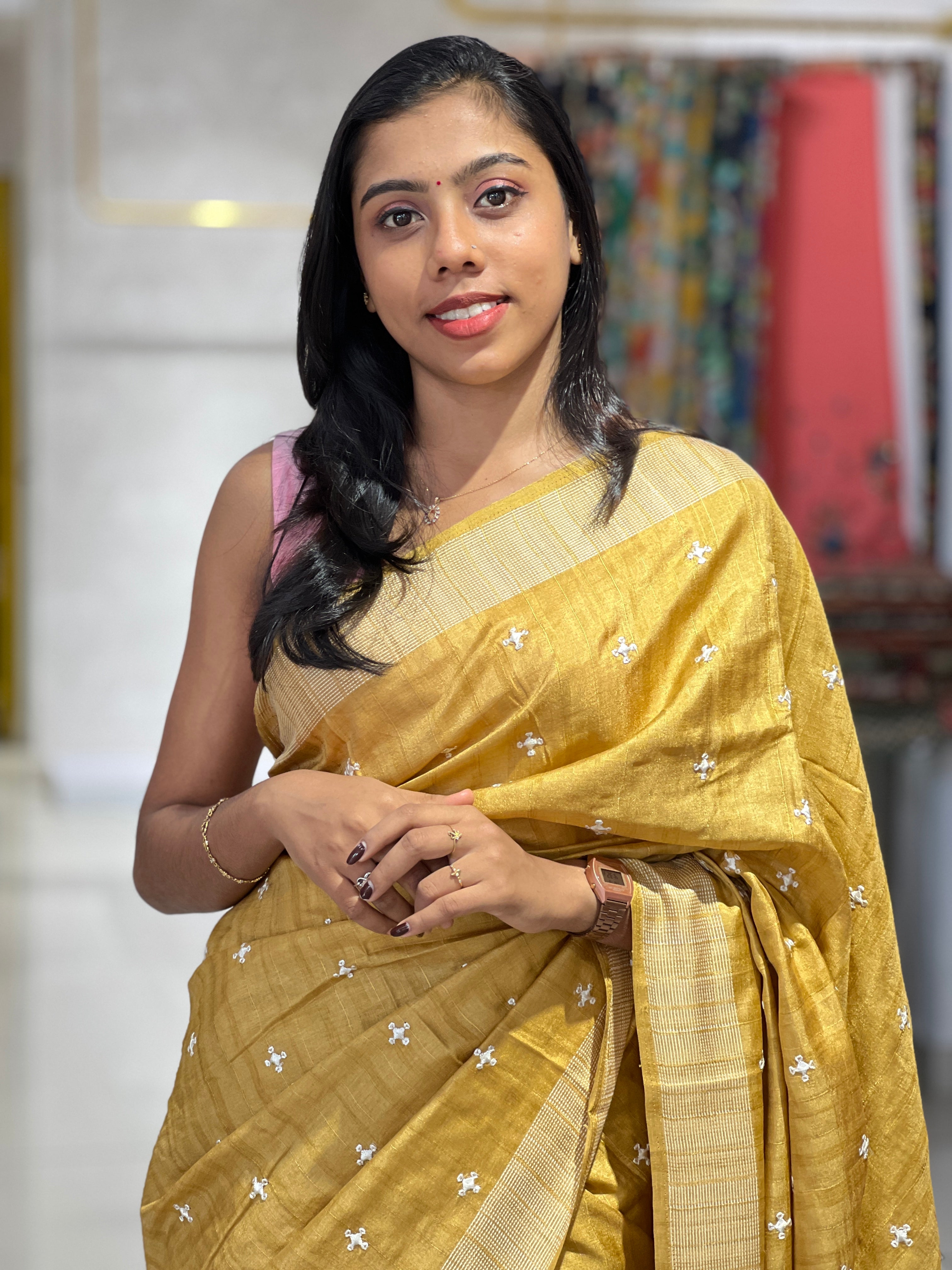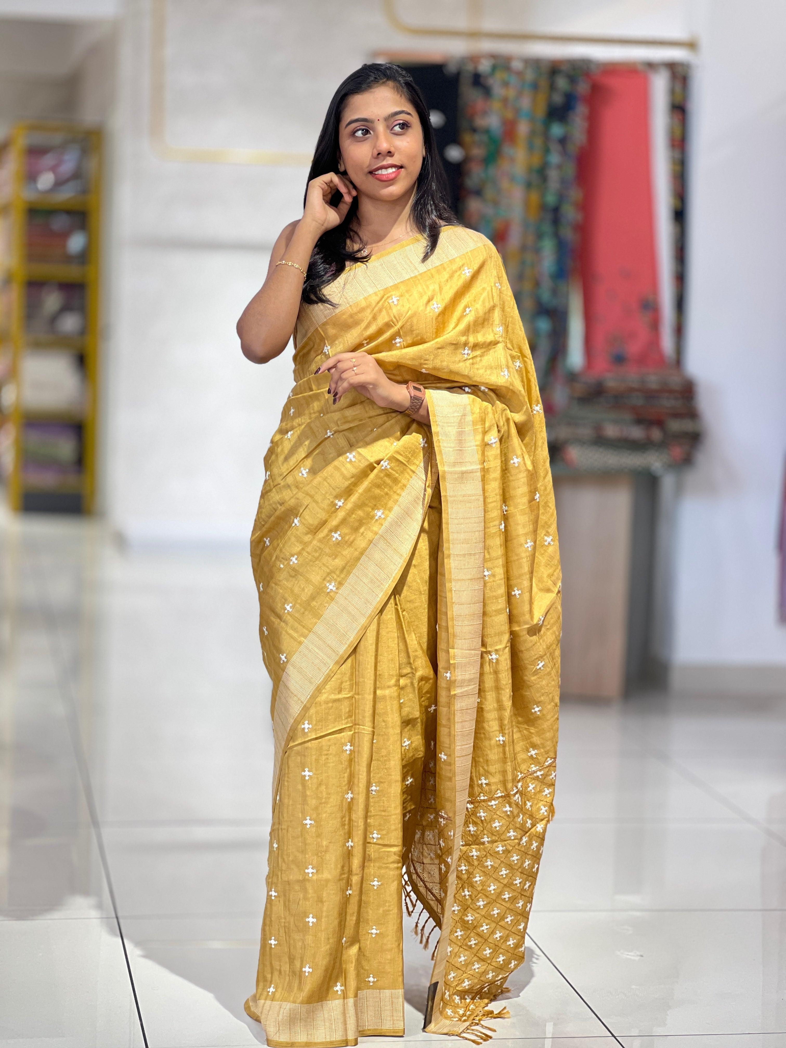 - Style: Kutch Inspired Embroidery Pattern, Kantha Weaving Border Detailing, Tassels Attaching