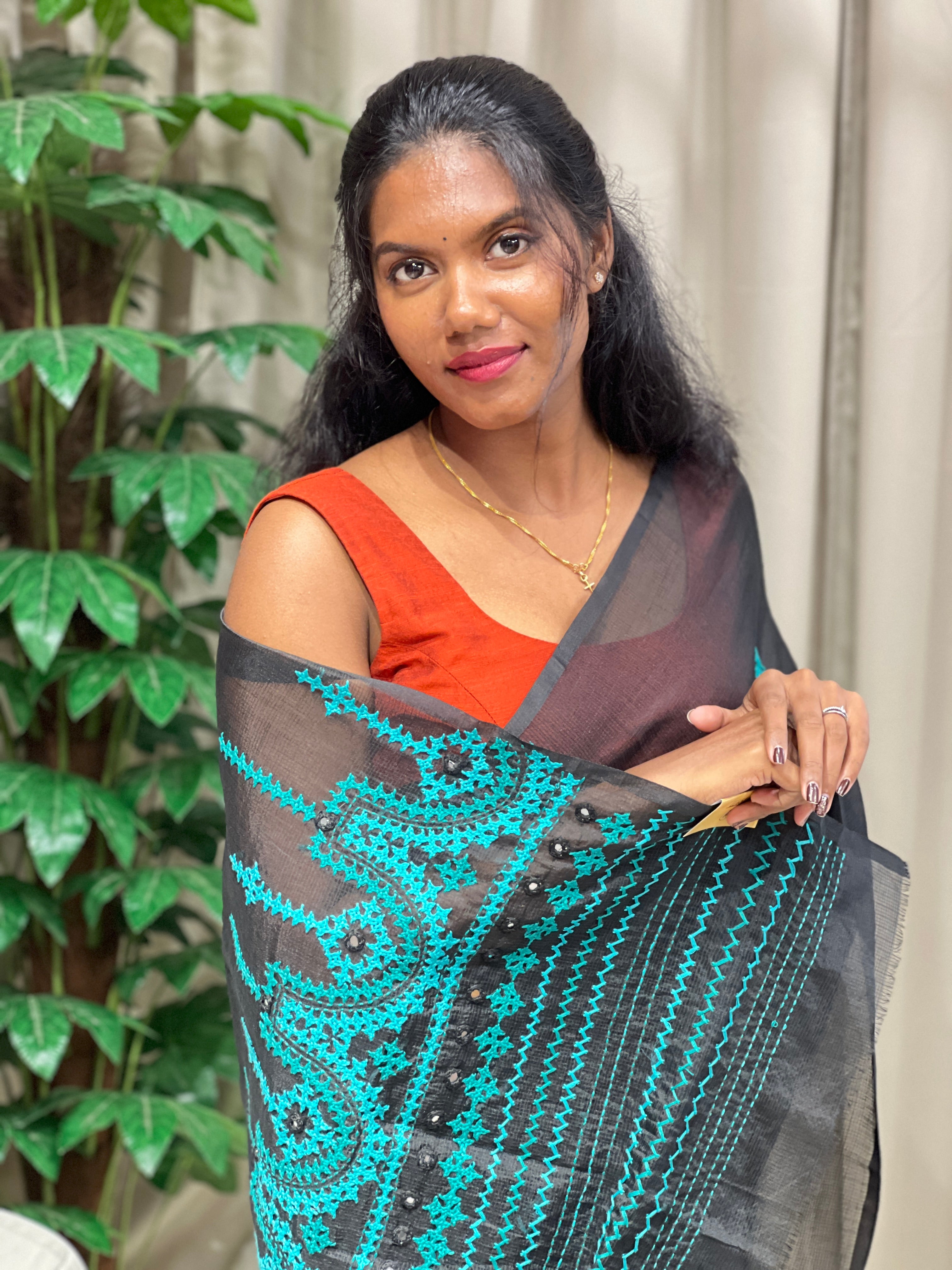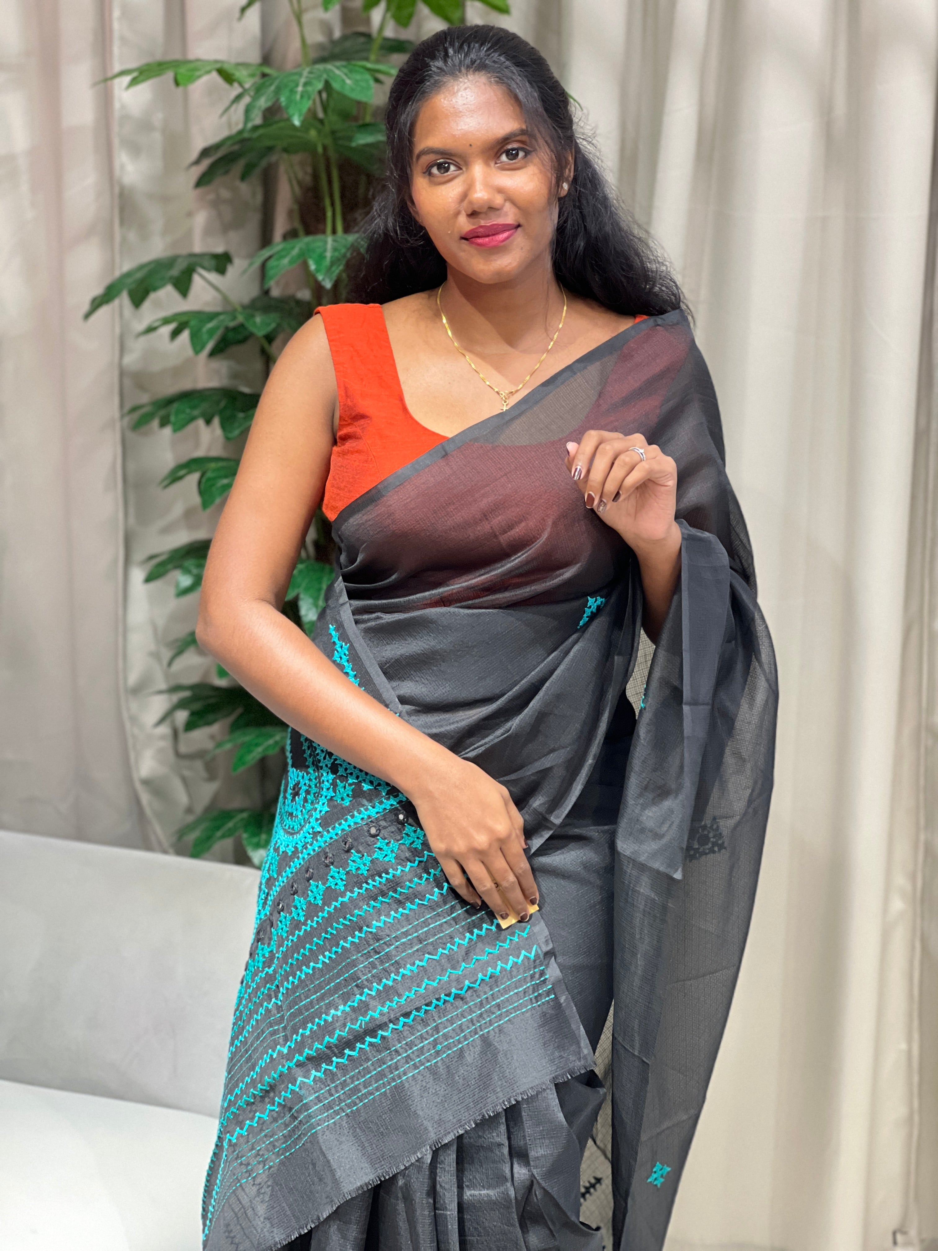 - Style: Kutch Work Detailing, Scattered Buttas, Pallu Detailing