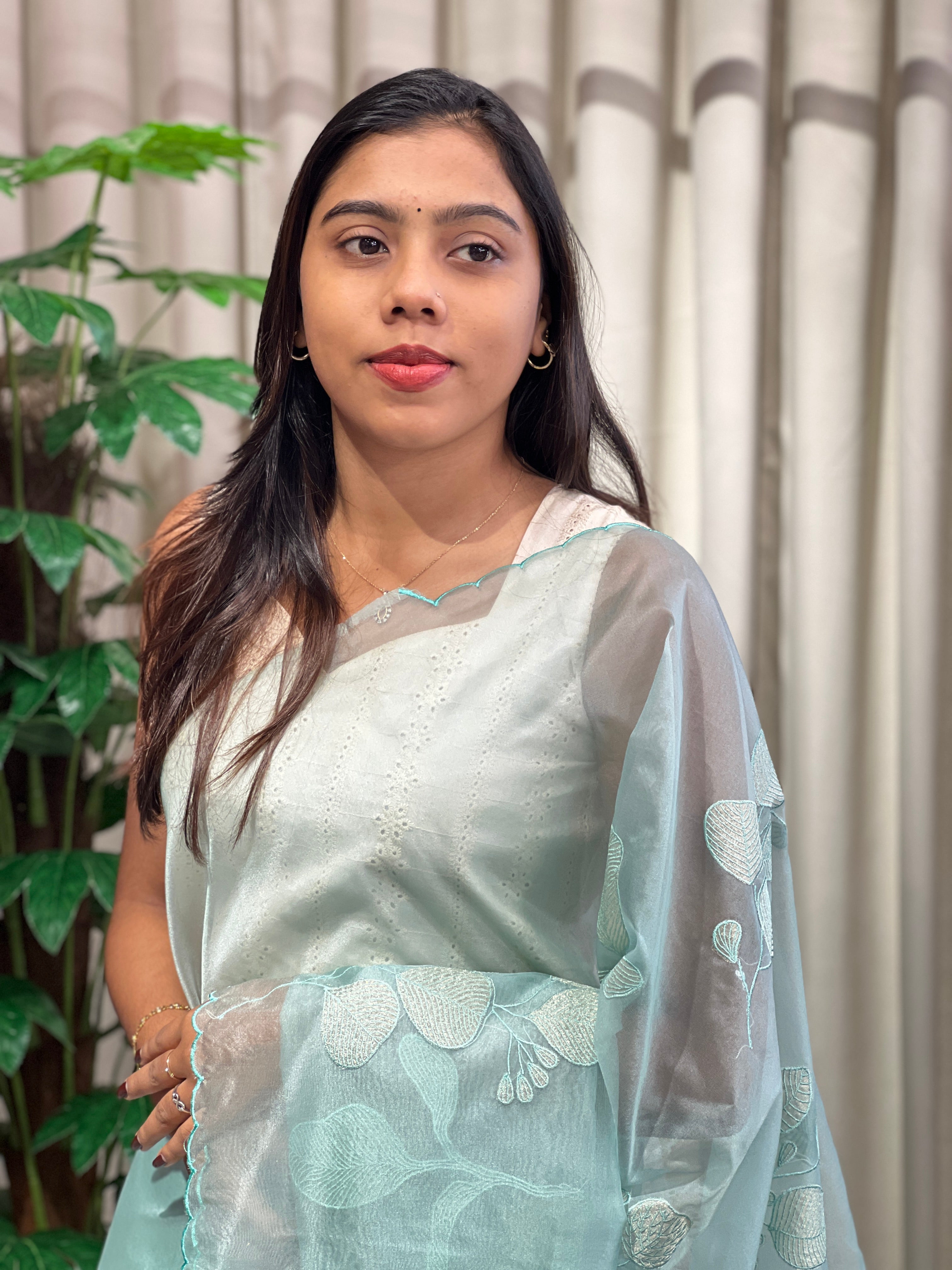 Leaf Applique Work Detailed Organza Saree | MM387