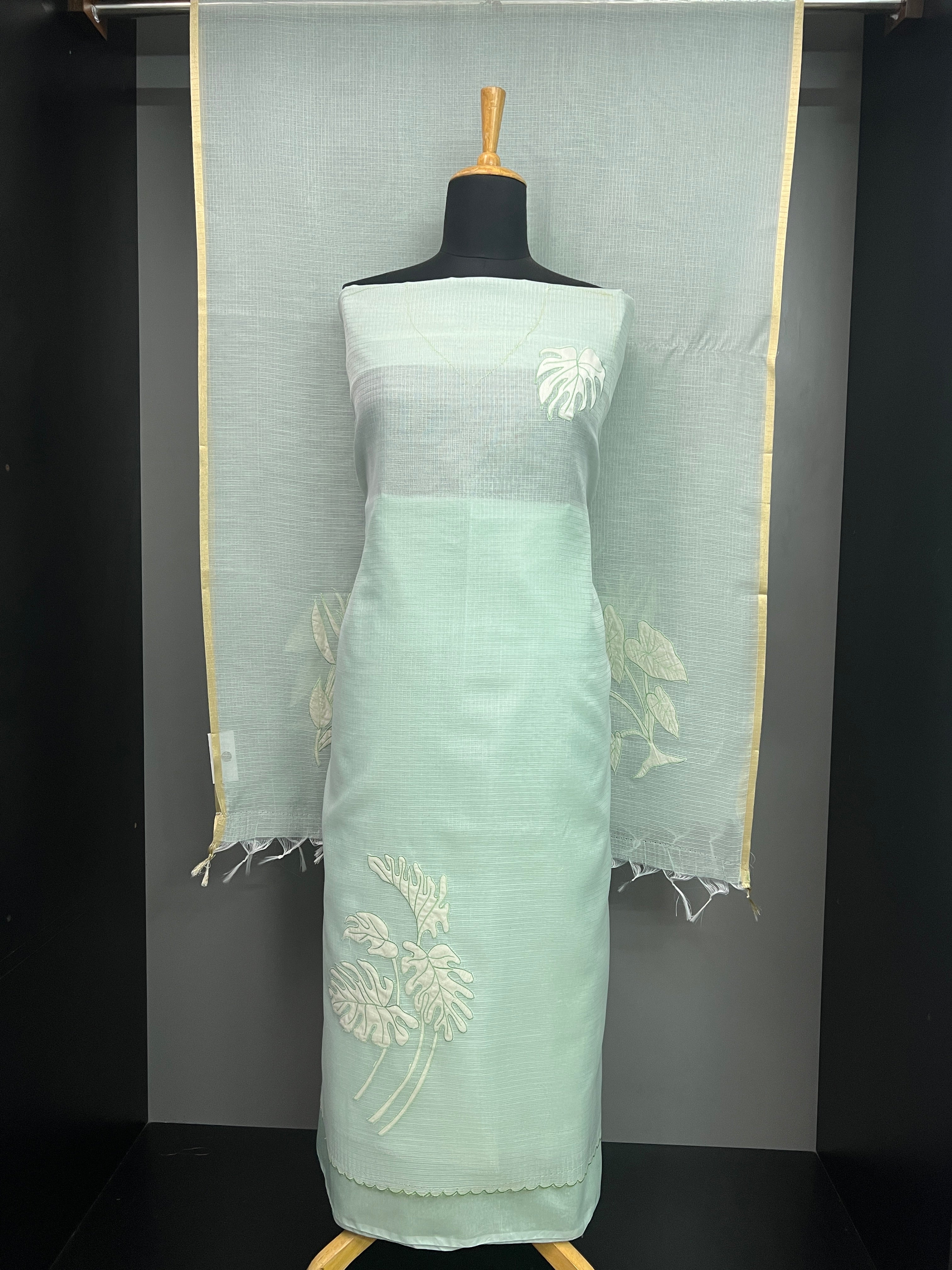 Leaf Applique Work Detailed Silky Kota Salwar Set | MM211
