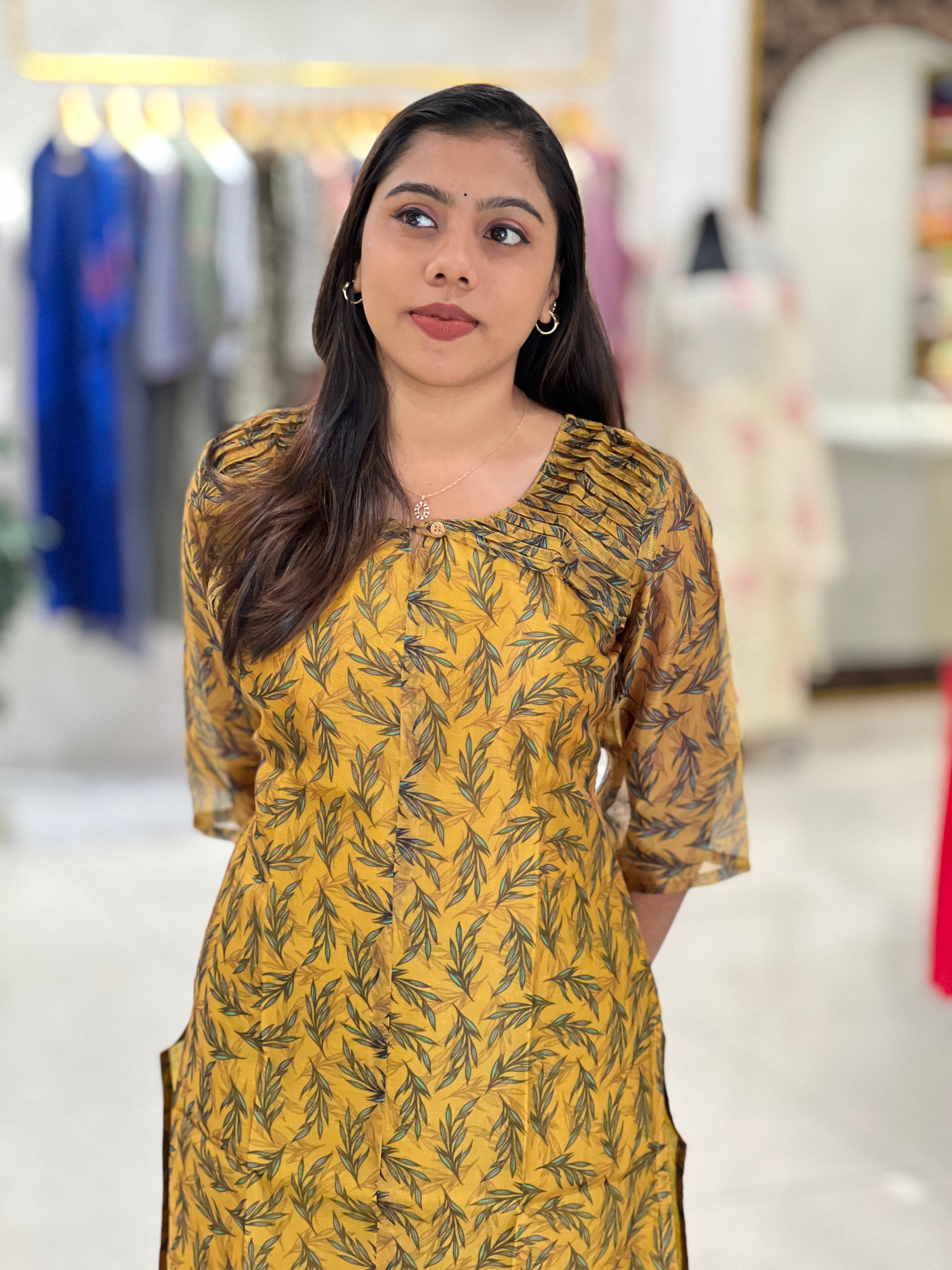 - Style: Leaf Printed, Slitted, With Lining, Pin Tuck Detailing On Neck