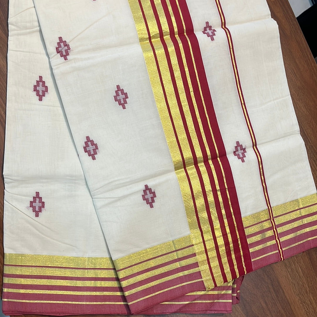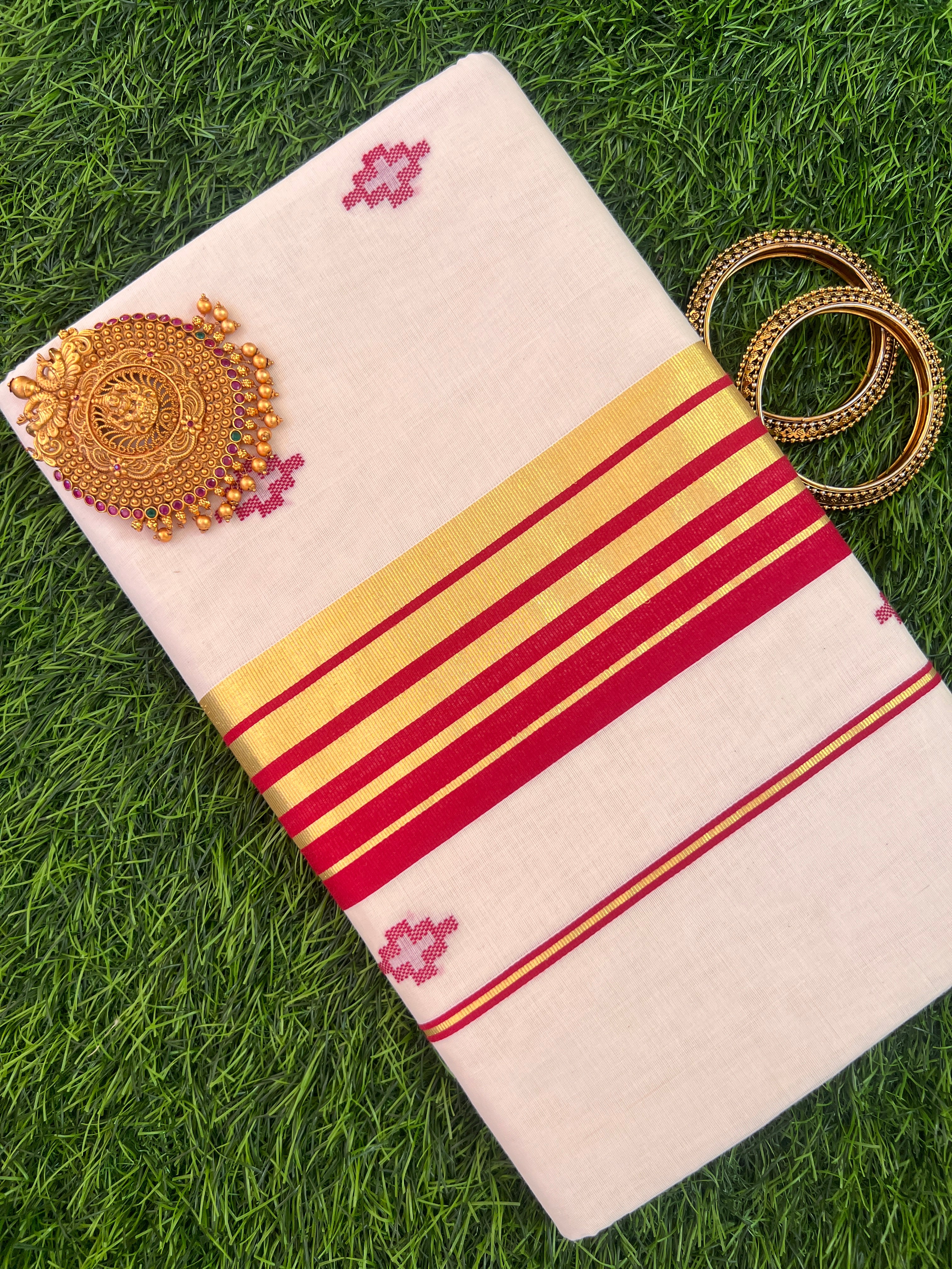 Style: Hand Loom, Zari Weaved Line Pattern Border With Buta Design
