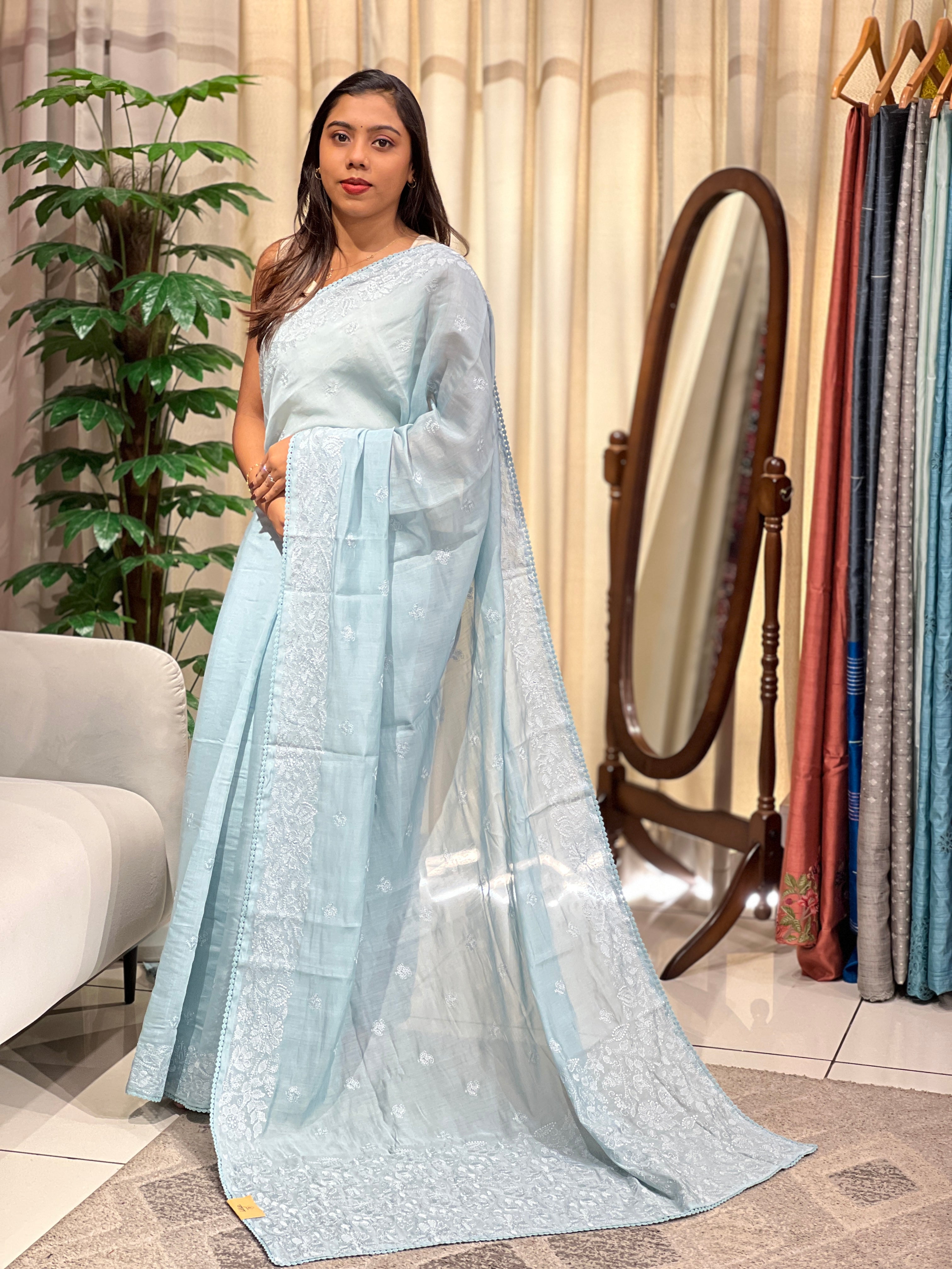 • Lucknowi Inspired Embroidered Viscose Organza Saree | BLD2143