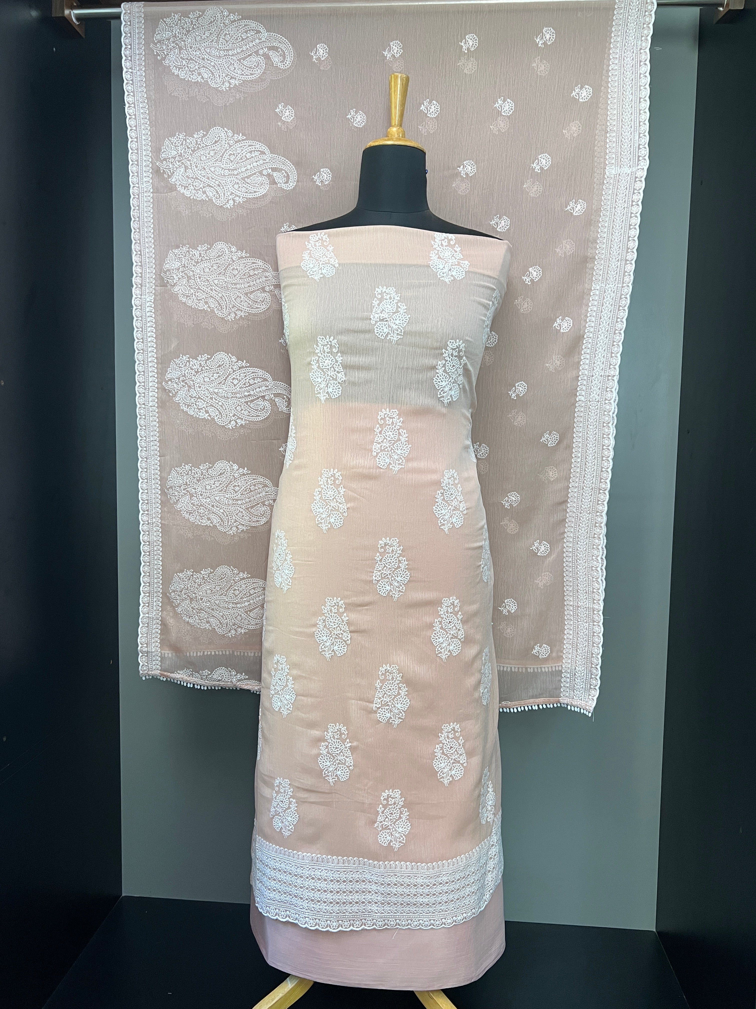 • Lucknowi Inspired Embroidery Detailed Crushed Georgette Salwar Set | SP398