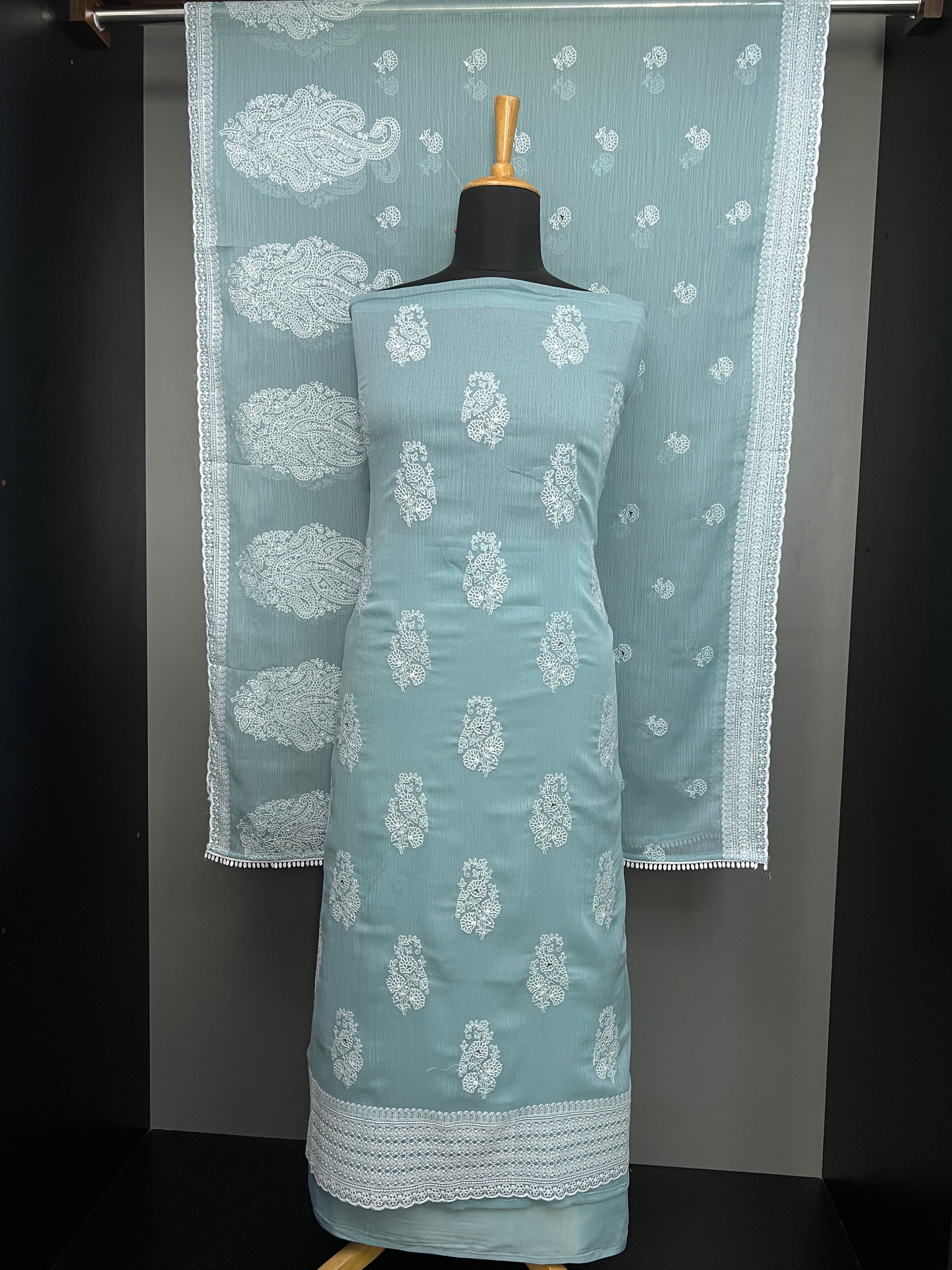 • Lucknowi Inspired Embroidery Detailed Crushed Georgette Salwar Set | SP401