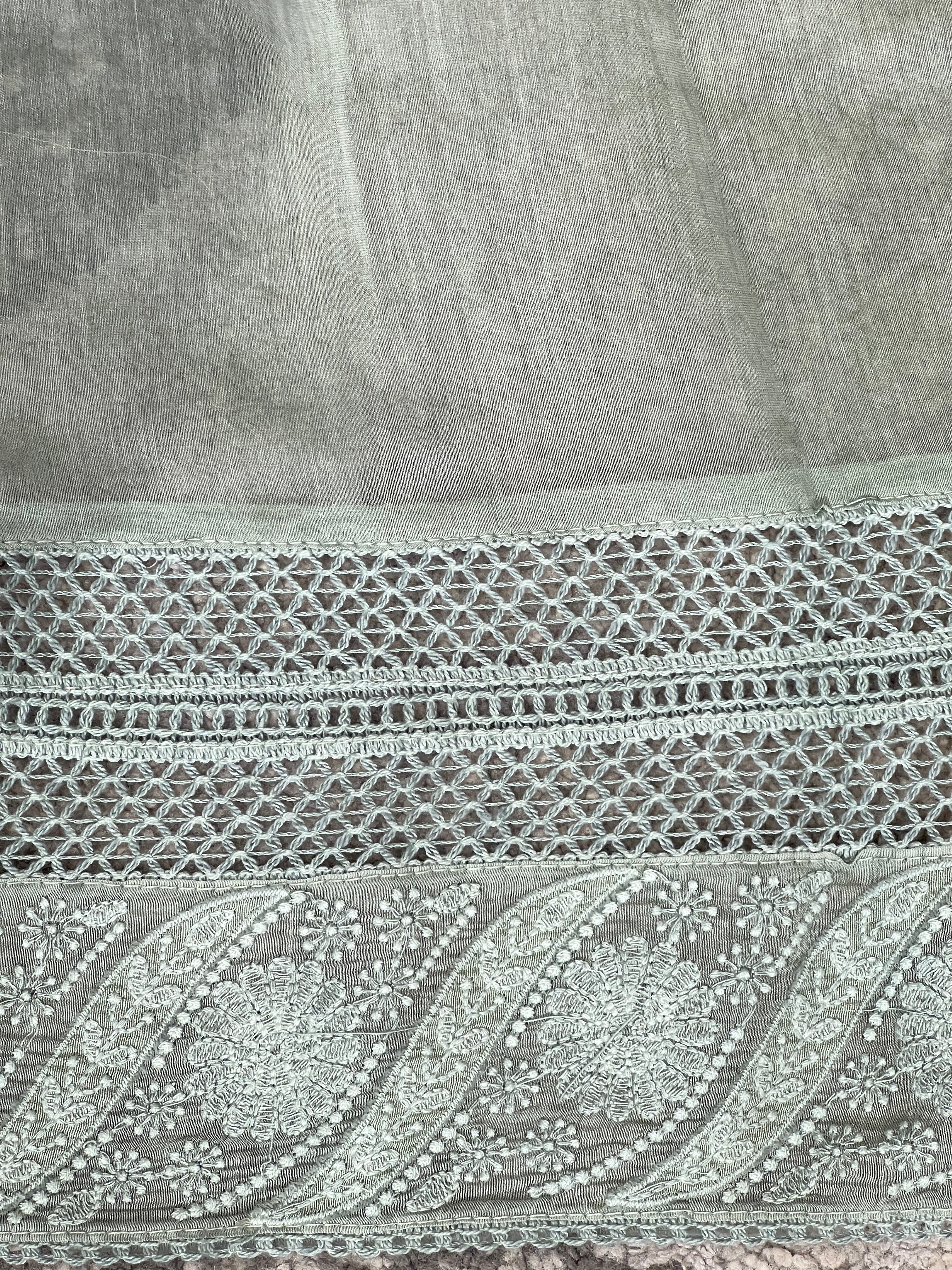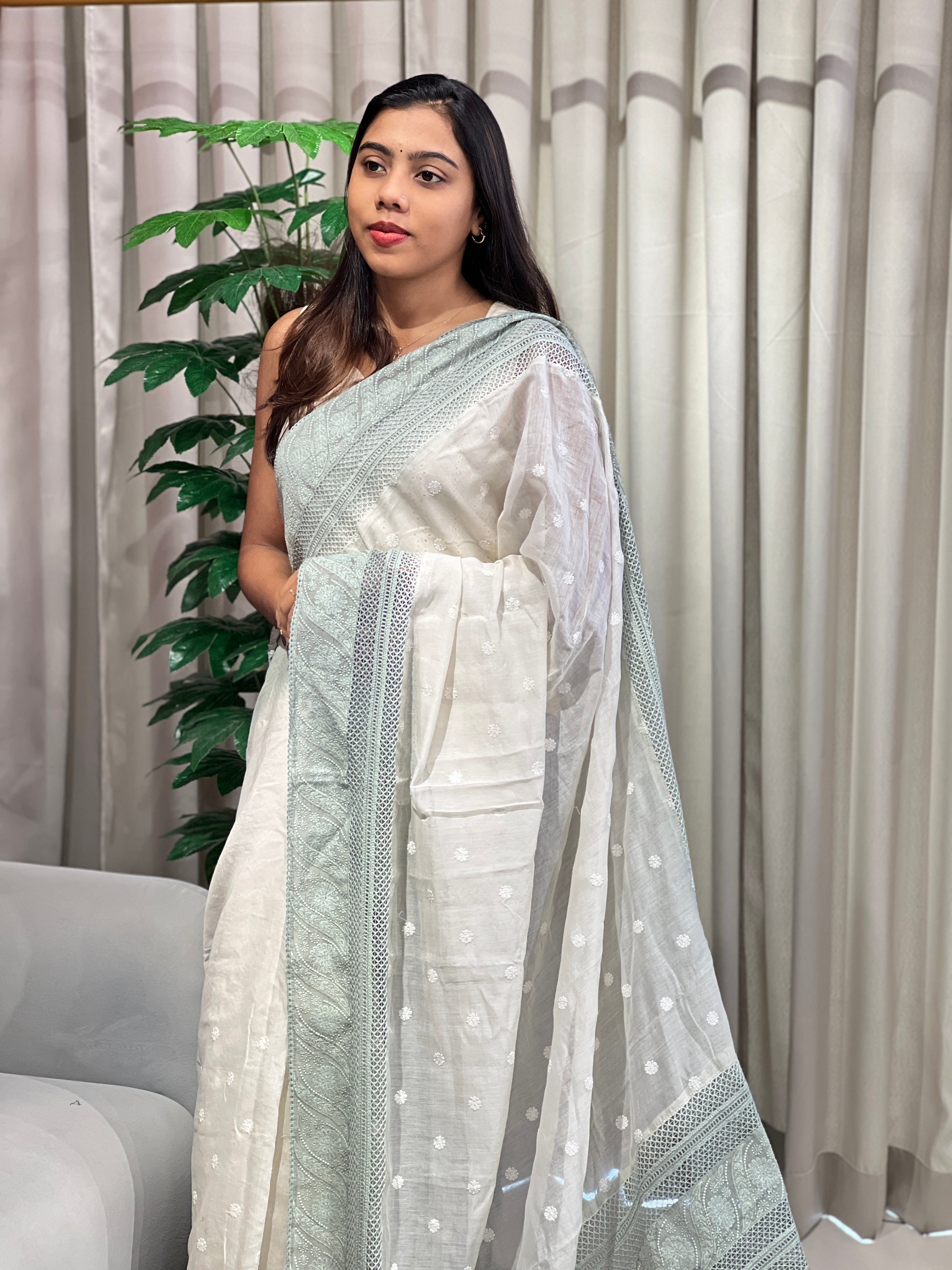 - Style: Self Thread Embroidered Butta, Lucknowi Inspired Embroidery, Lace Edges, Embroidered Organza Patch Detailed Pallu