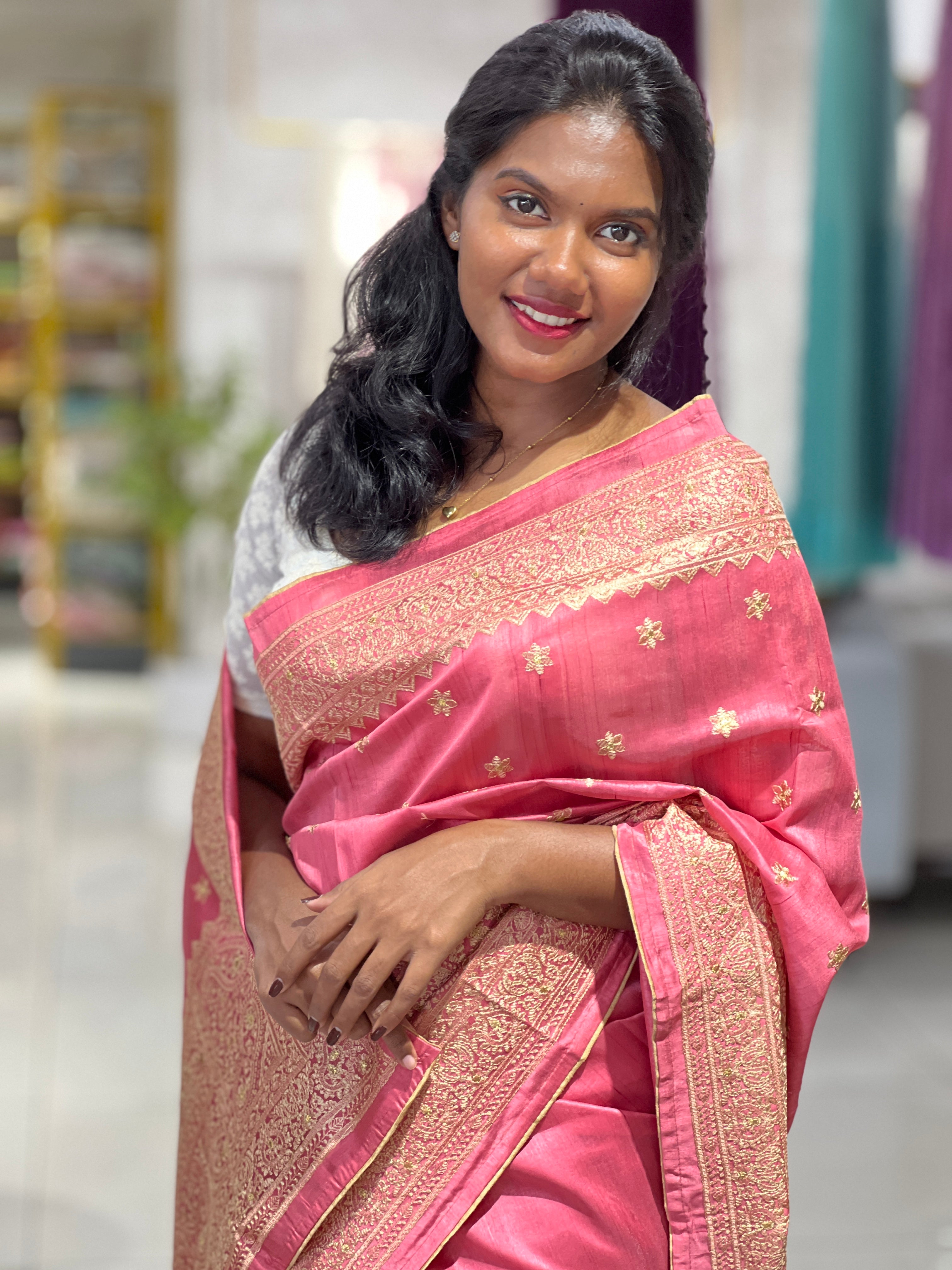 Lucknowi Inspired Embroidery Detailed Semi Tussar Saree | SUN441 Lucknowi Inspired Embroidery Detailed Semi Tussar Saree | SUN441