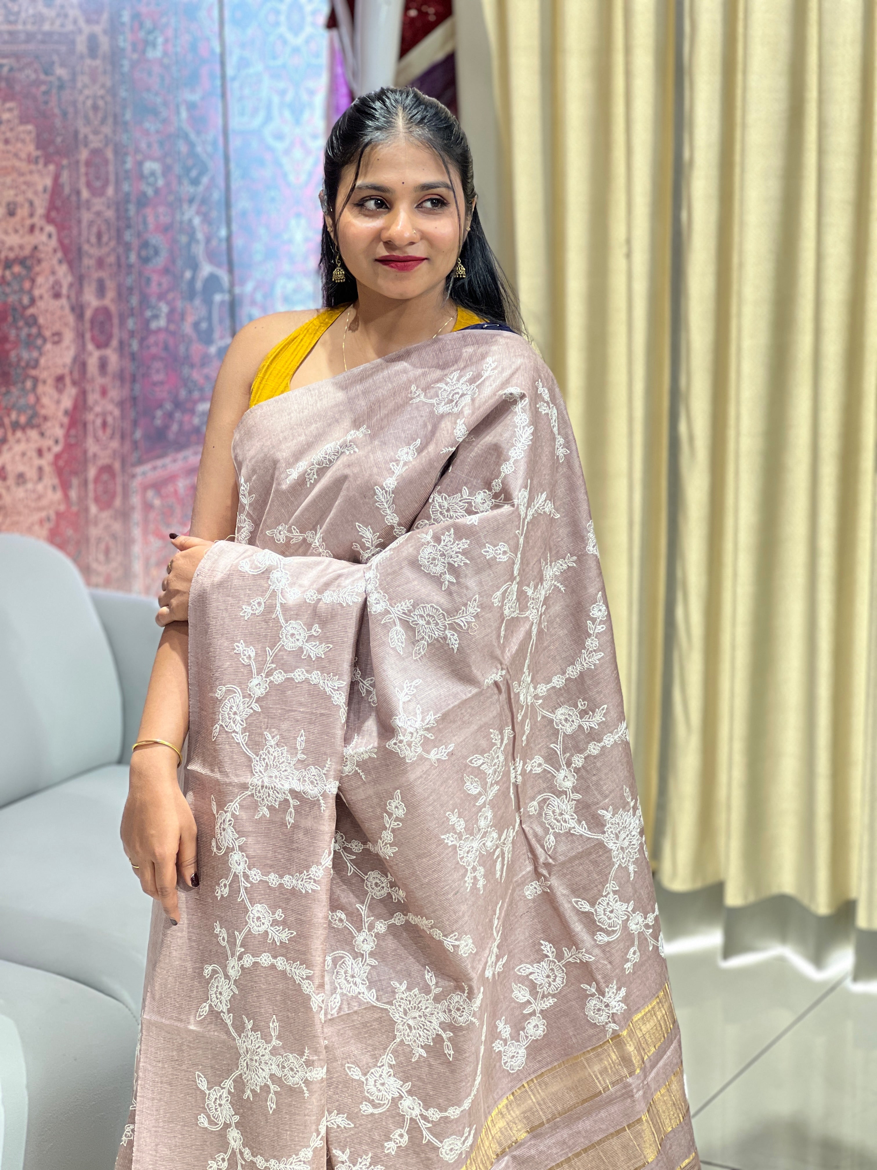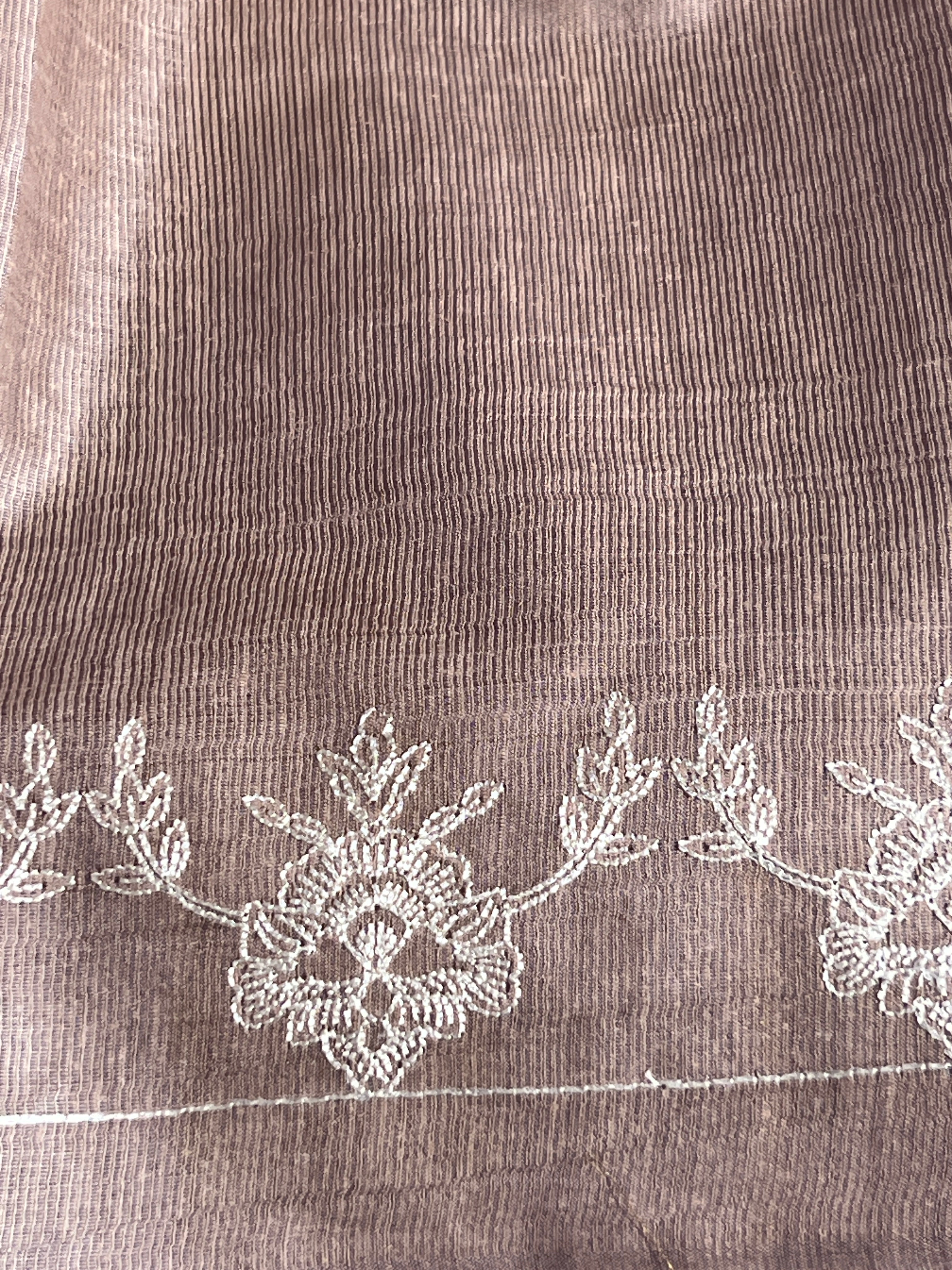 - Style: Lucknowi Inspired Jaal Embroidery Detailing, Zari & Thread Weaved Pallu