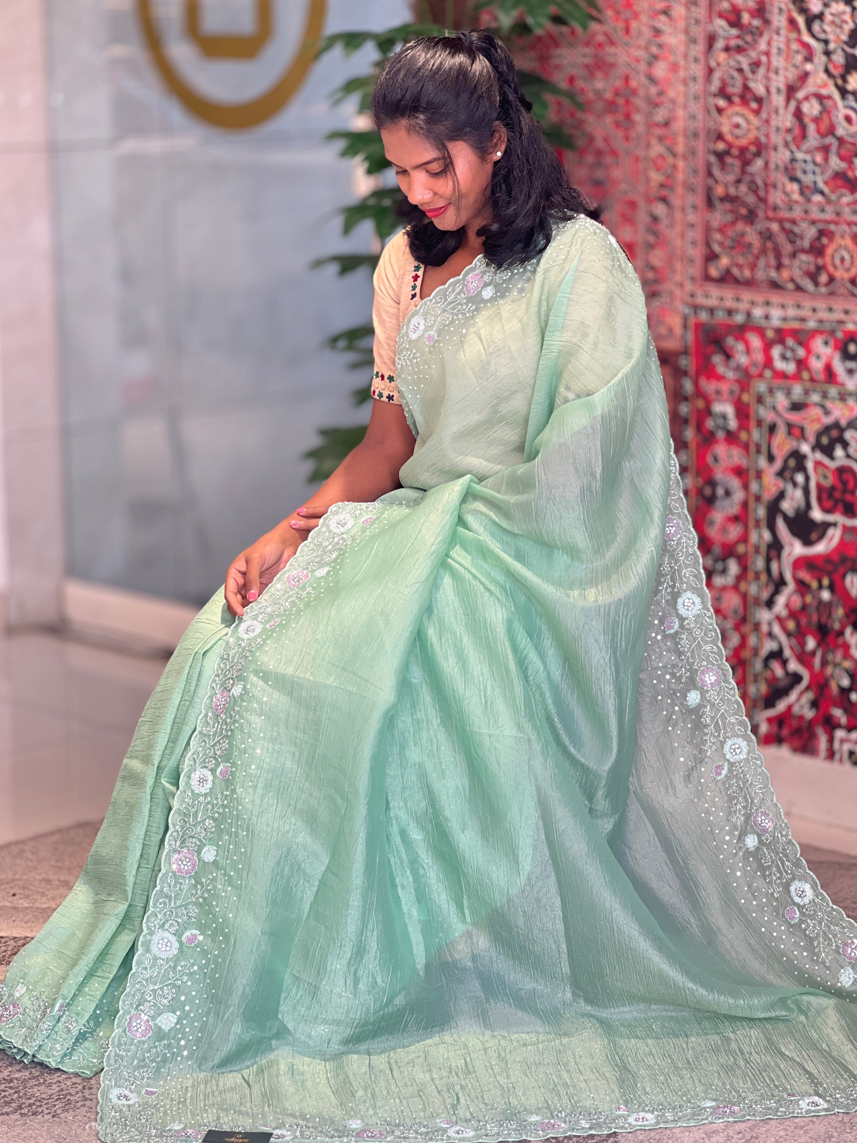 • Machine Embroiderd Crushed Organza Saree | SBP711