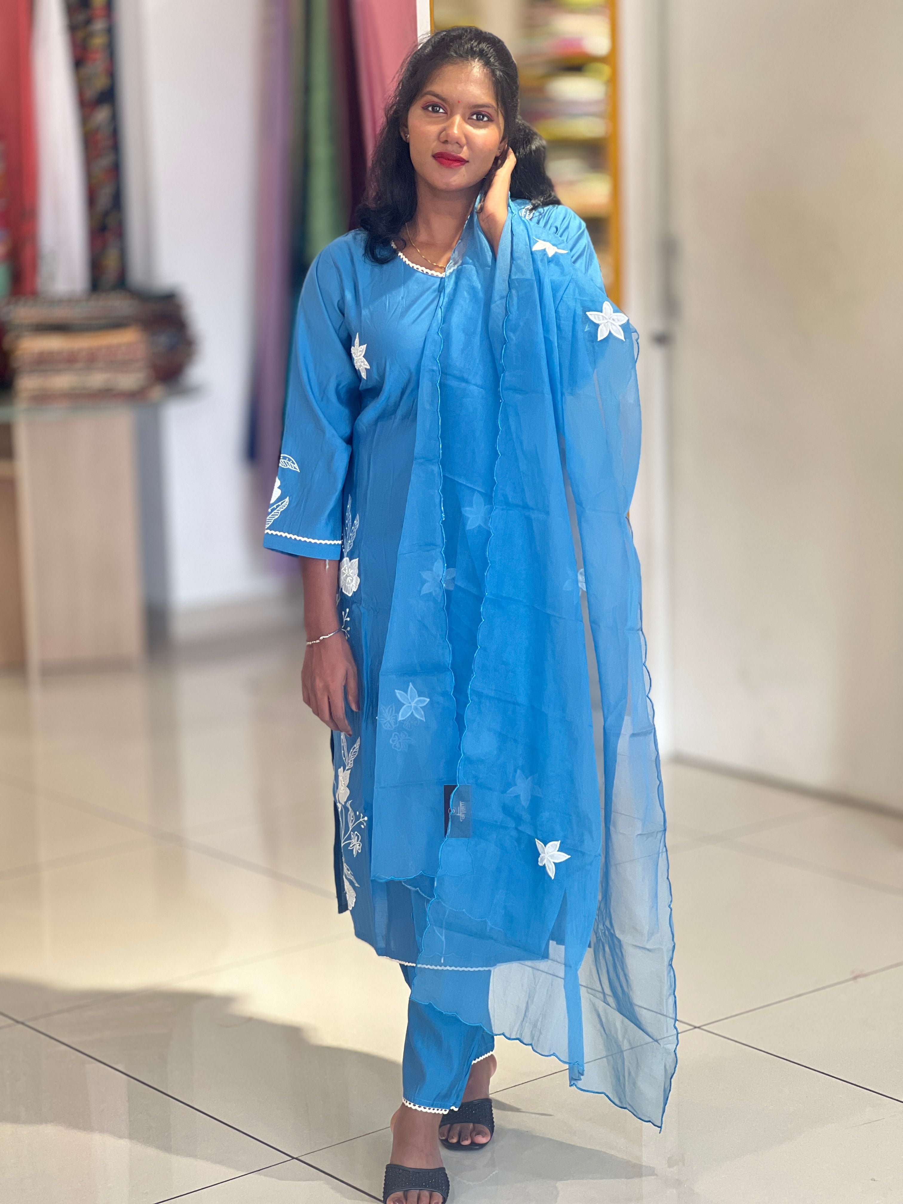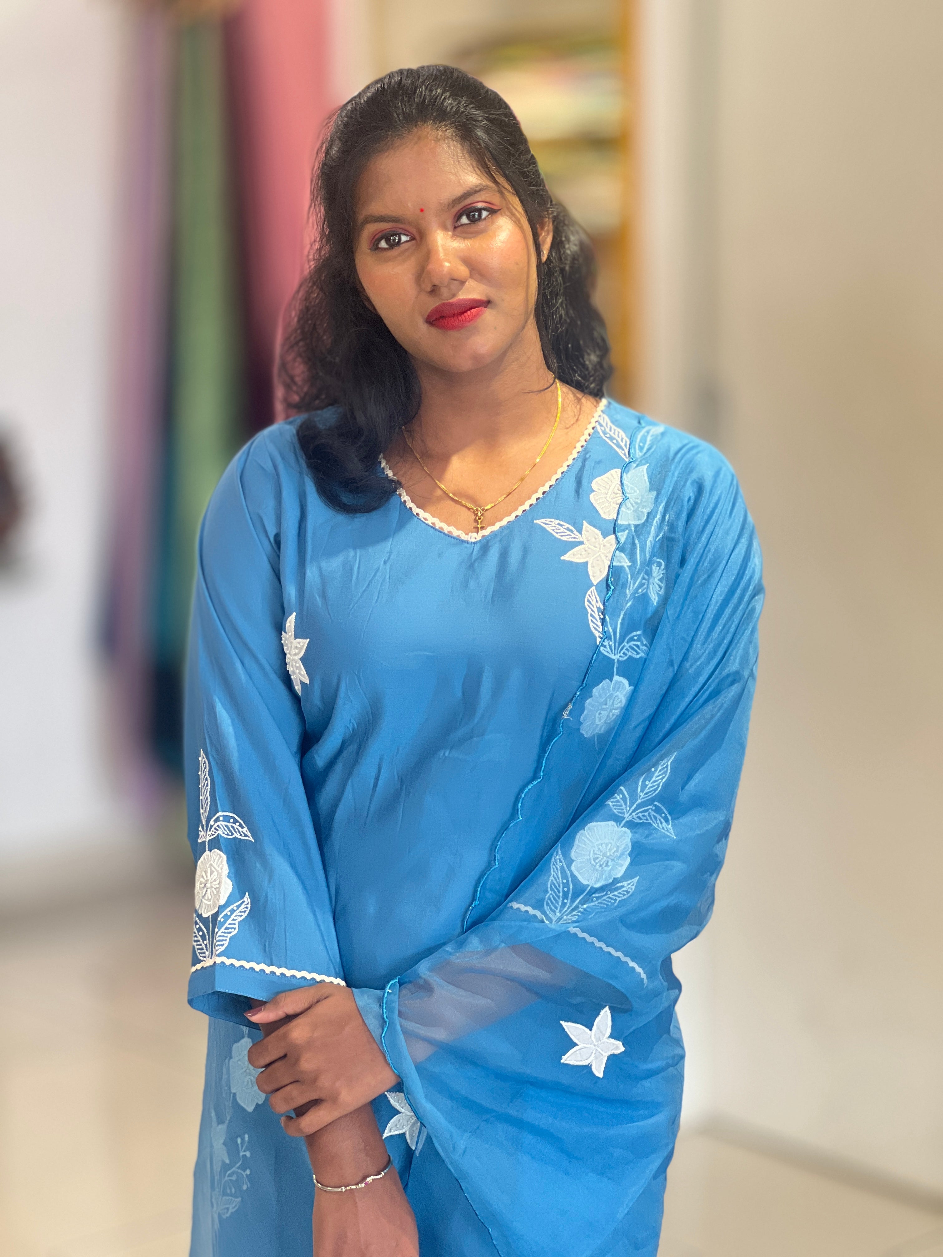 - Style: Machine Embroidery Detailing ,Lace Finished Neck, Sleeves& Border, Sugar Beads Highlighted