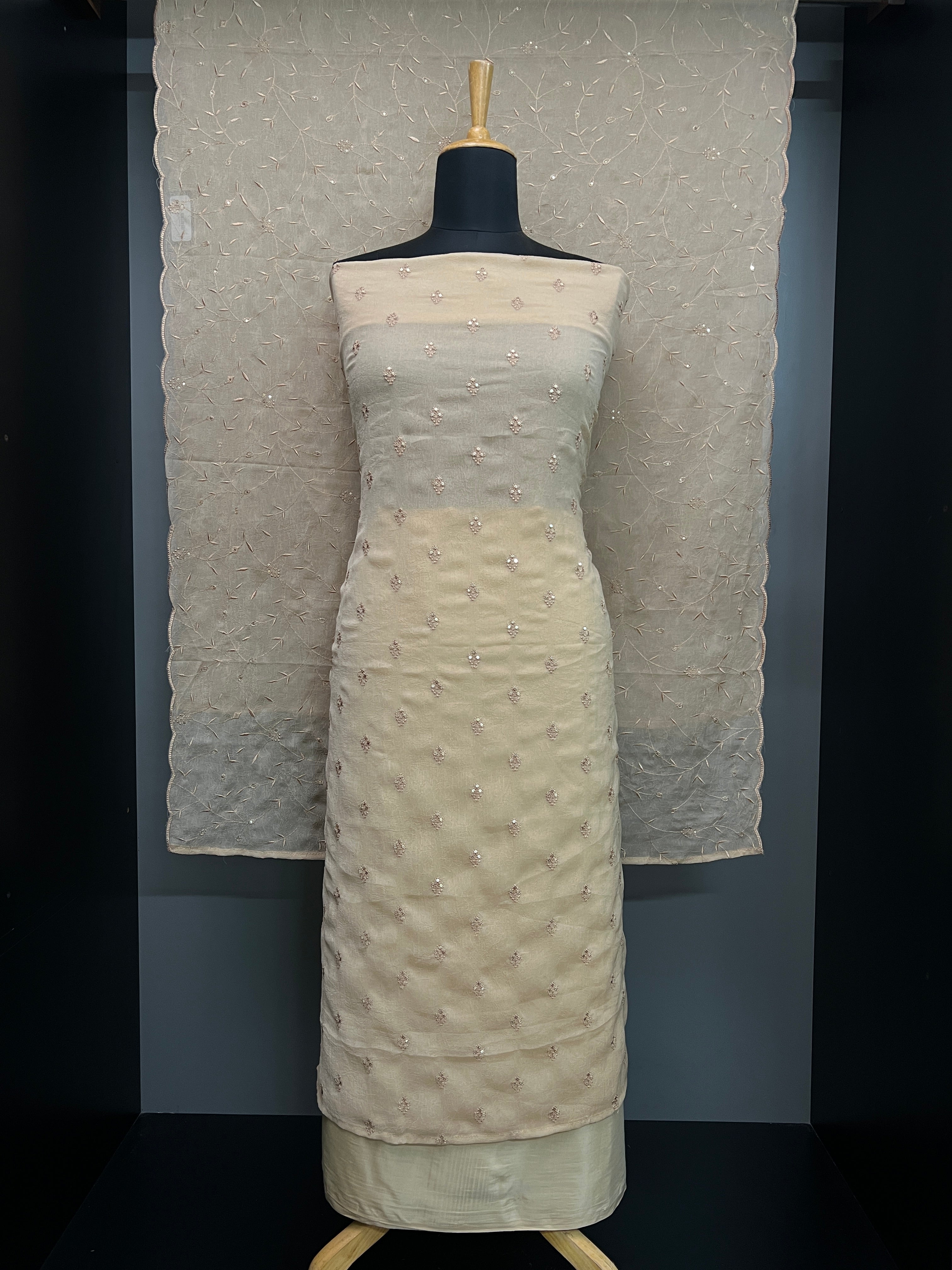 - Style: Machine Embroidery, Scattered Buttas with Sequence Highlighted