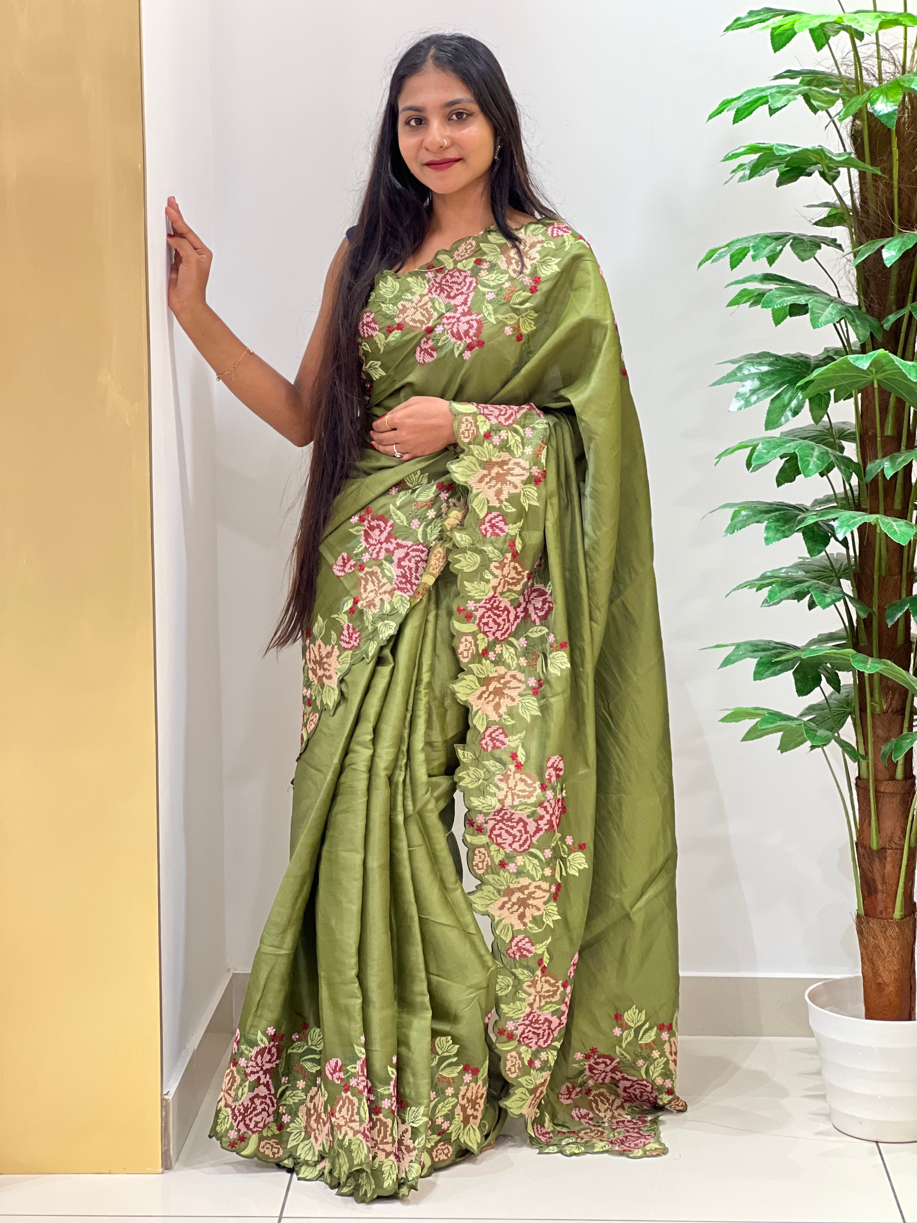 - Style: Computerized Machine Embroidered Design ,Scallop Pattern