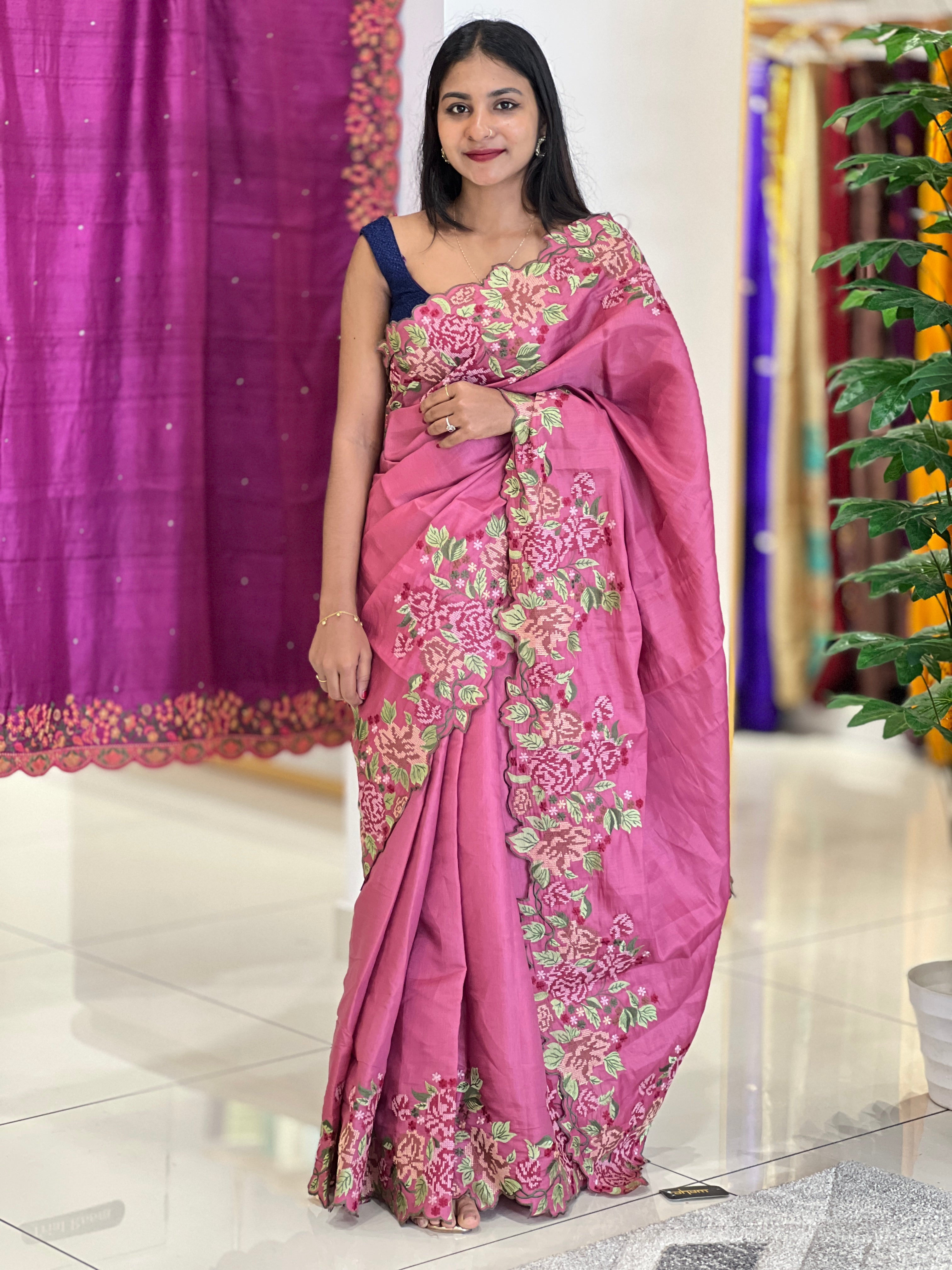 Machine Embroidered Dola Silk Saree | RP504 Machine Embroidered Dola Silk Saree | RP504
