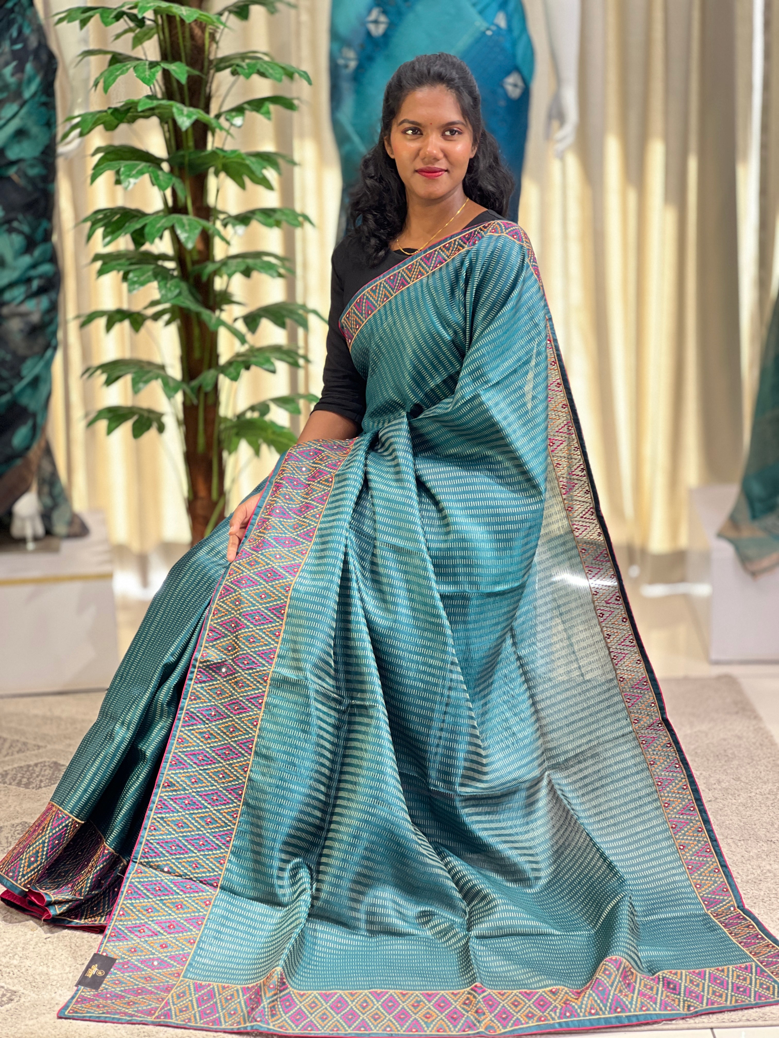 - Style: Machine Embroidery Detailing, Kanta Weaving, Geometric Border Detailing with Flat Pipping Edges