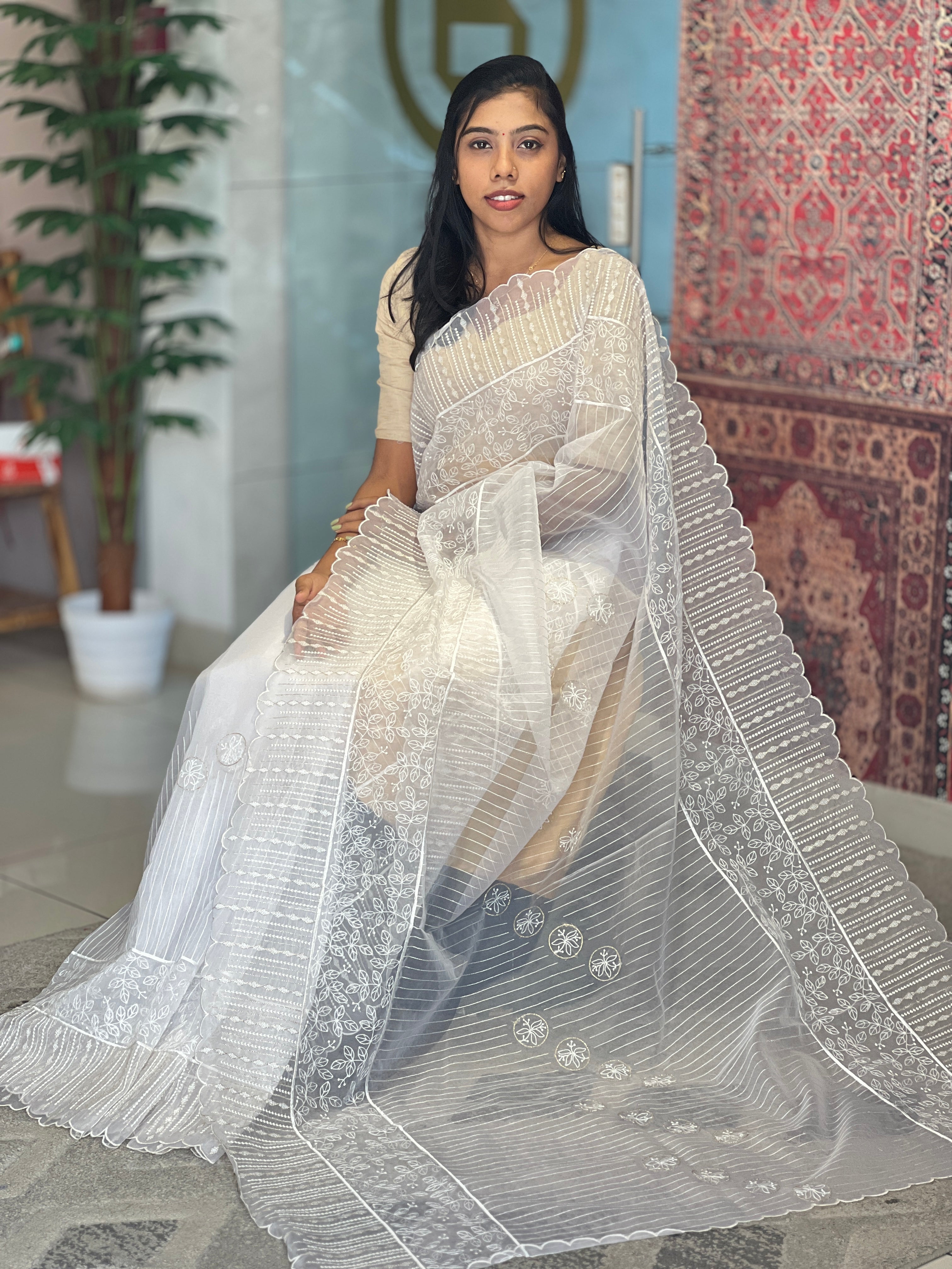 - Style: Computerized Machine Embroidery With Zari Detailing, Scallop Edges