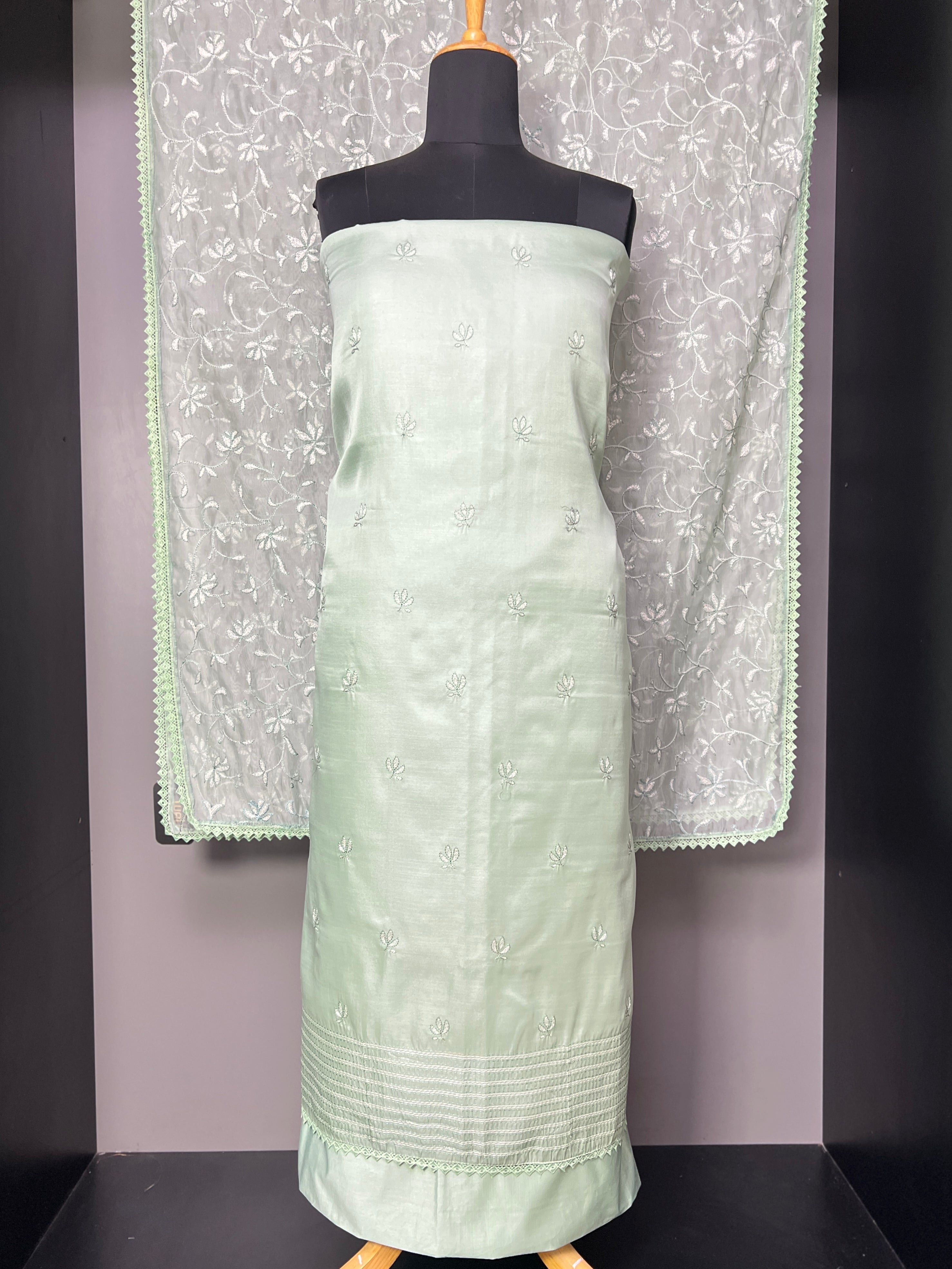 • Machine Embroidered Semi Tussar Salwar Set | SUN108