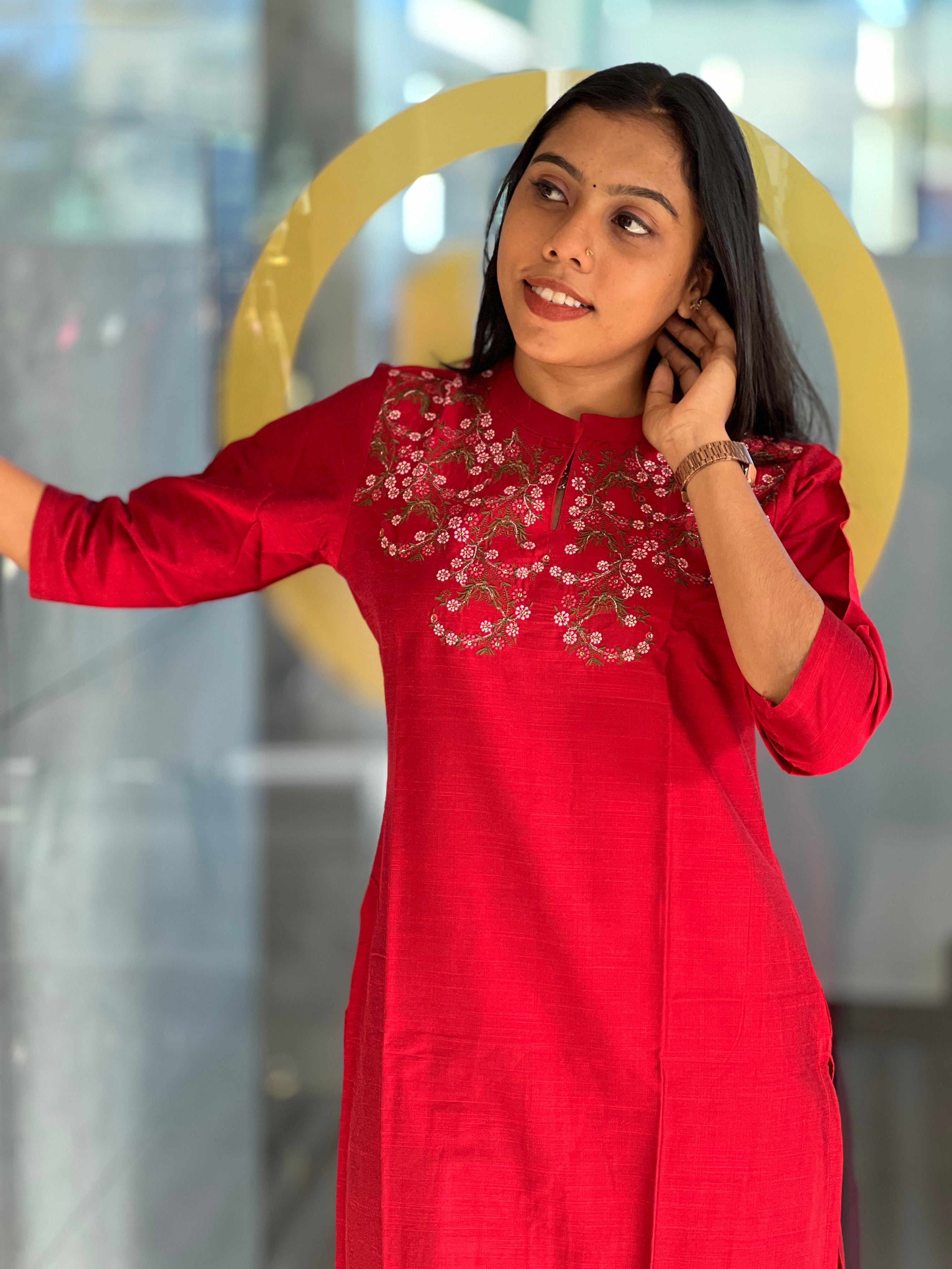 Machine Embroidery Cotton Blended Kurta | TAL114