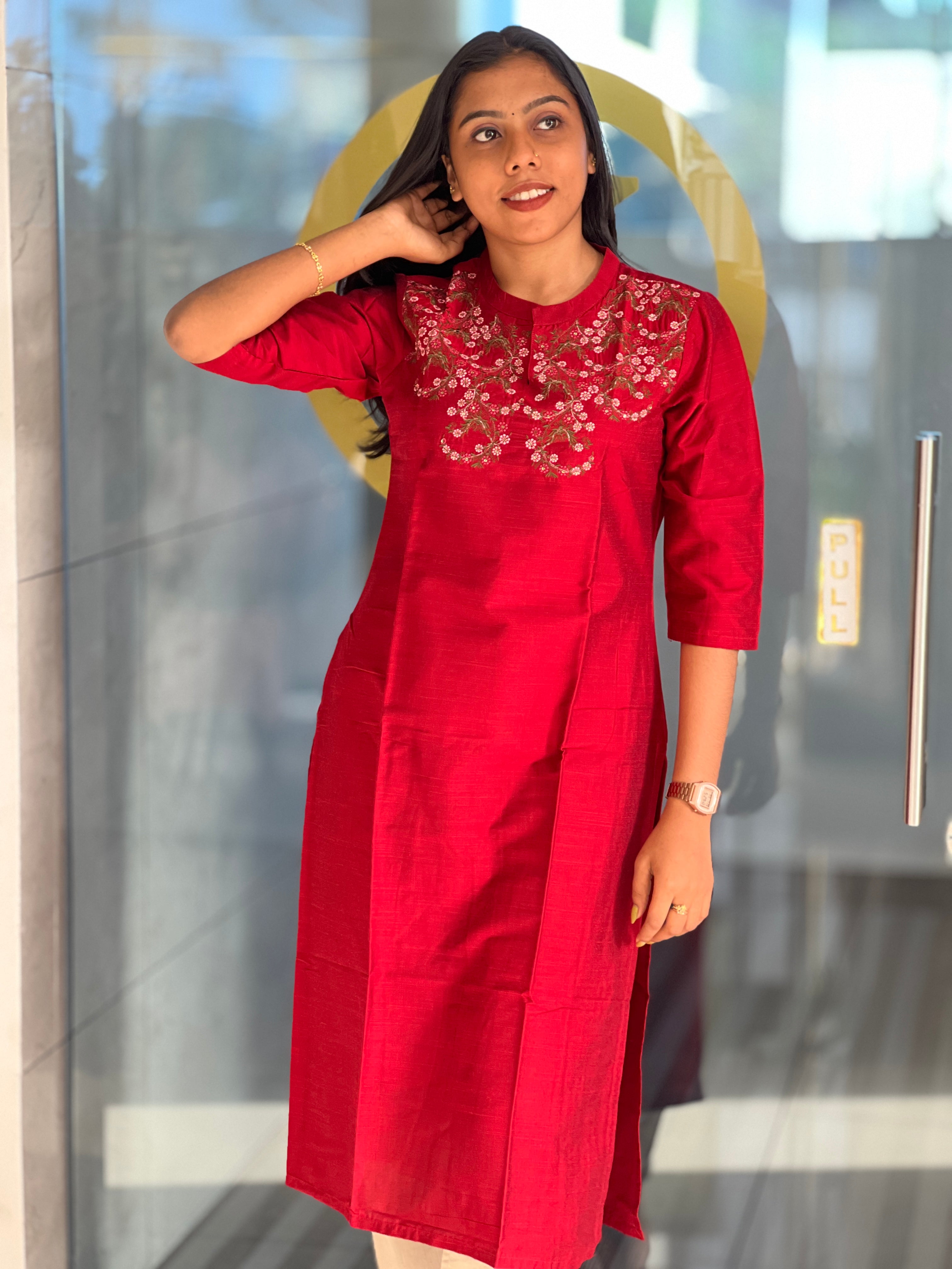 • Machine Embroidery Cotton Blended Kurta | TAL114