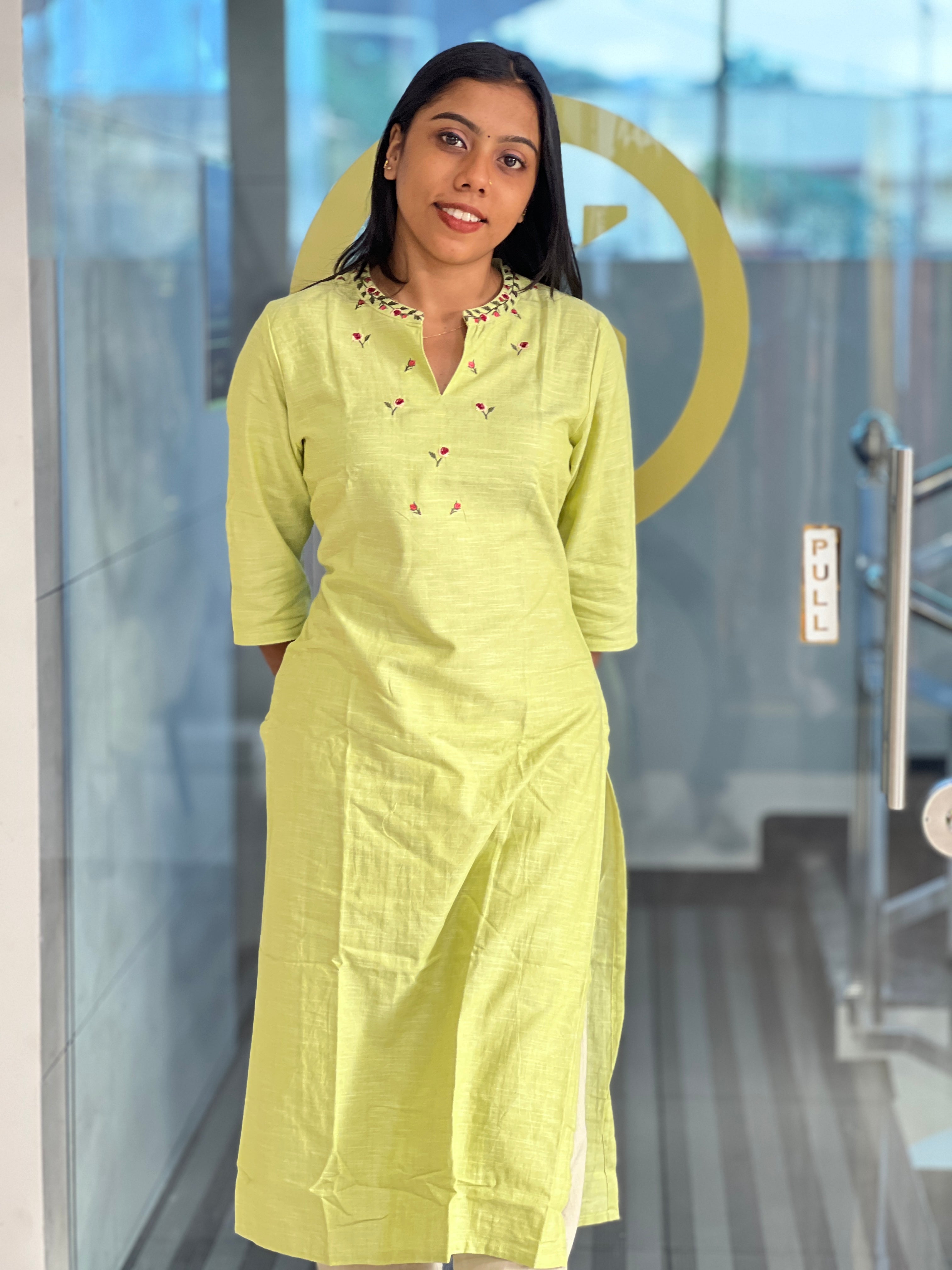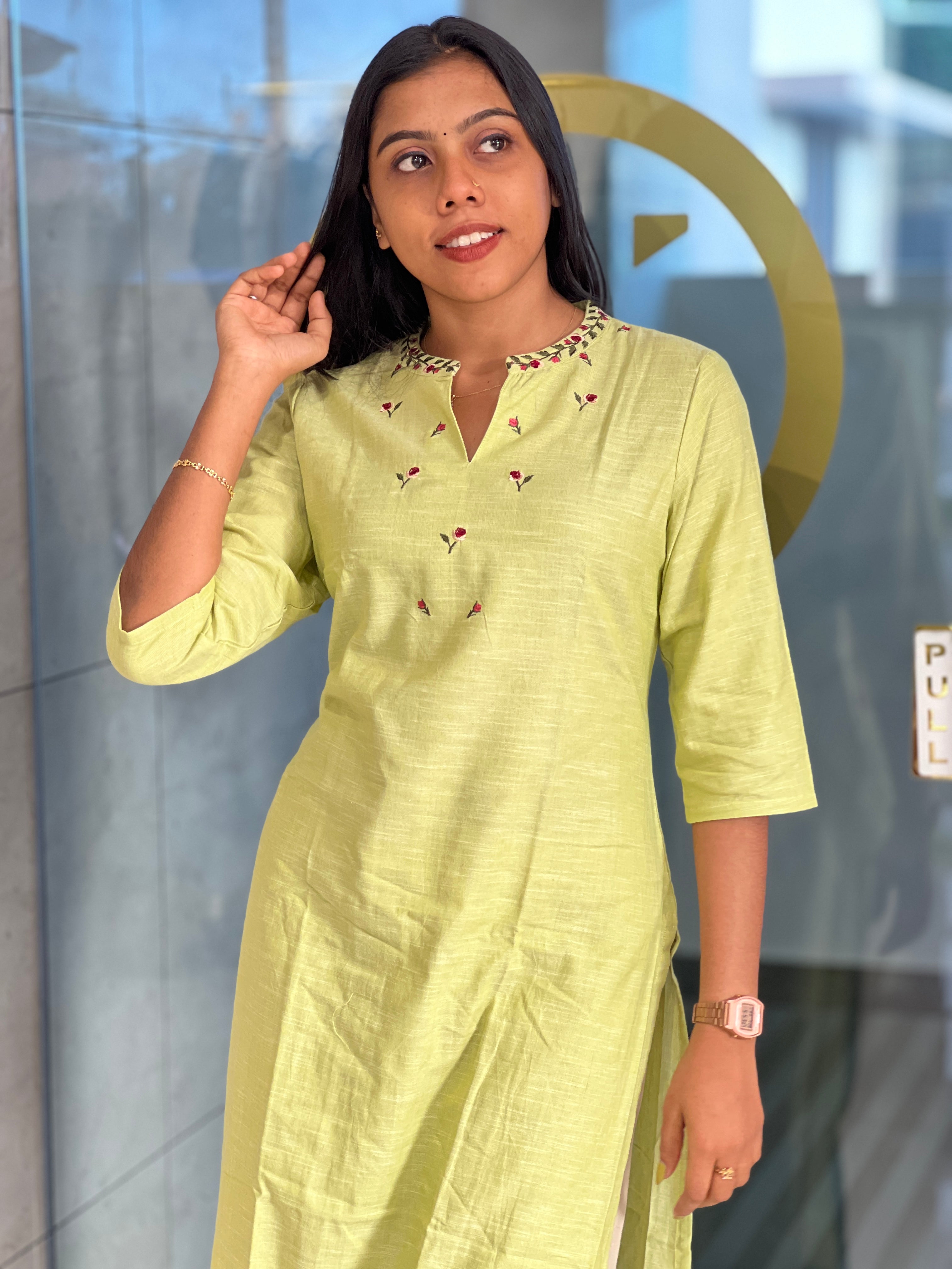 - Style: Machine Embroidery on Neck, Side Slit Pattern